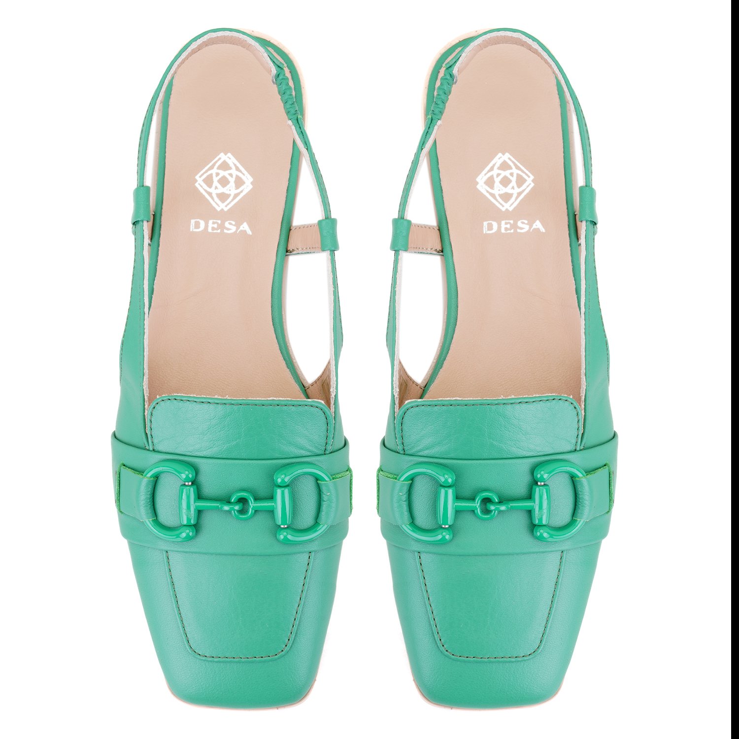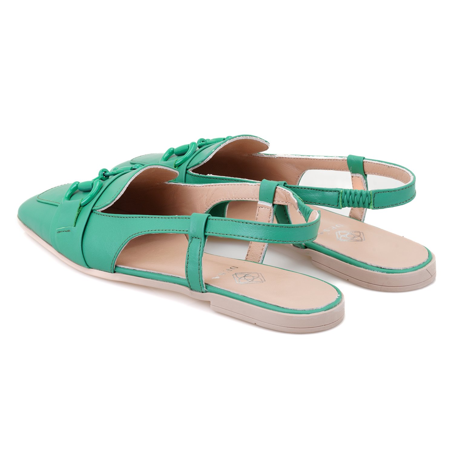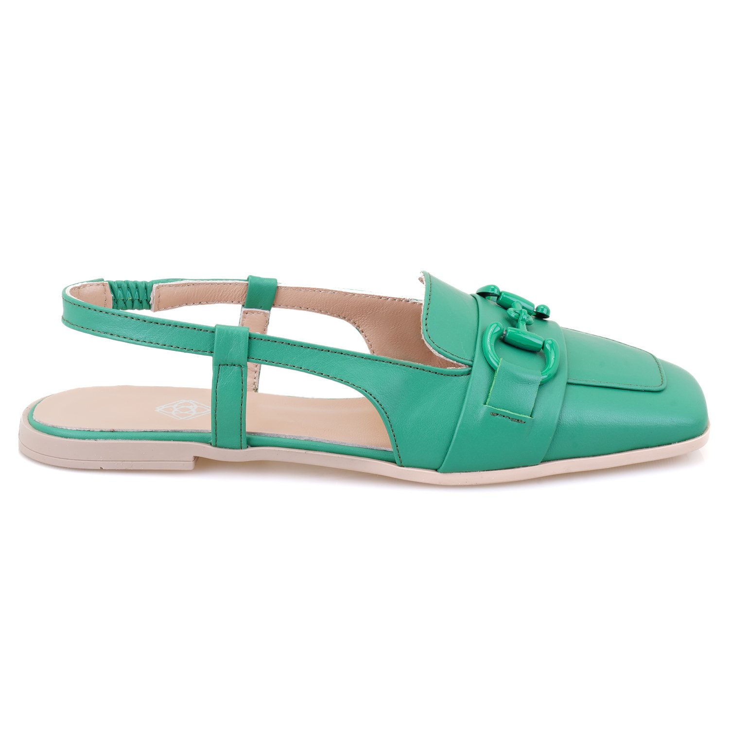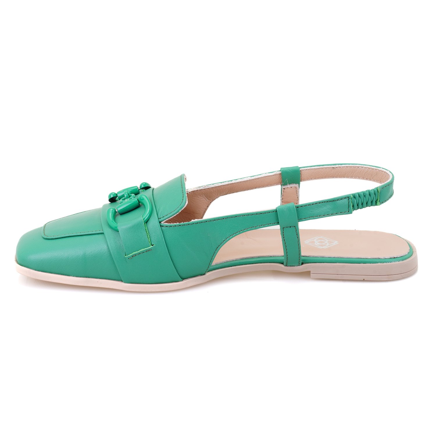 Kadın Yeşil Toka Aksesuarlı Deri Loafer