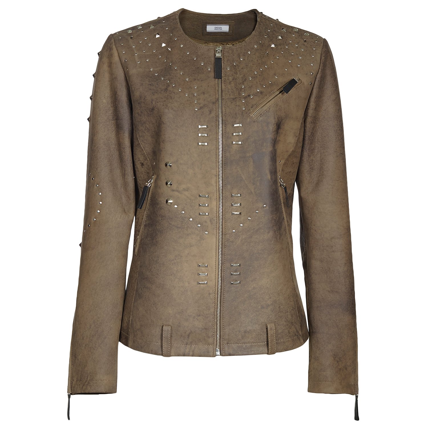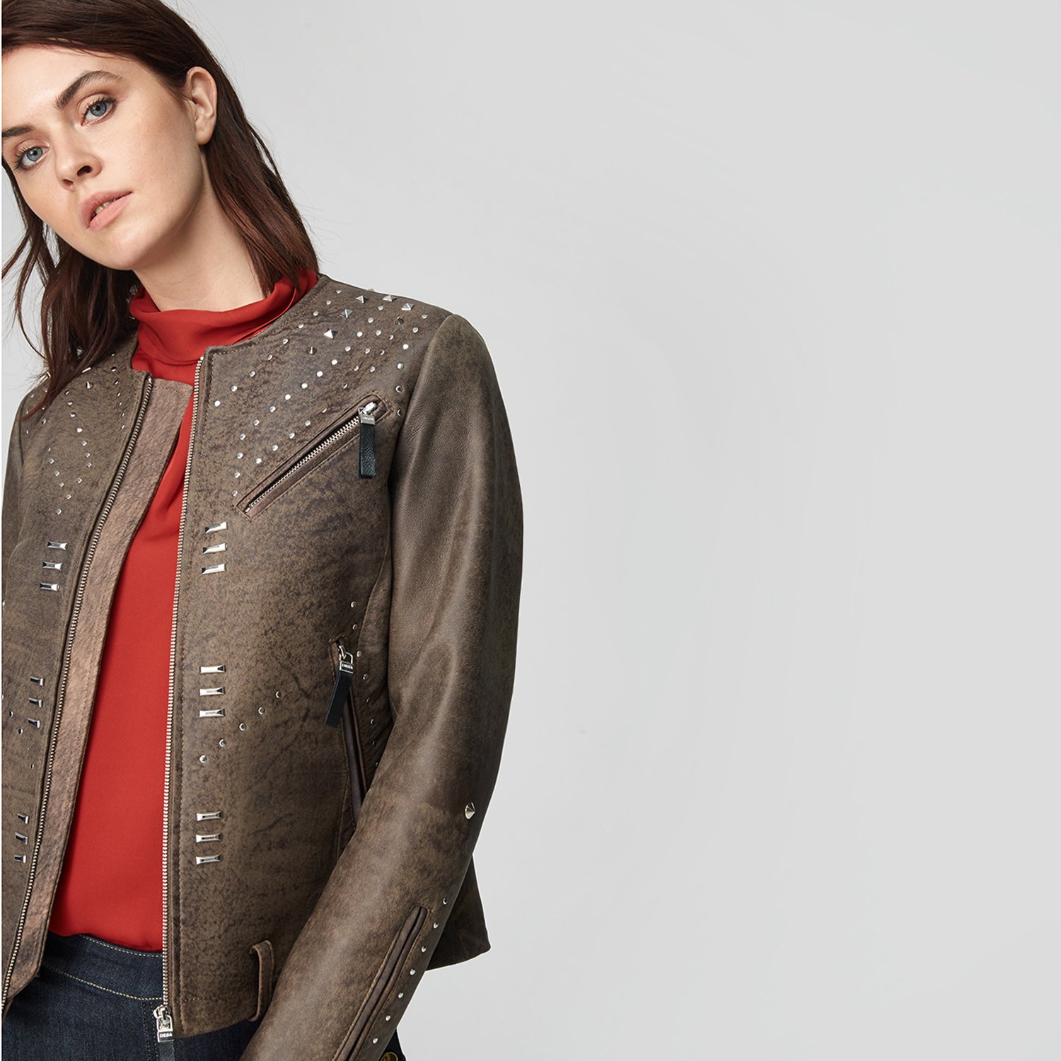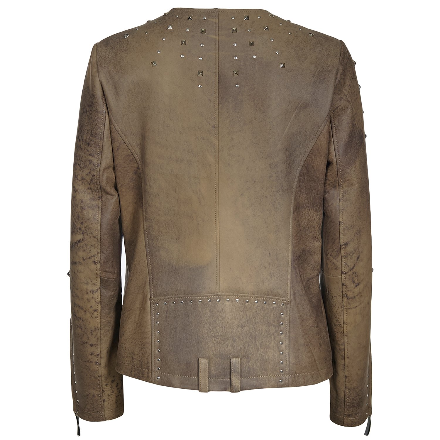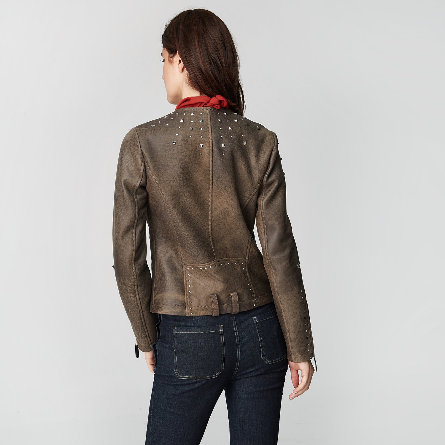 Farklılık seven ve şıklığına önem verenlere kadınlara zımbalı deri mont.