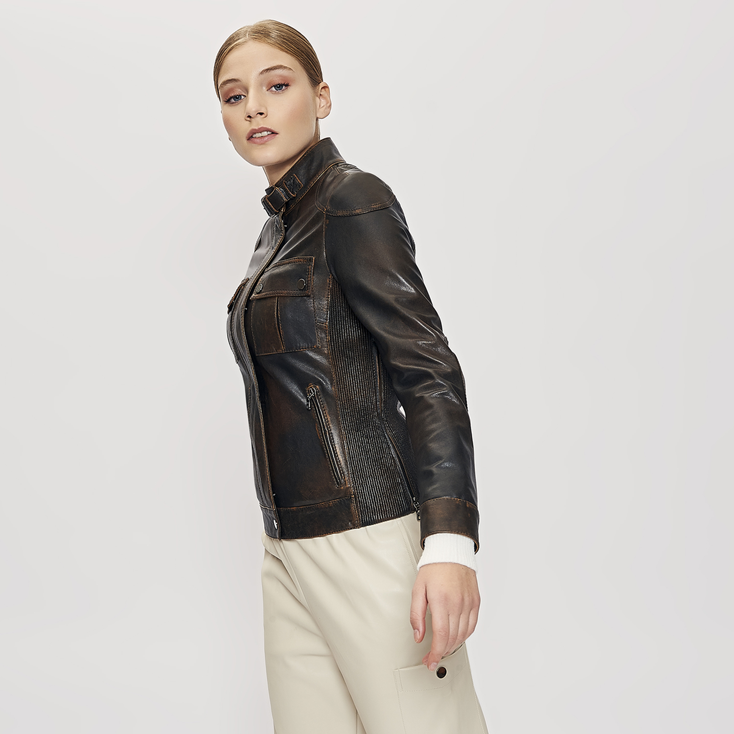 Hakim yakalı ve önden metal fermuar ve çıtçıt kapamalıdır.