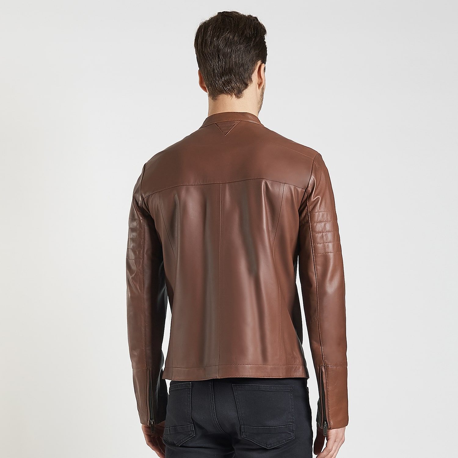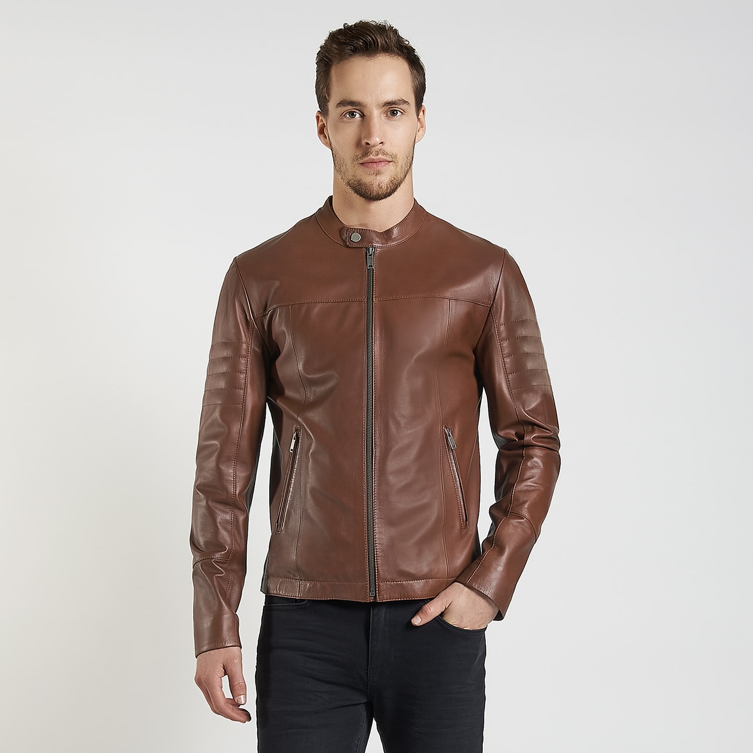 Hâkim yaka önden fermuar kapamalı erkek ceket.