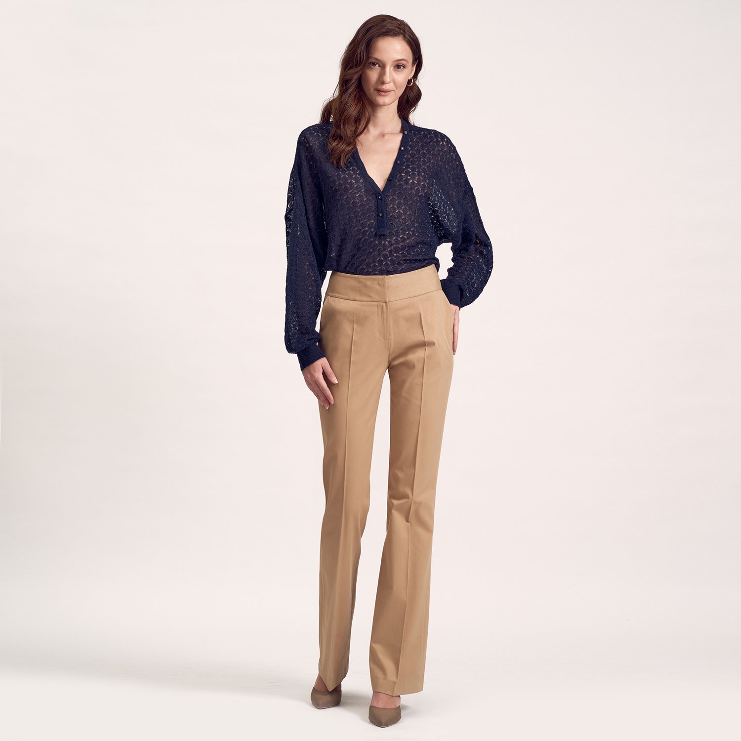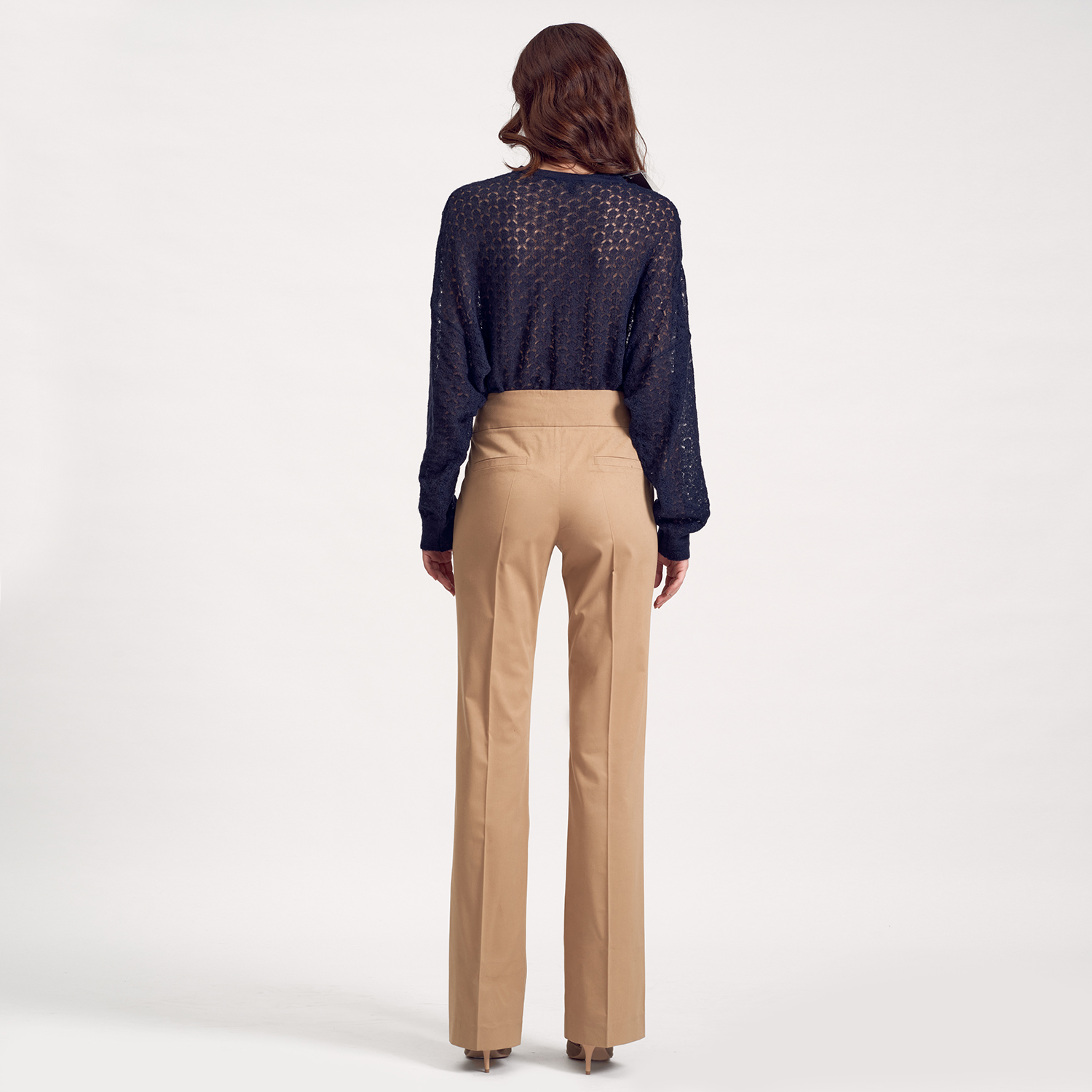 Orta bel,düz kesim,önden fermuarlıdır,ütü izi vardır.
