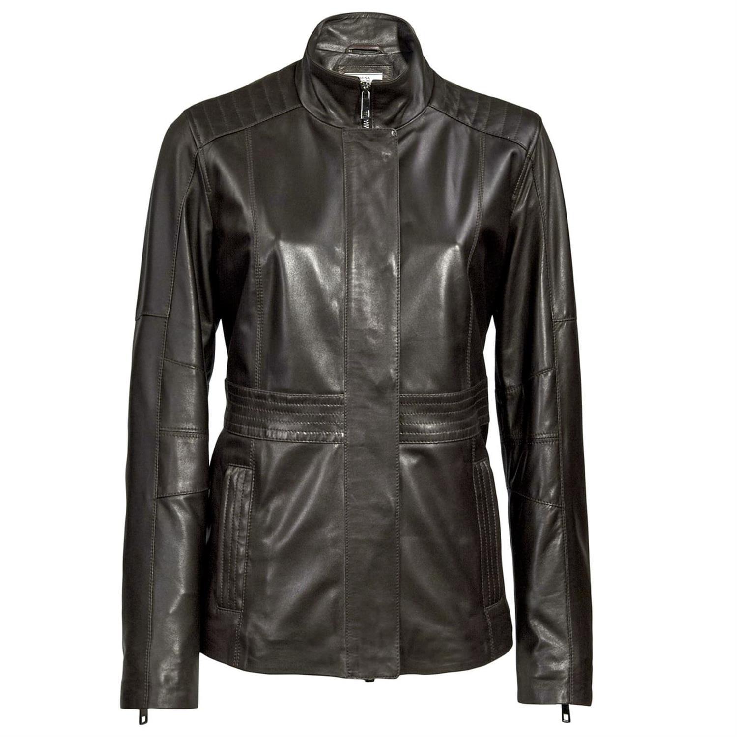 Hakim yaka önden patlı, gizli çıtçıtlı ve fermuarlı kadın kaban.