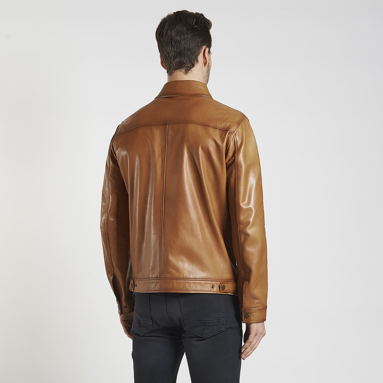 Yakasında düğme detayları, manşetlerinde ve arka etekte çıtçıt kullanılmıştır.