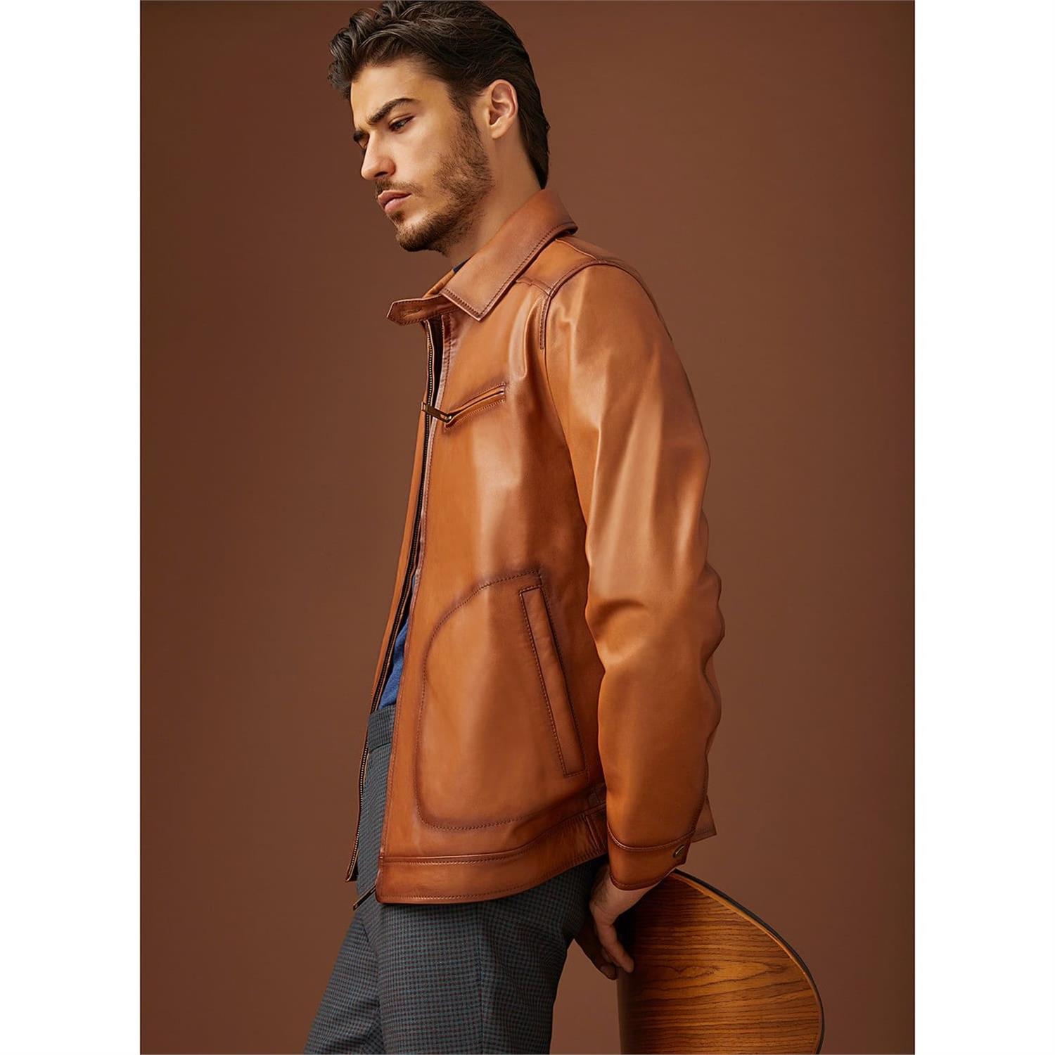 Kahve Mendes Erkek Deri Mont
