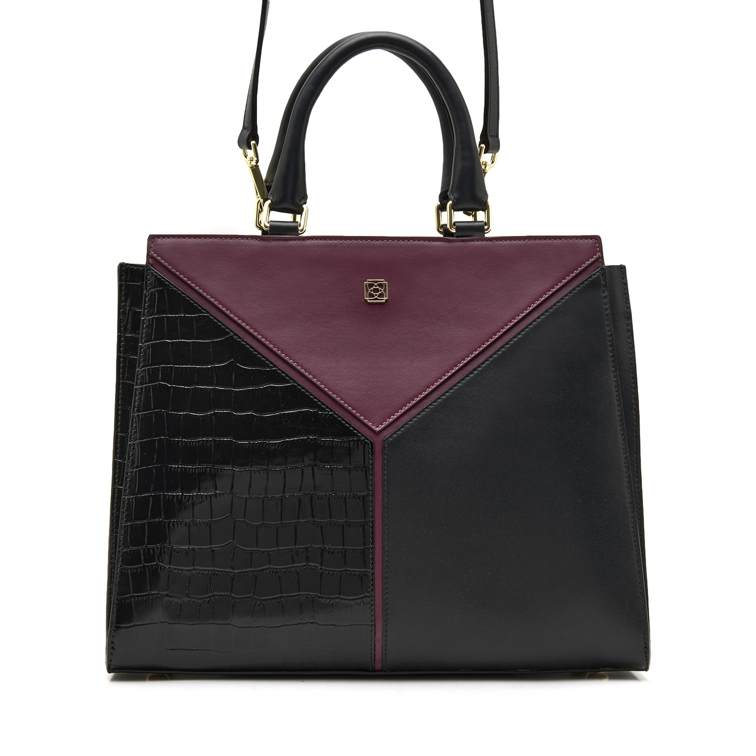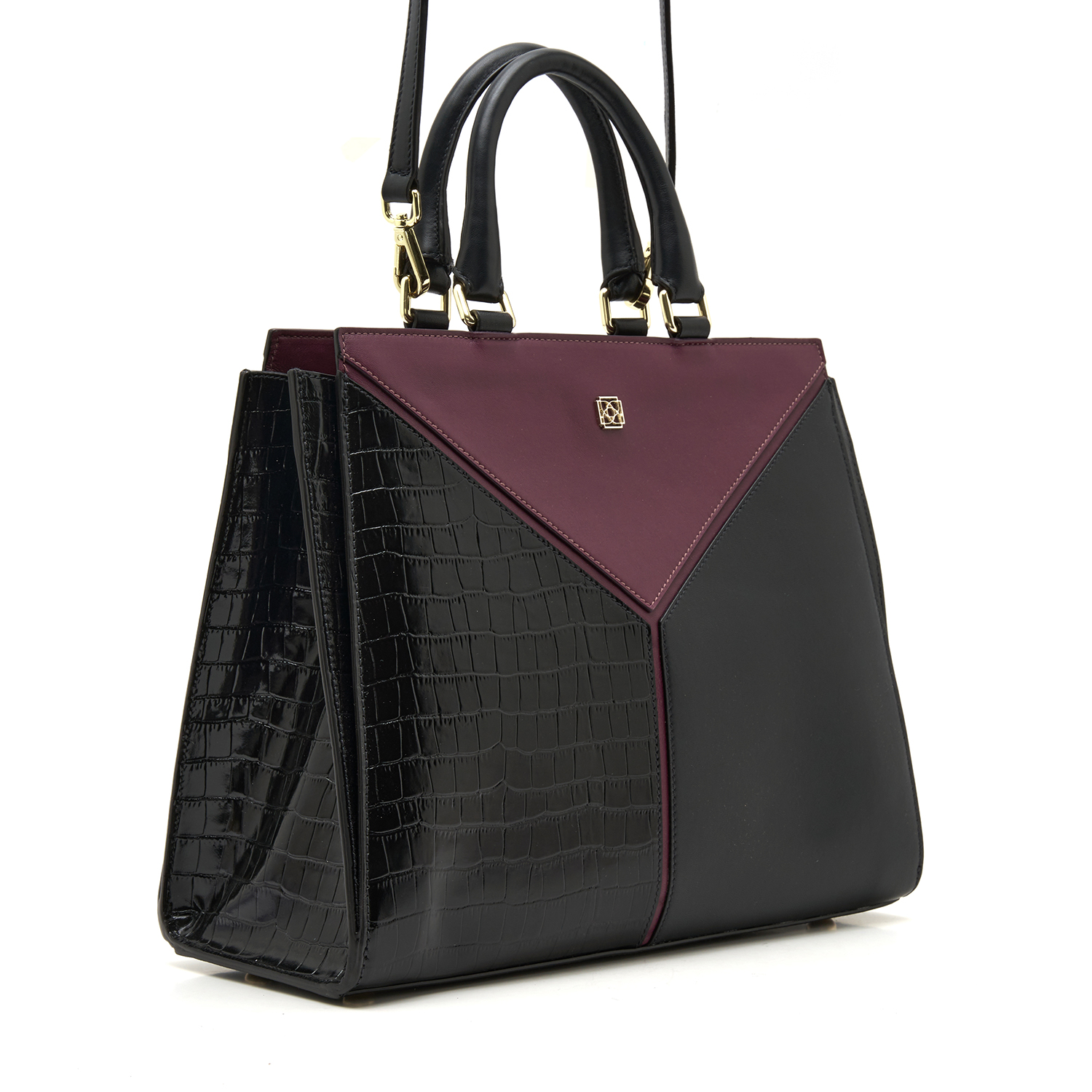 Karmen Siyah Kadın Kroko Baskılı Deri El Çantası