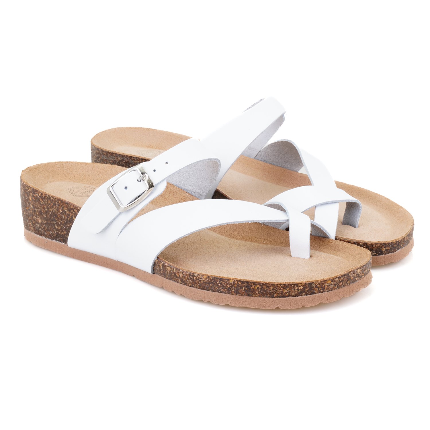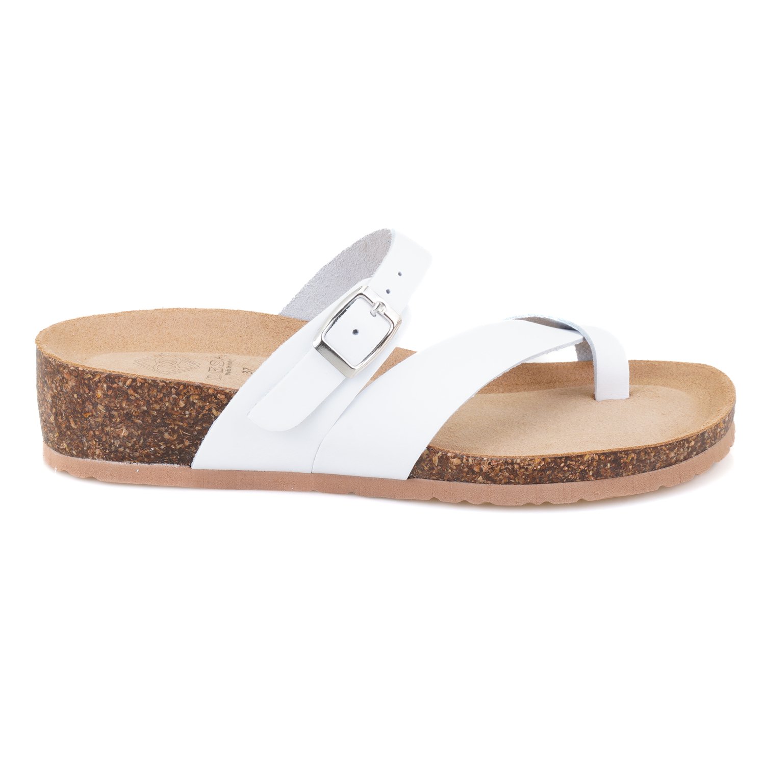 Kathy Beyaz Kadın Parmak Arası Nubuk Deri Terlik