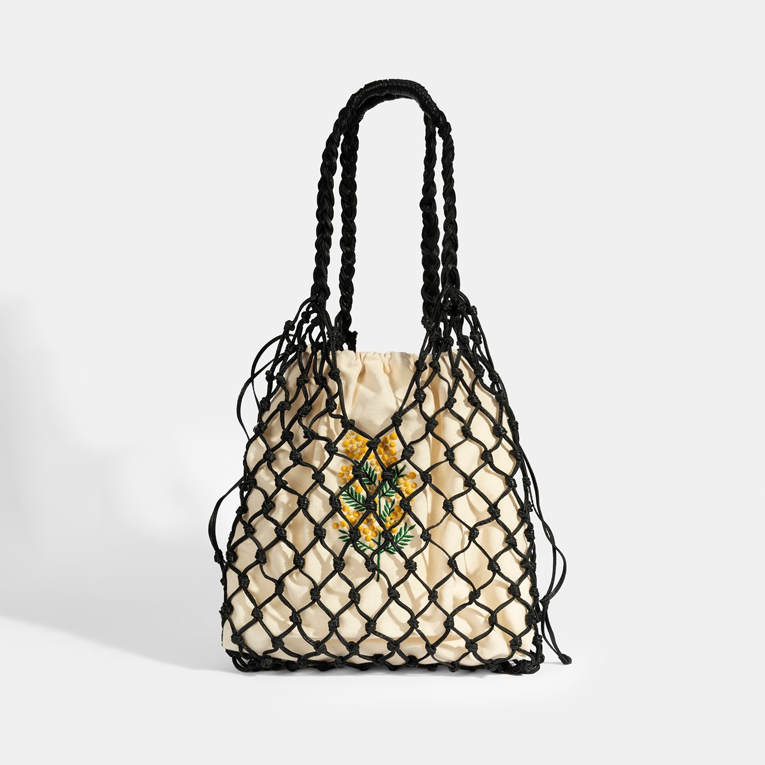 KEDV Mimozalı Bej Deri Örgü Çanta