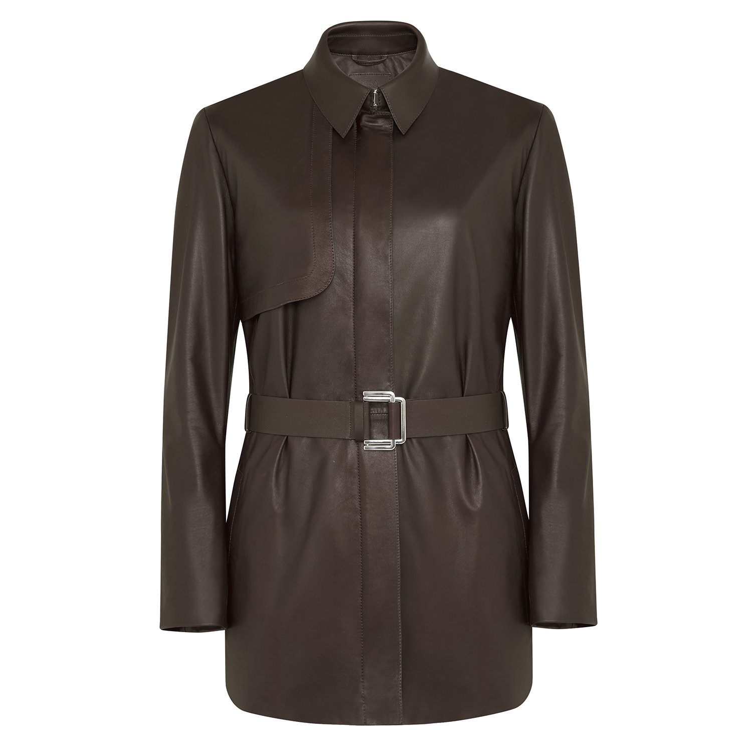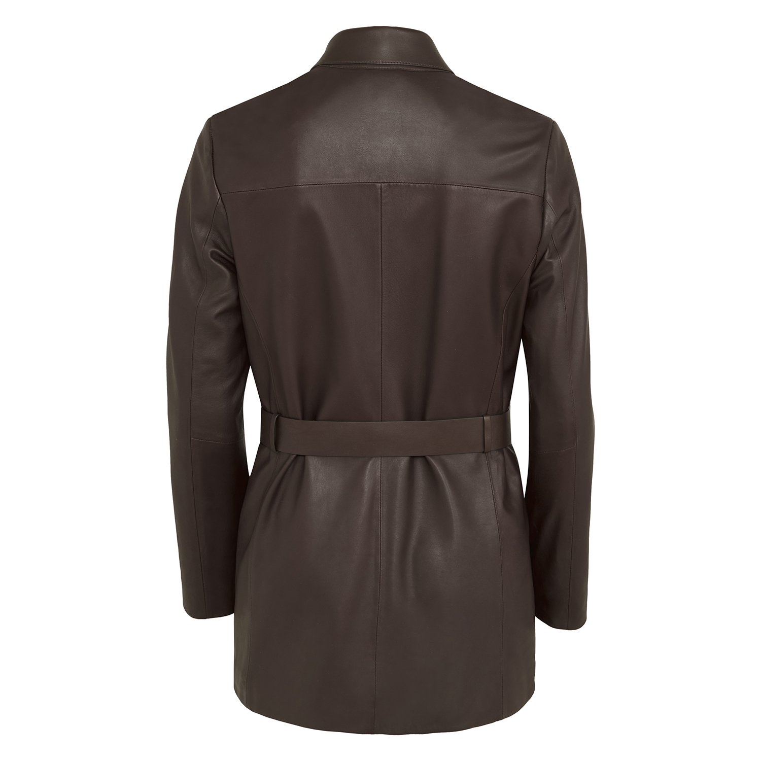 Kemer kenarlarında ve yakada özel işçilik kenar boyası ve çift kat deri lamine tekniği kullanılmıştır.