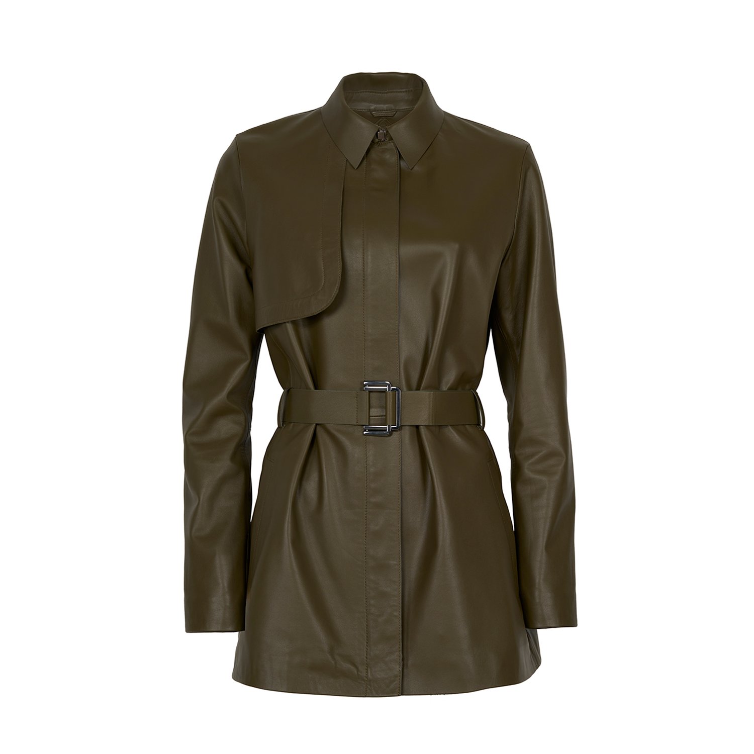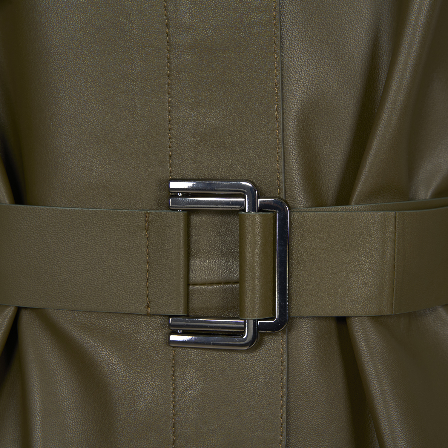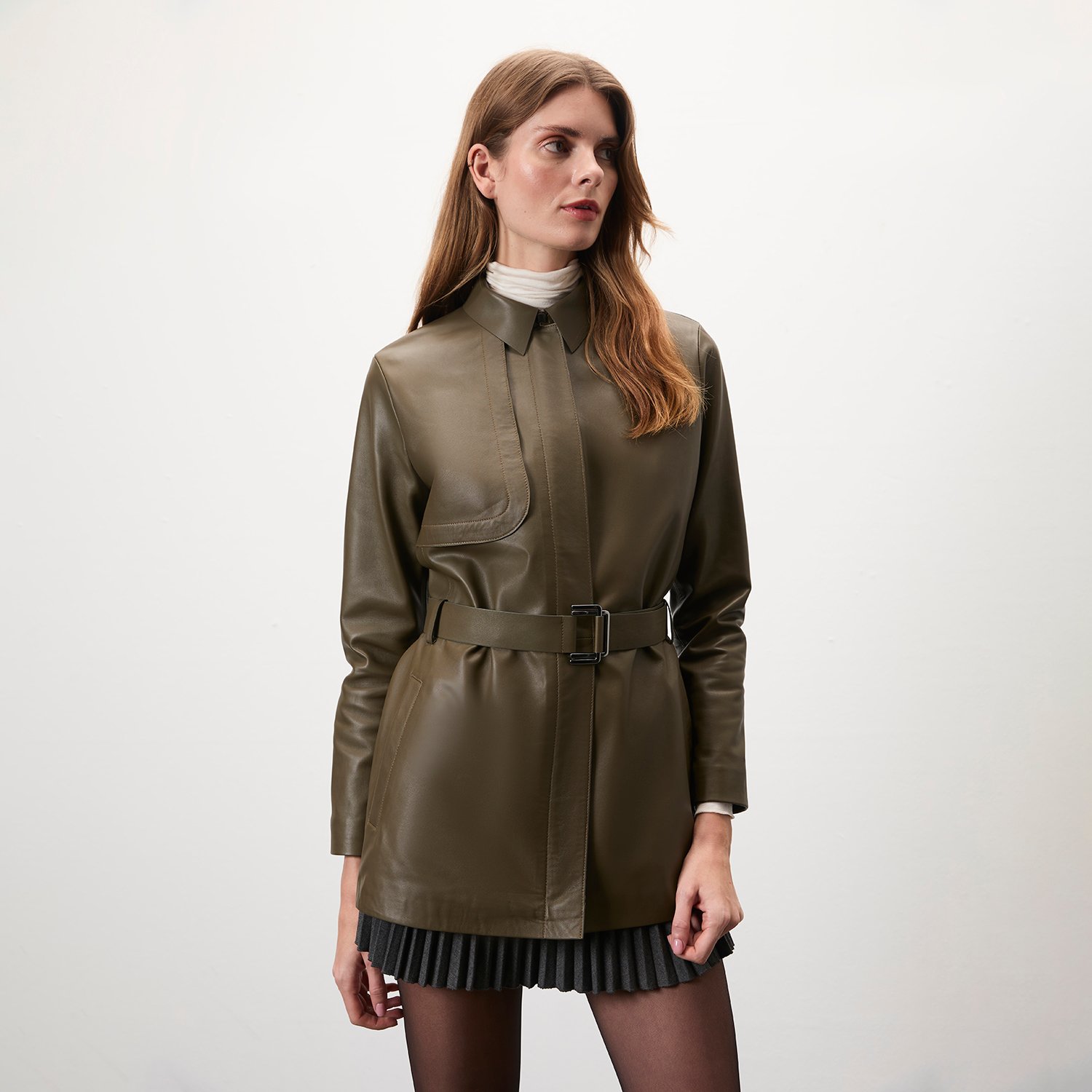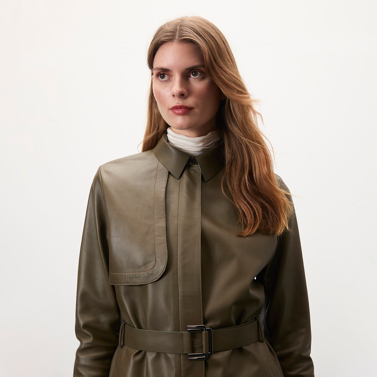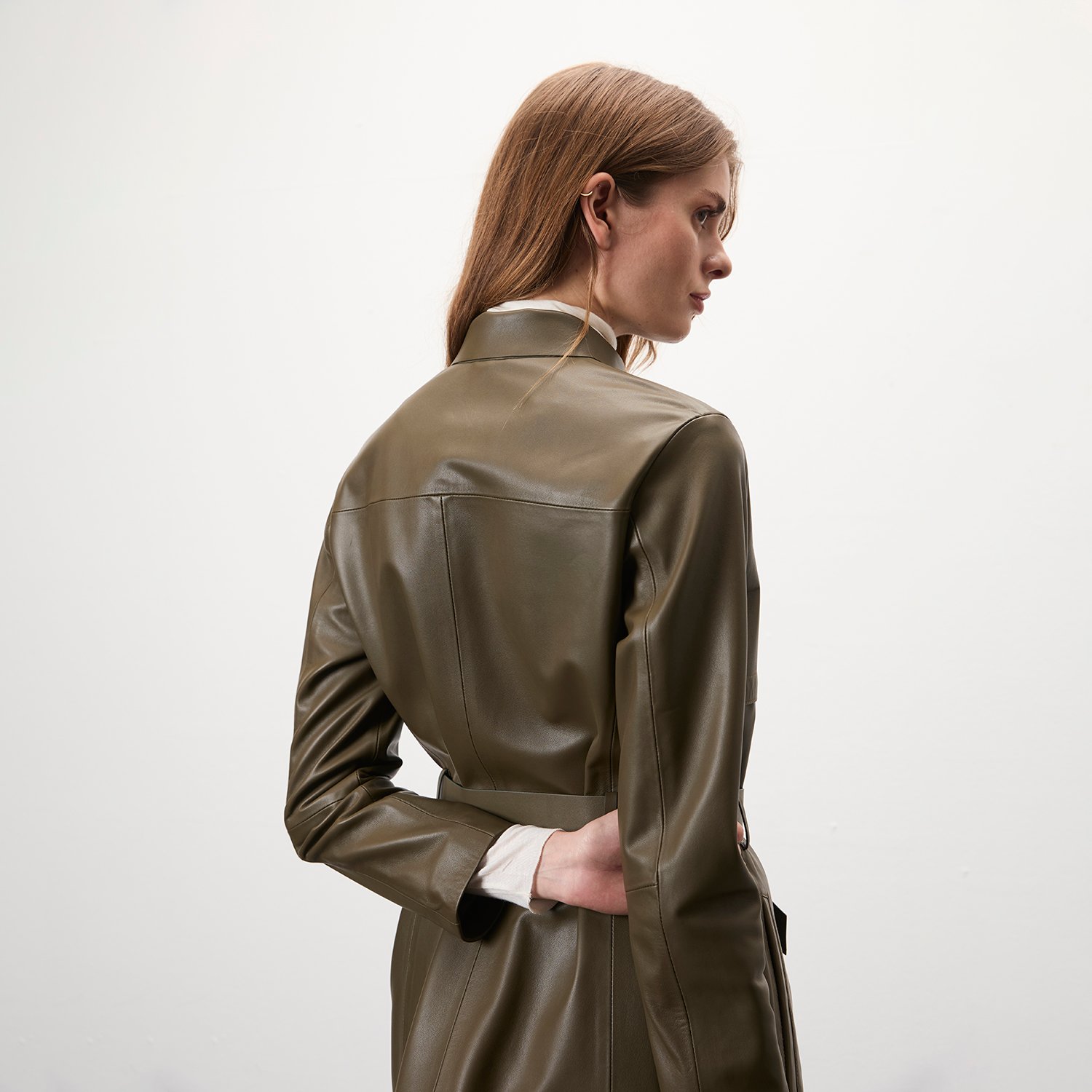 Önden gizli metal fermuar kapamalı gömlek yakalı kadın trençkot.