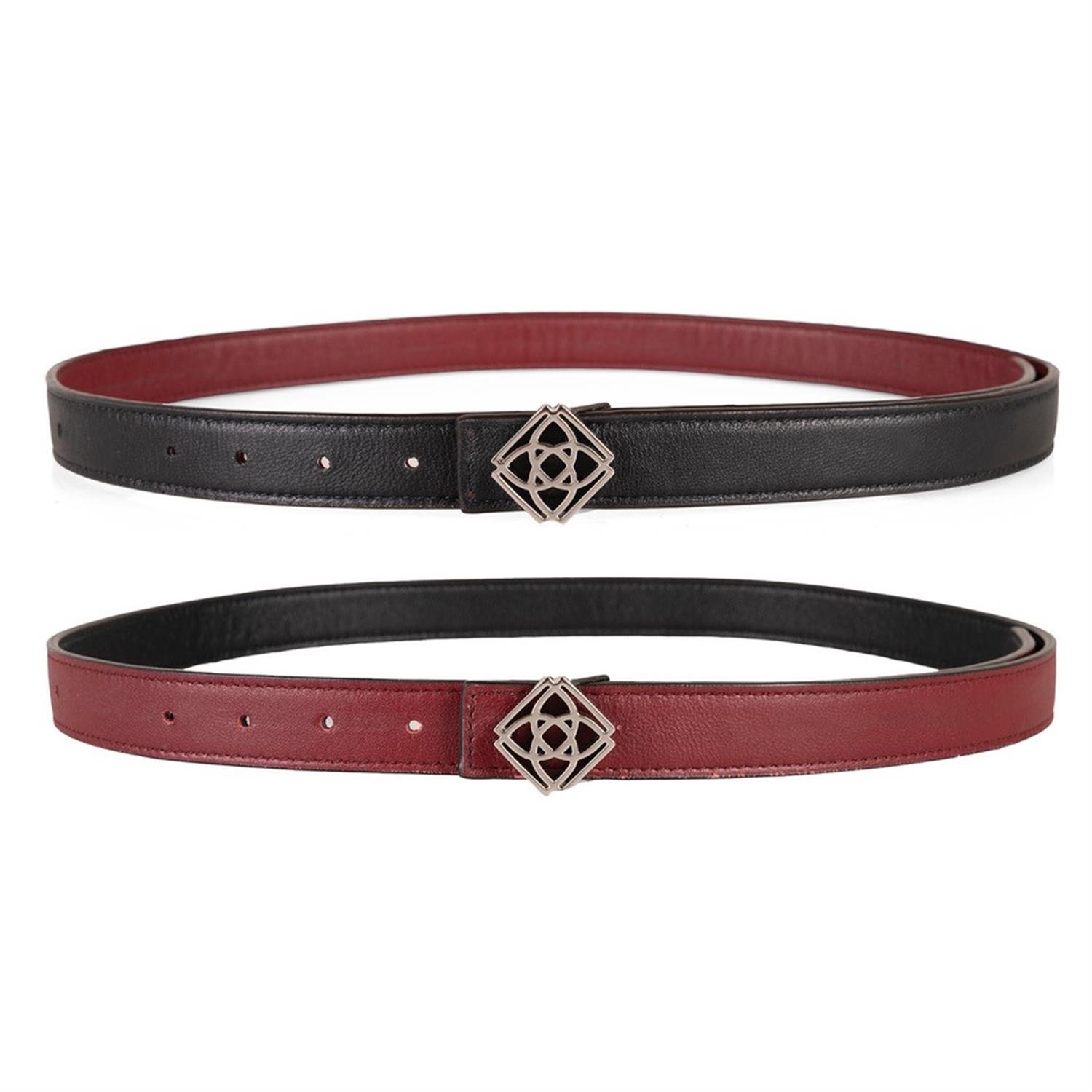 Kieran Bordo/Siyah Kadın Çift Taraflı Nikel Tokalı Deri Kemer