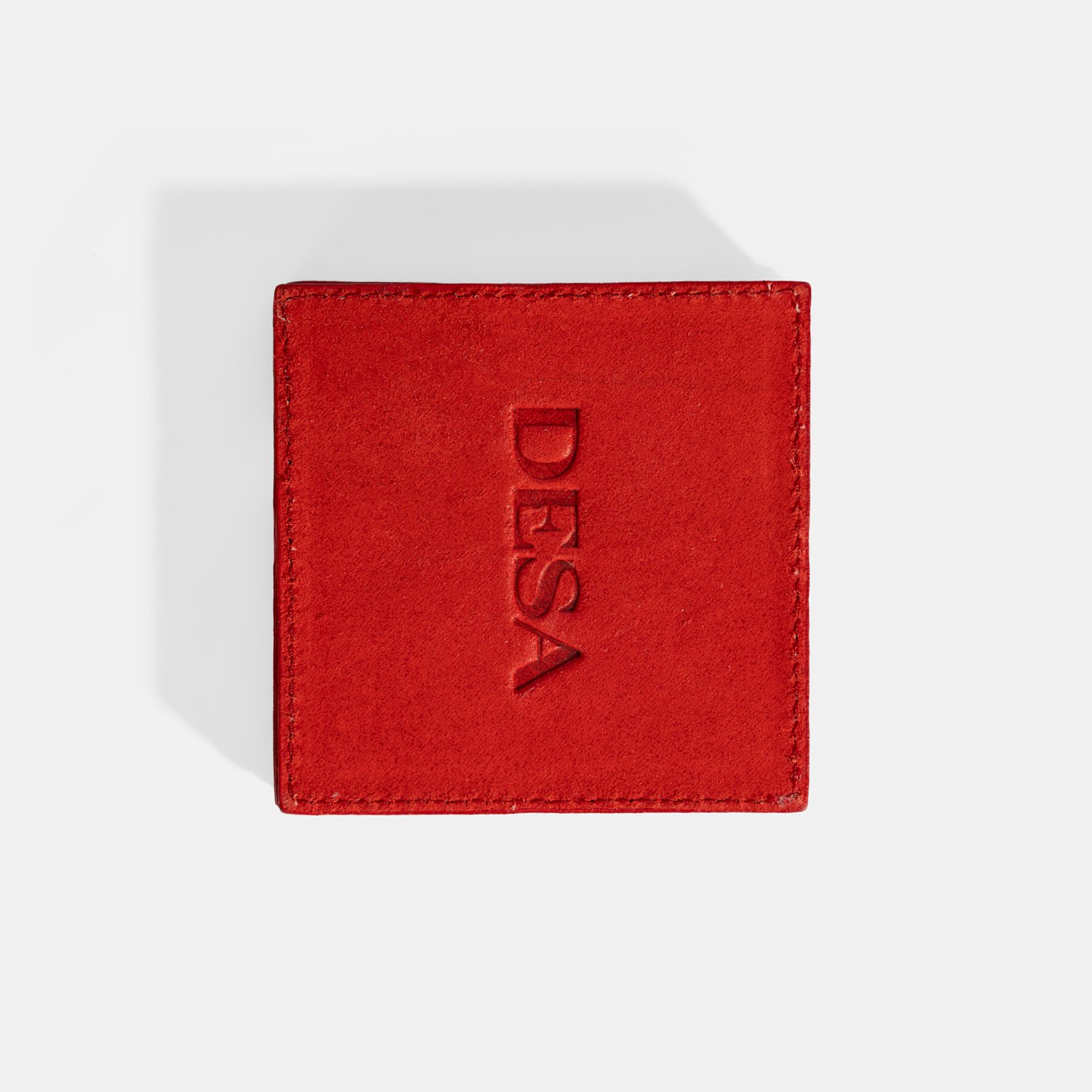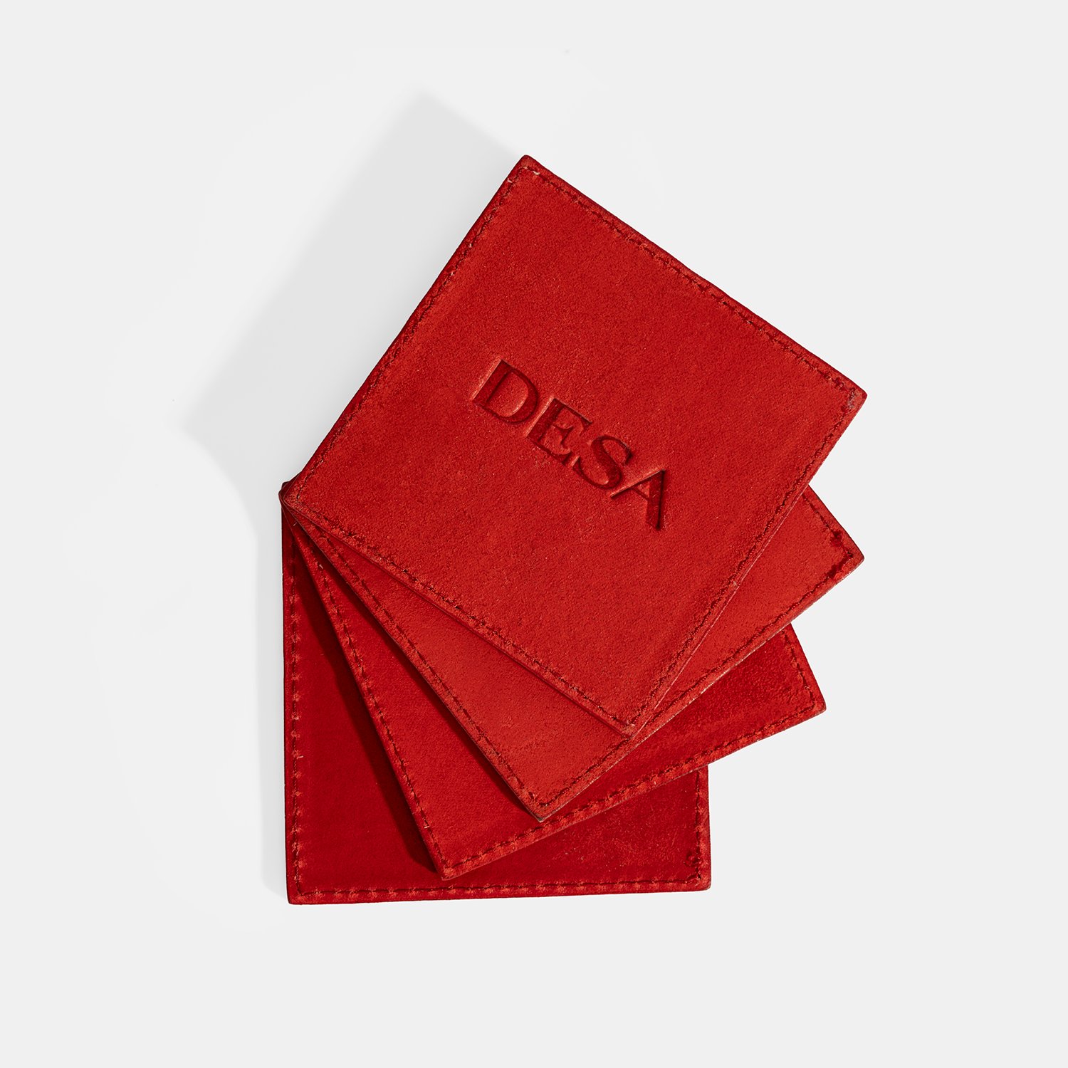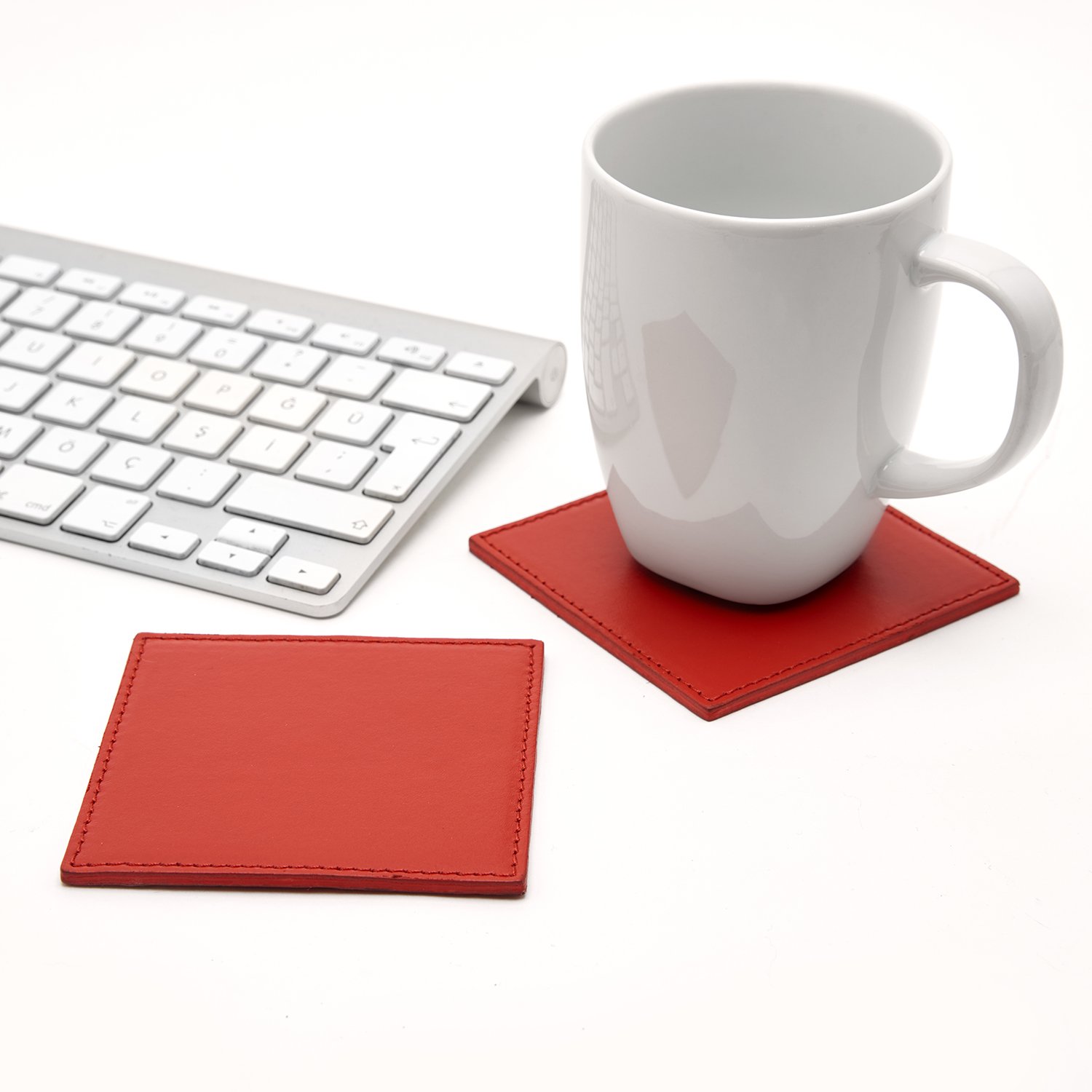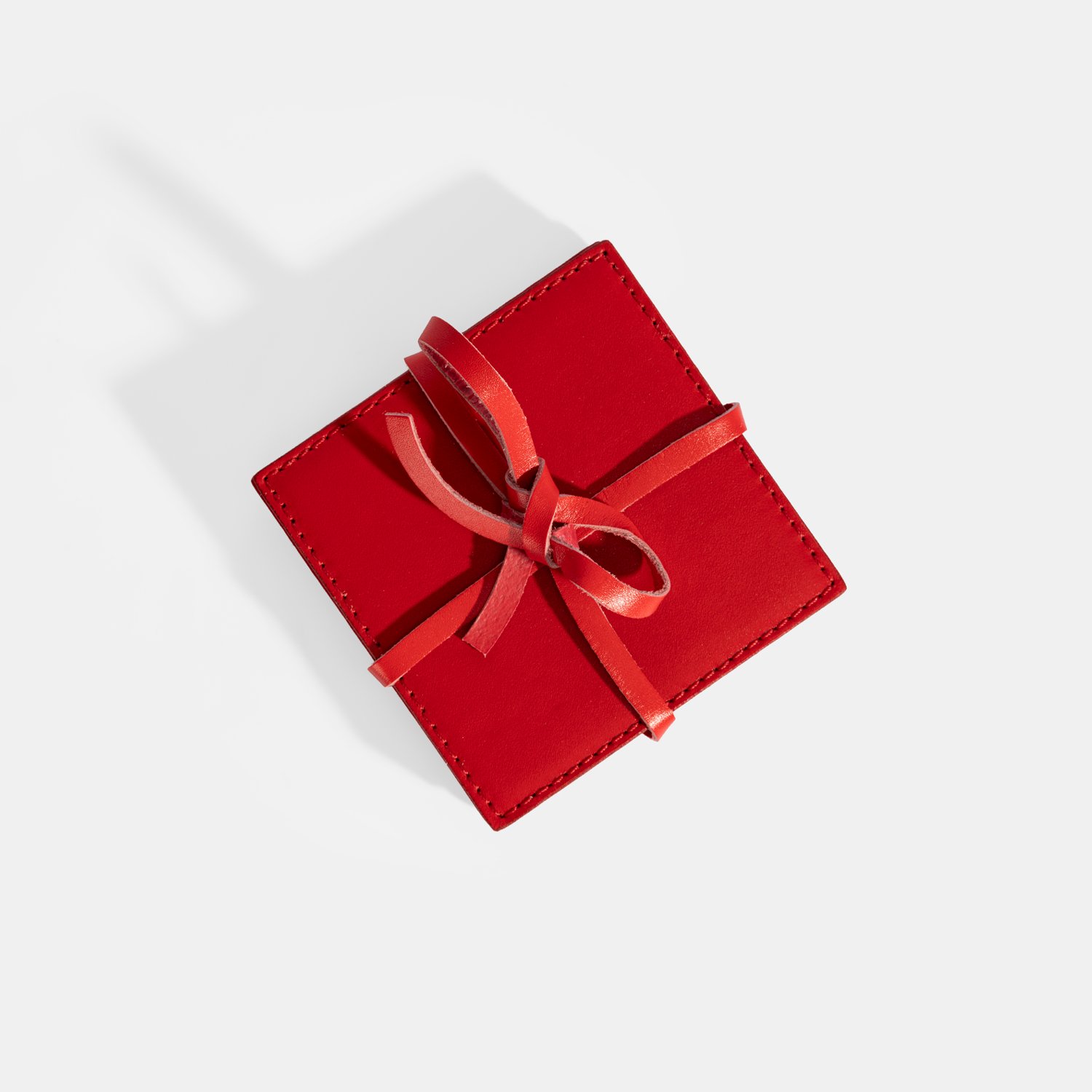 Kırmızı Deri Dörtlü Bardak Altlığı