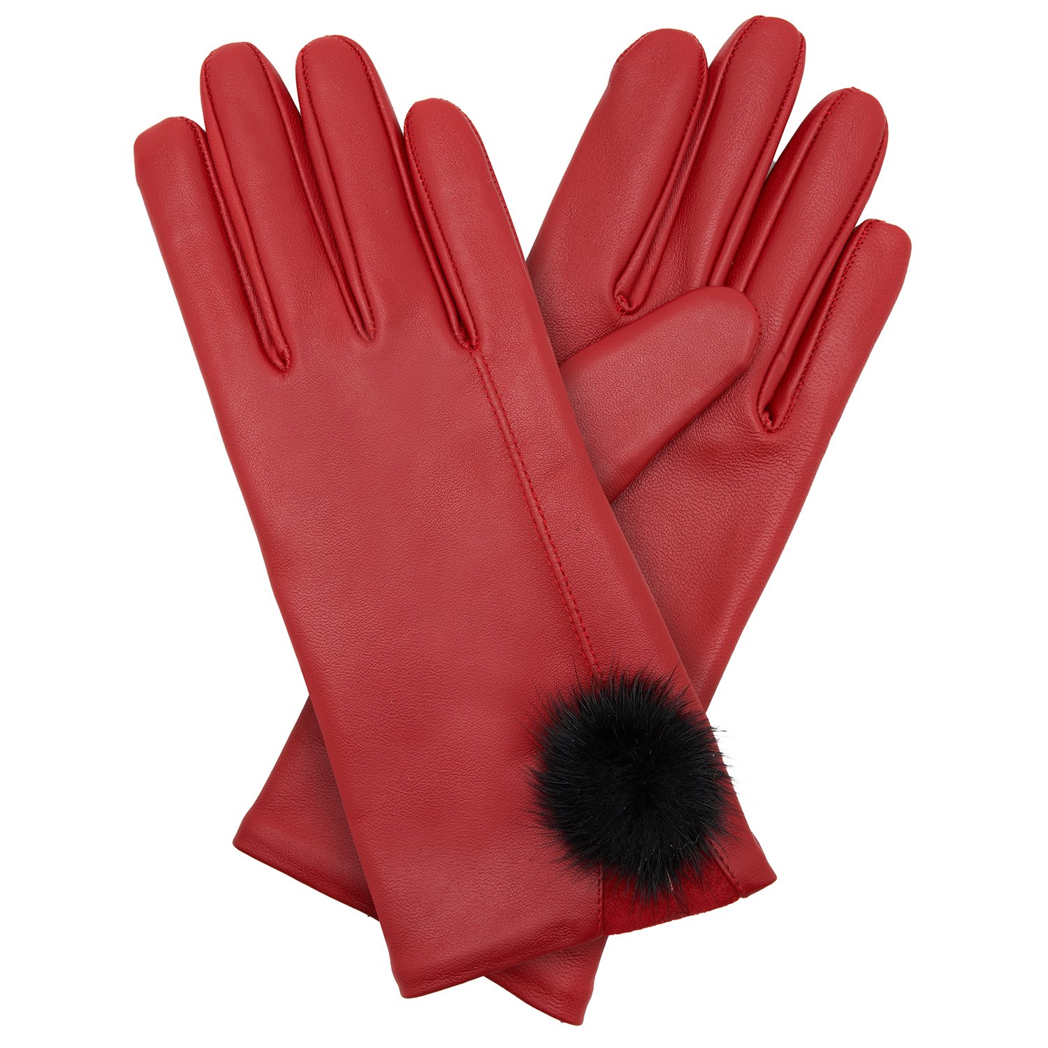 Kırmızı Kadın Kürk Detaylı Deri Eldiven