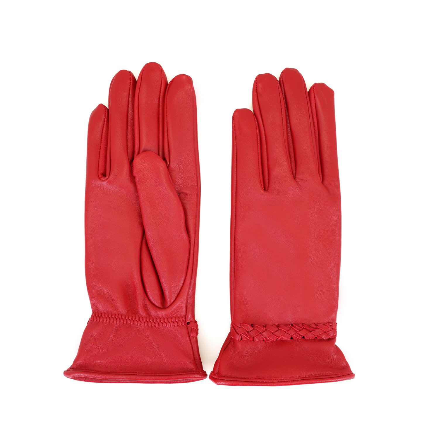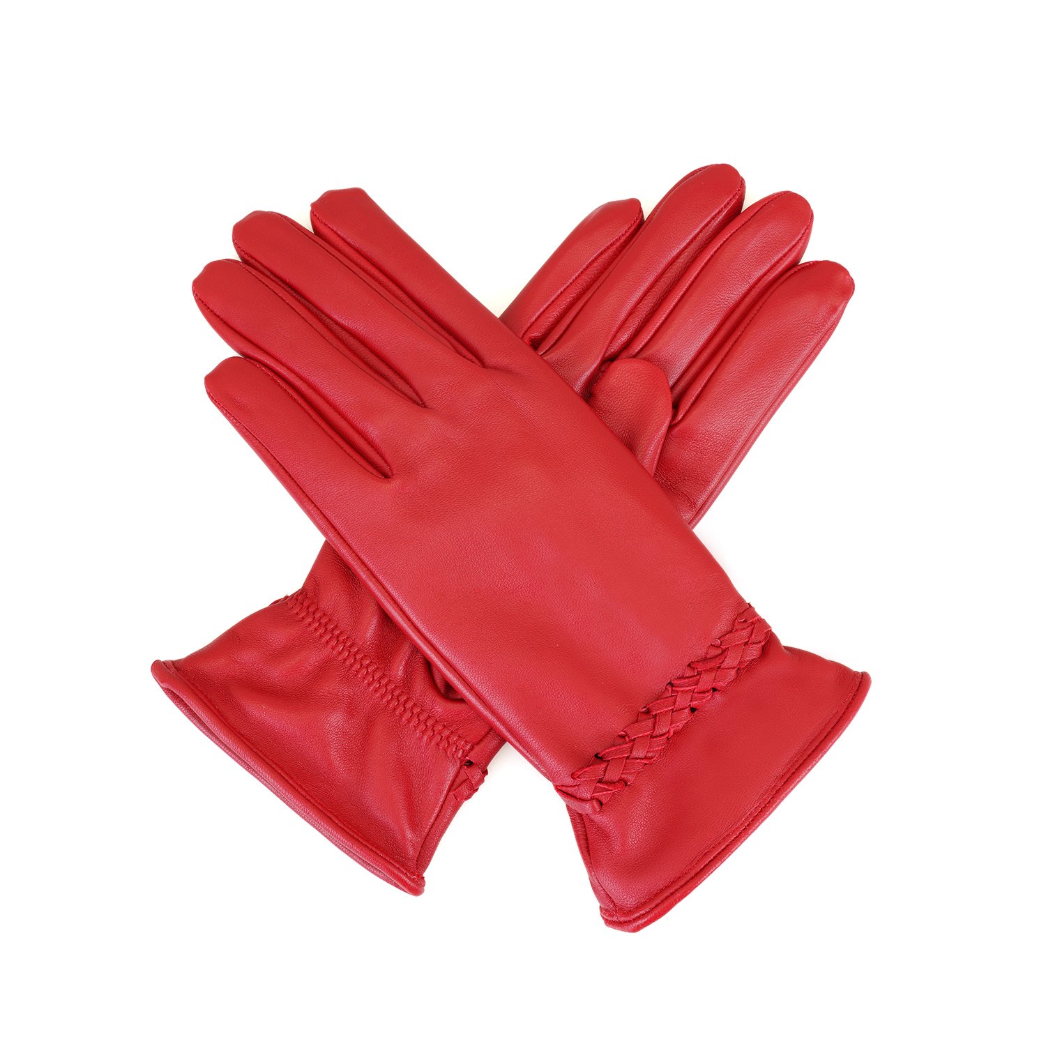 Kırmızı Kadın Örgülü Deri Eldiven Siyah Kadın Örgülü Deri Eldiven