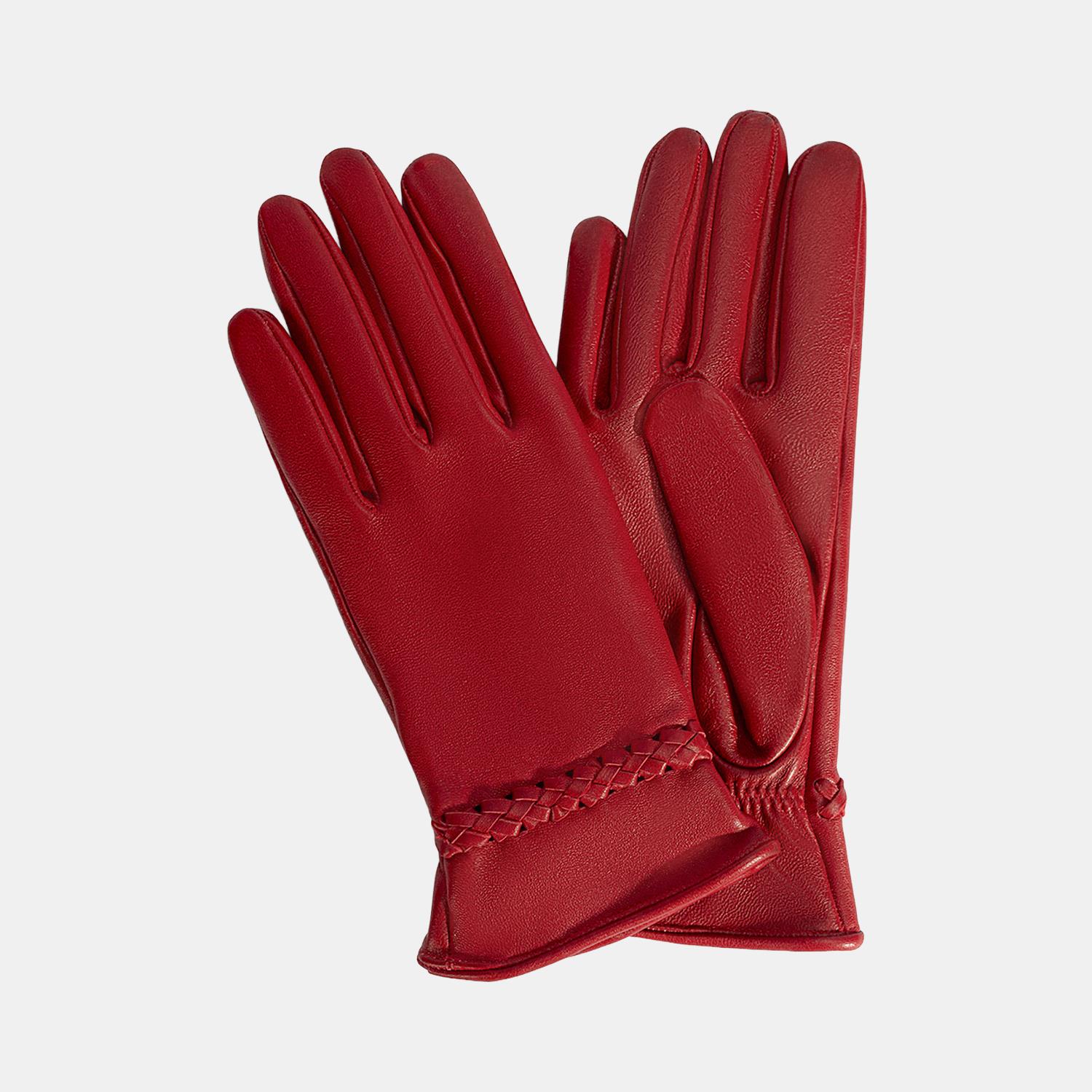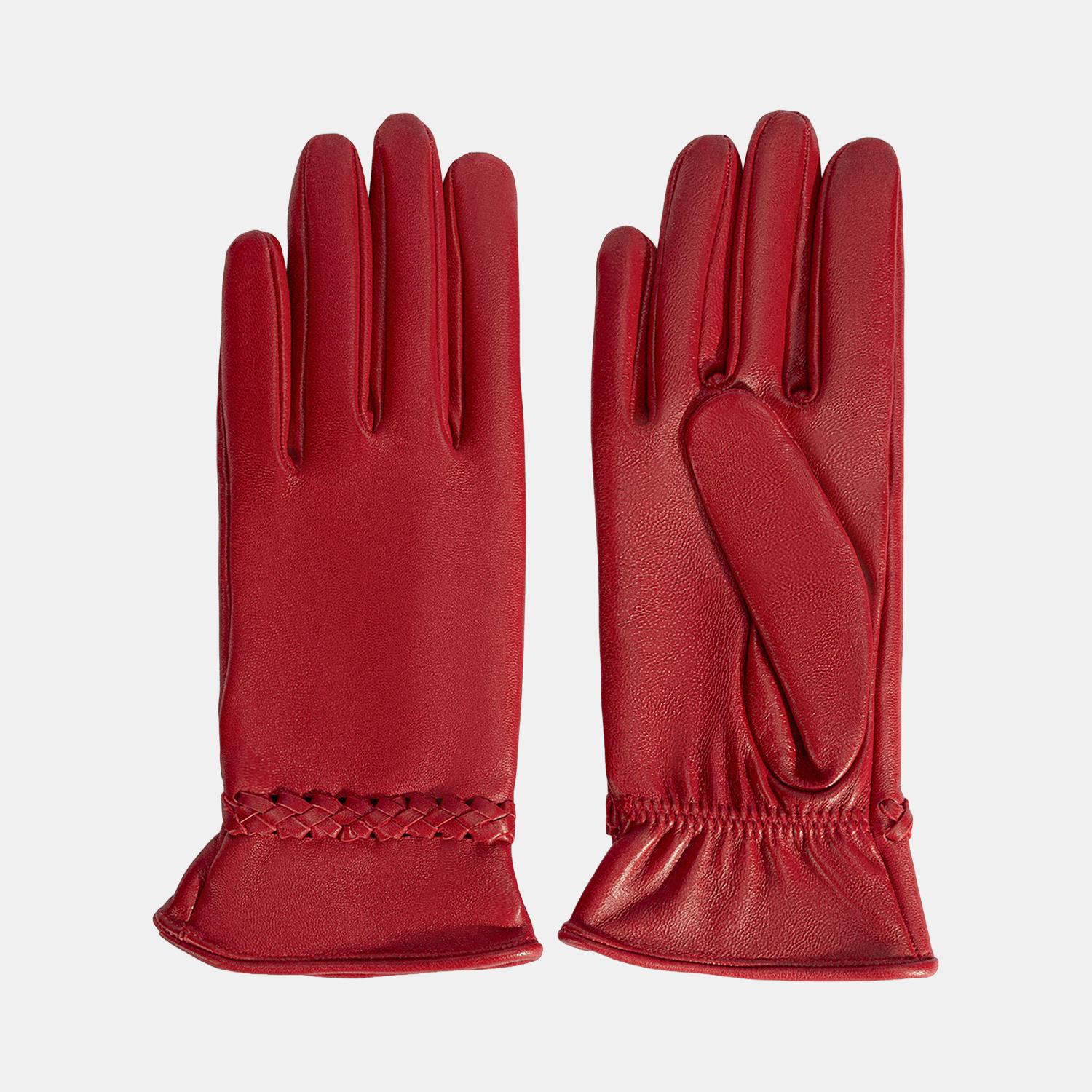 Kırmızı Kadın Örgülü Deri Eldiven