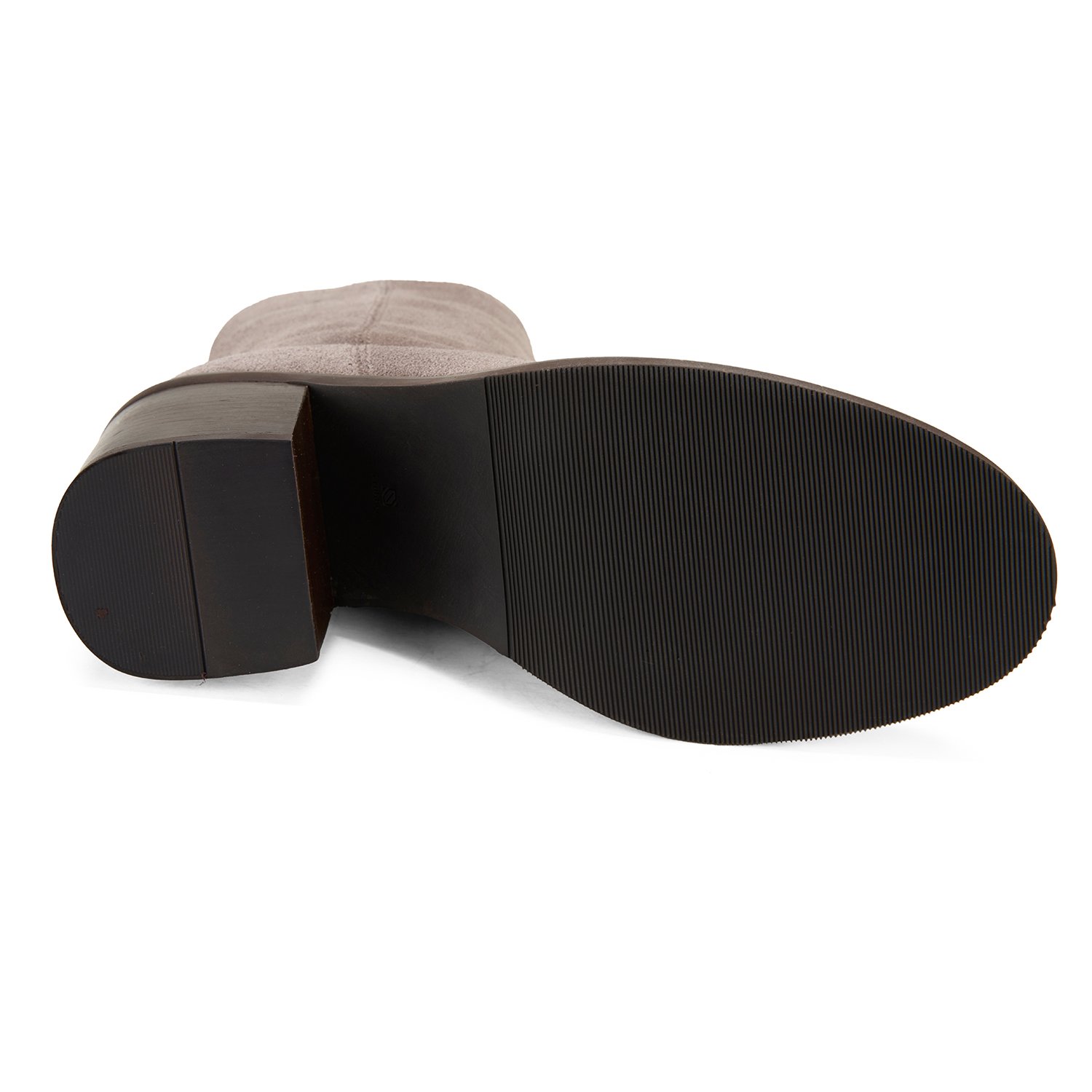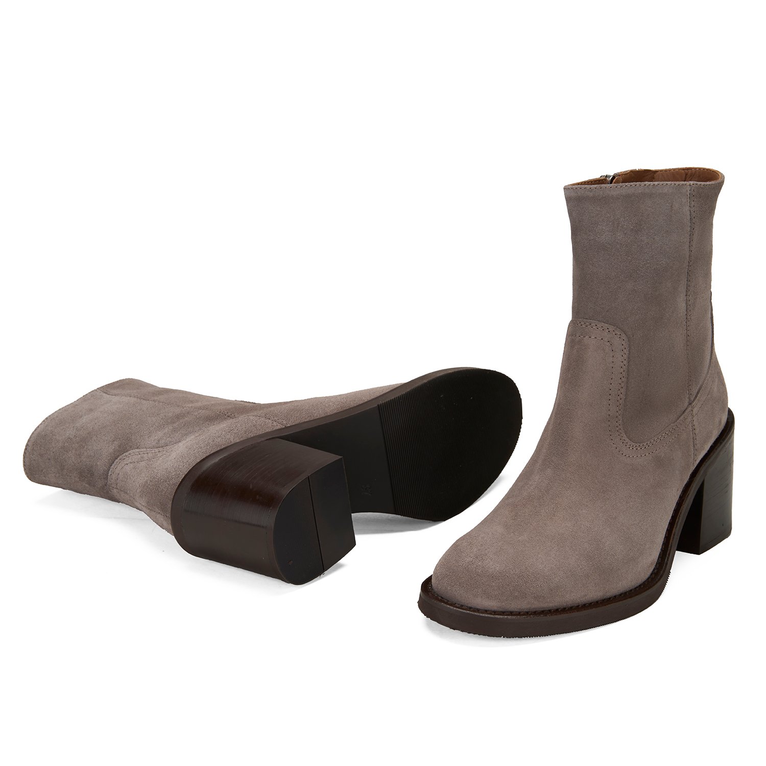 Şıklığı ve konforu bir arada sunan bu kadın topuklu bot, %100 süet deri dış yüzeyi ile zarif bir görünüm sağlar.