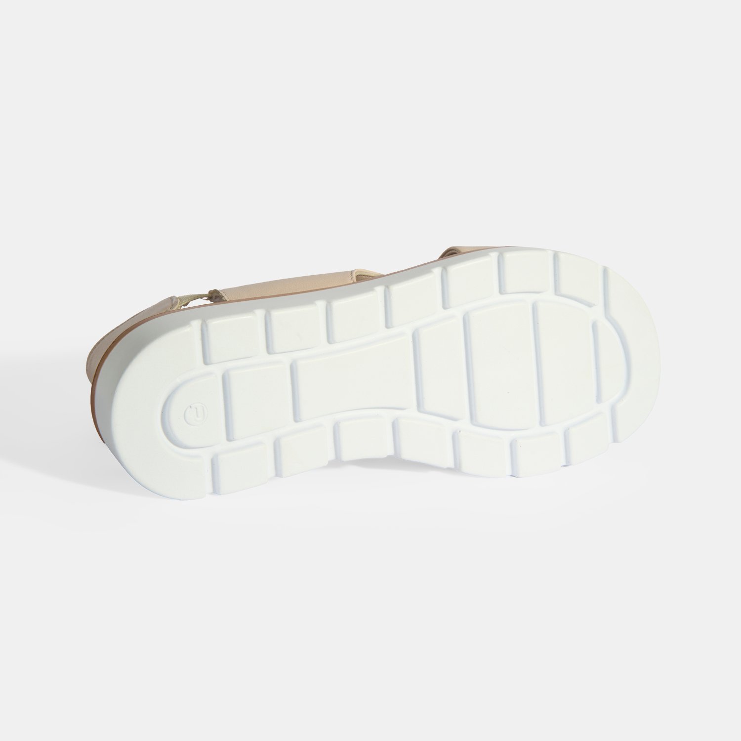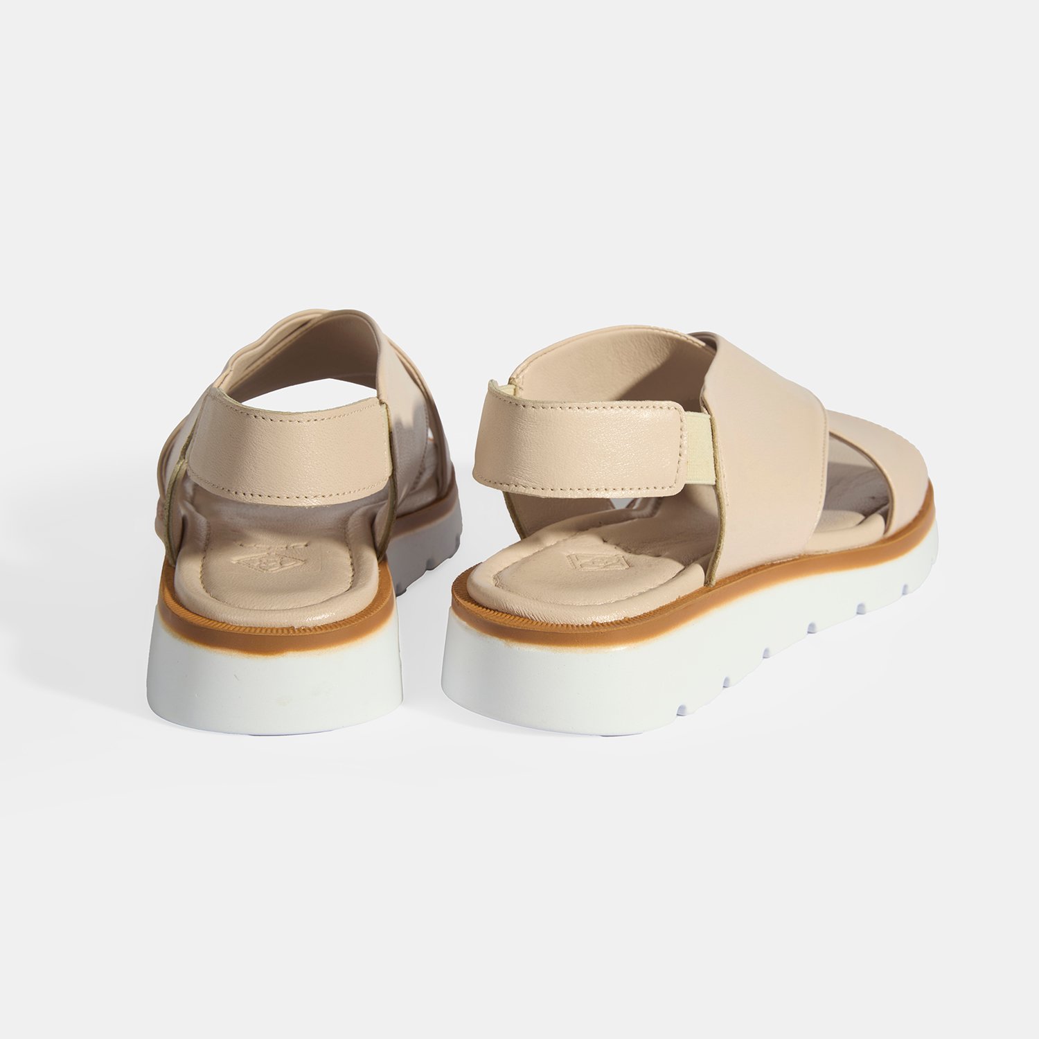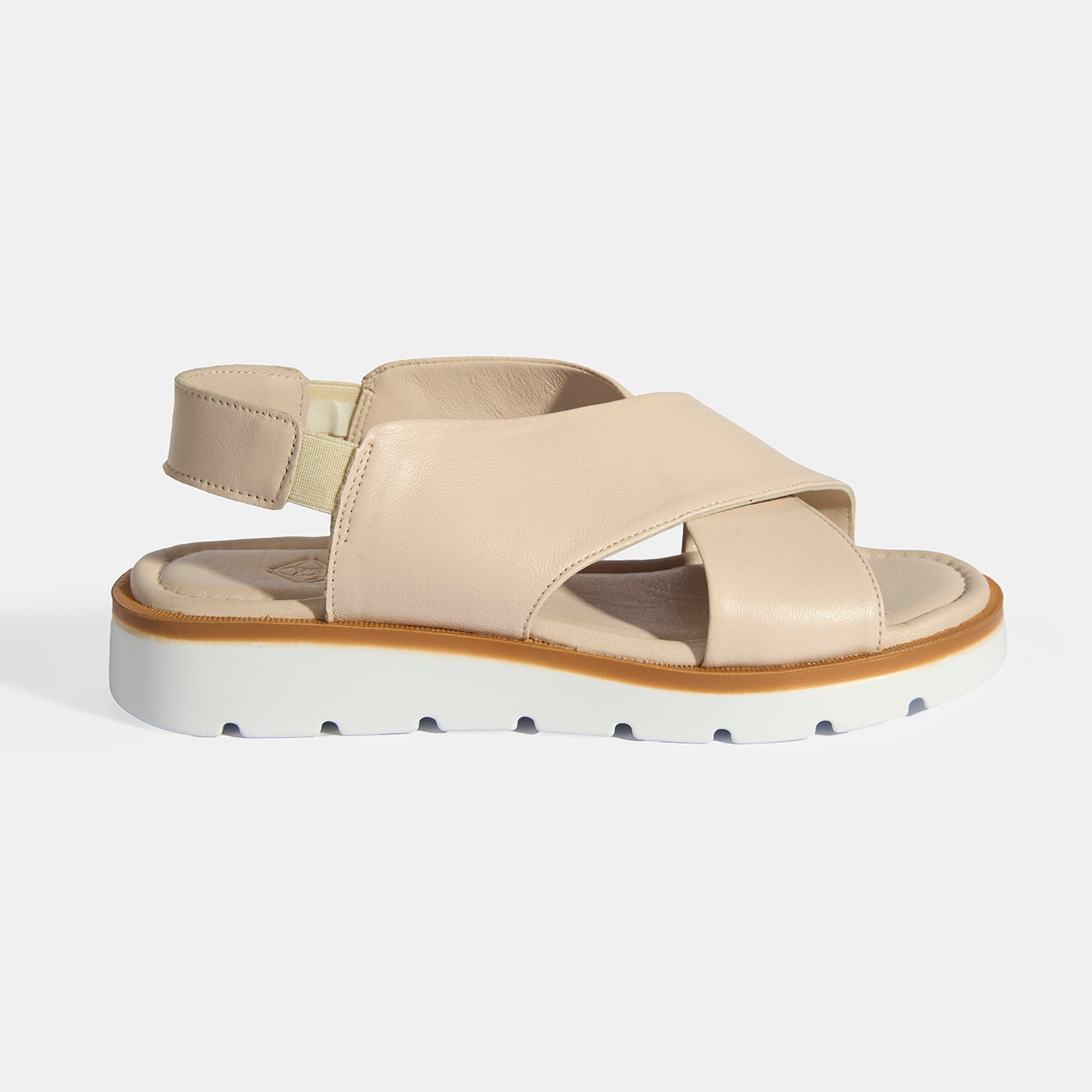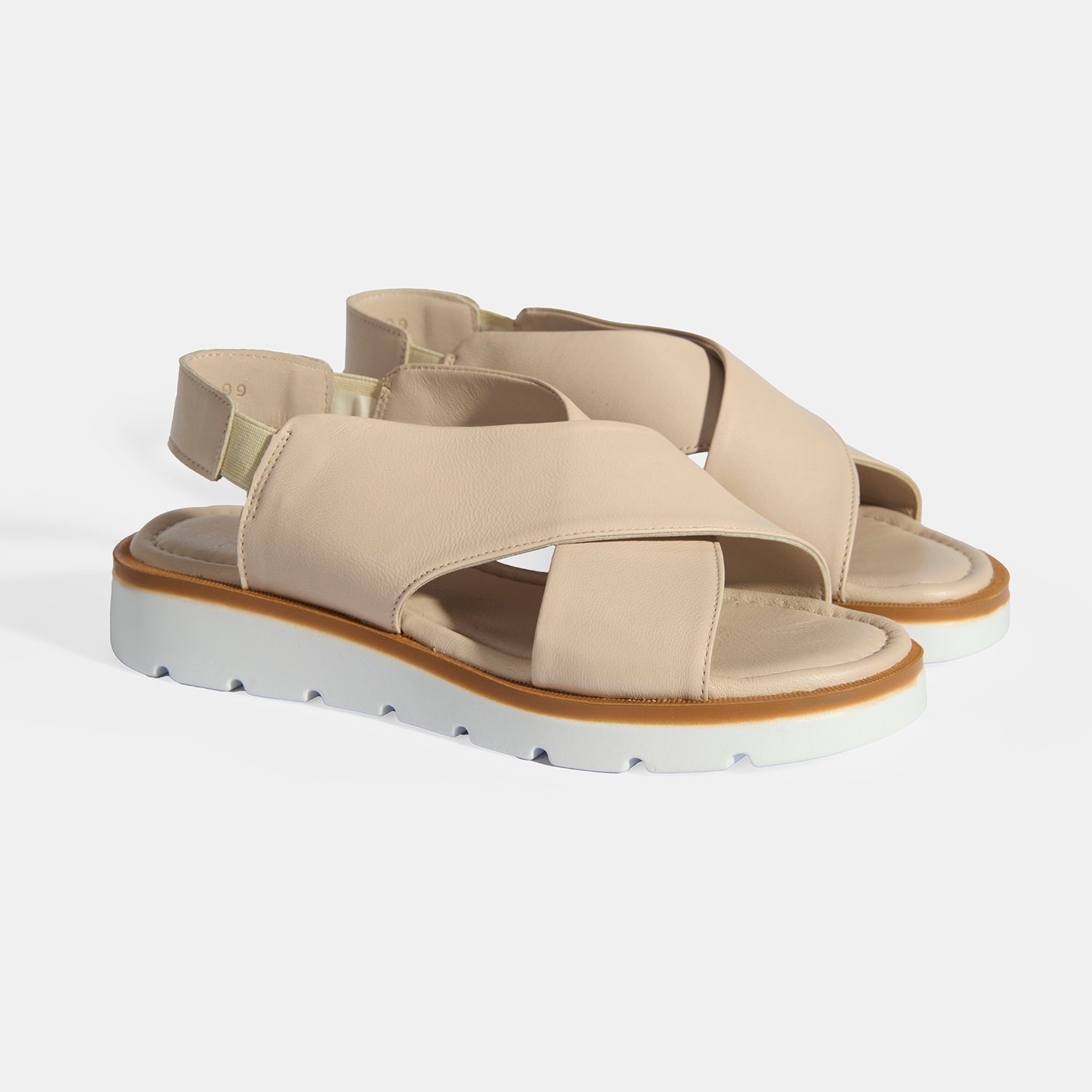 Krem Kadın Lastik Bantlı Deri Sandalet