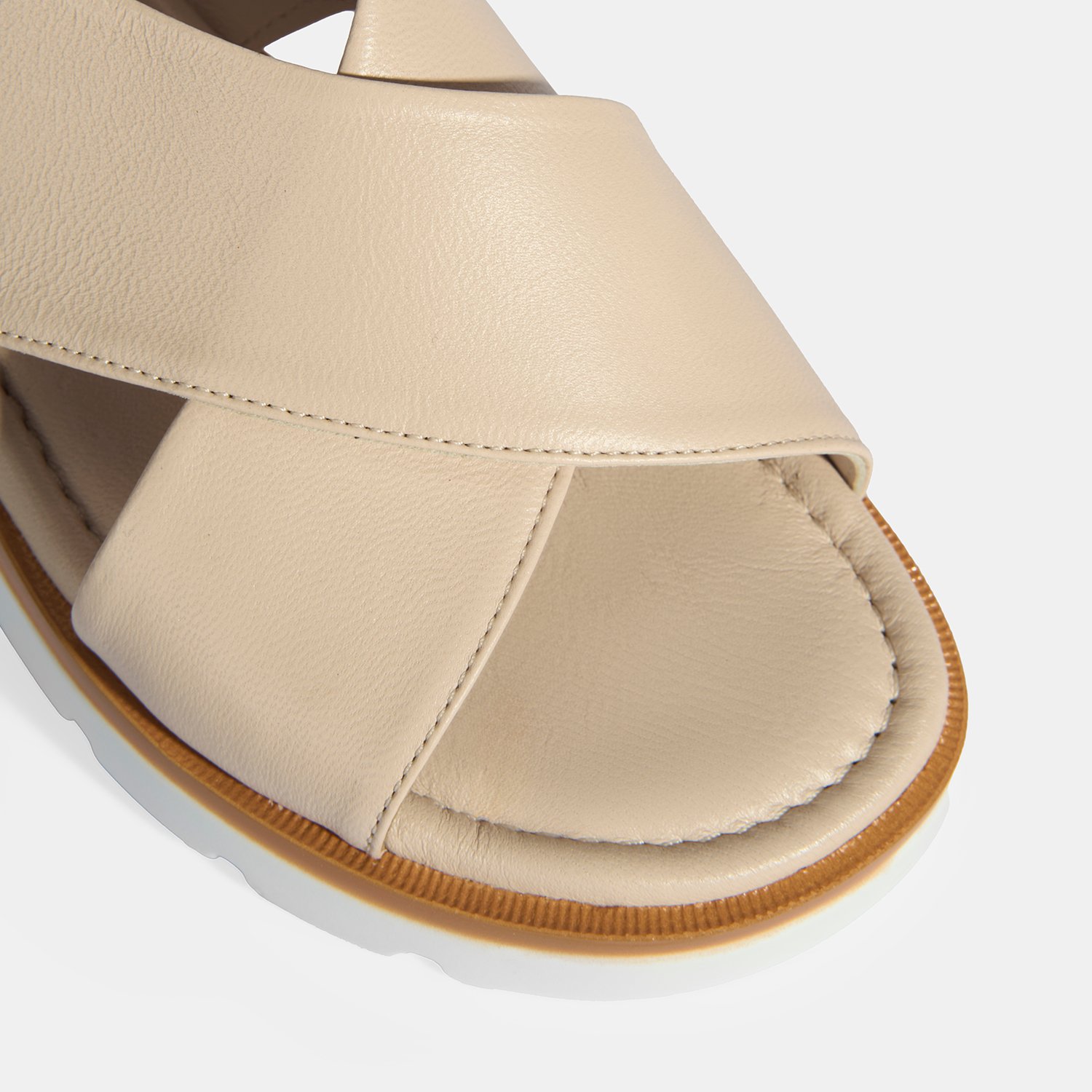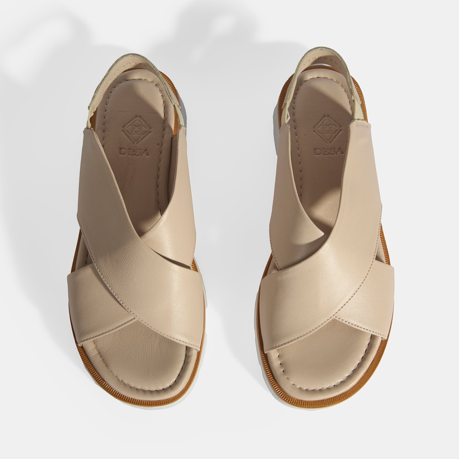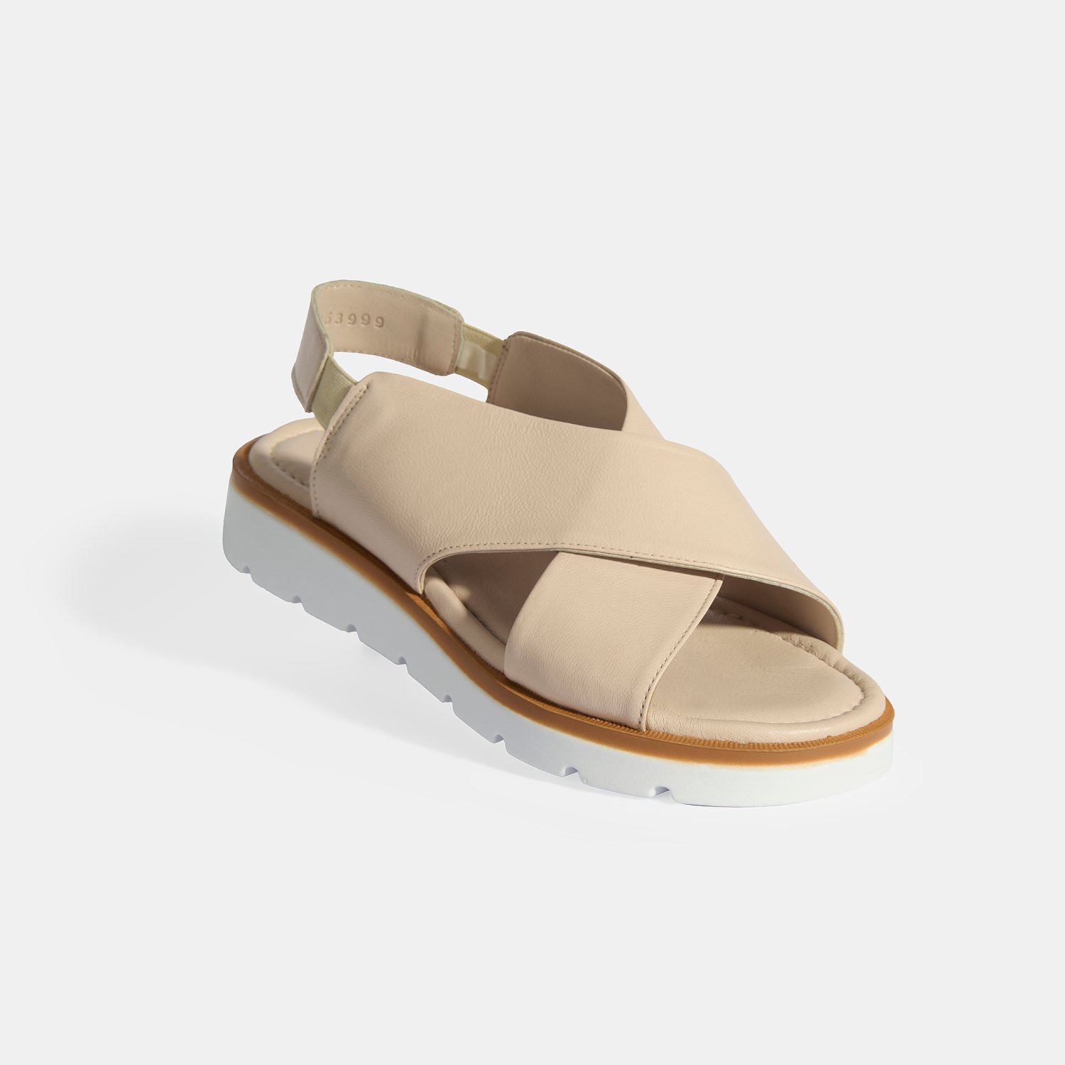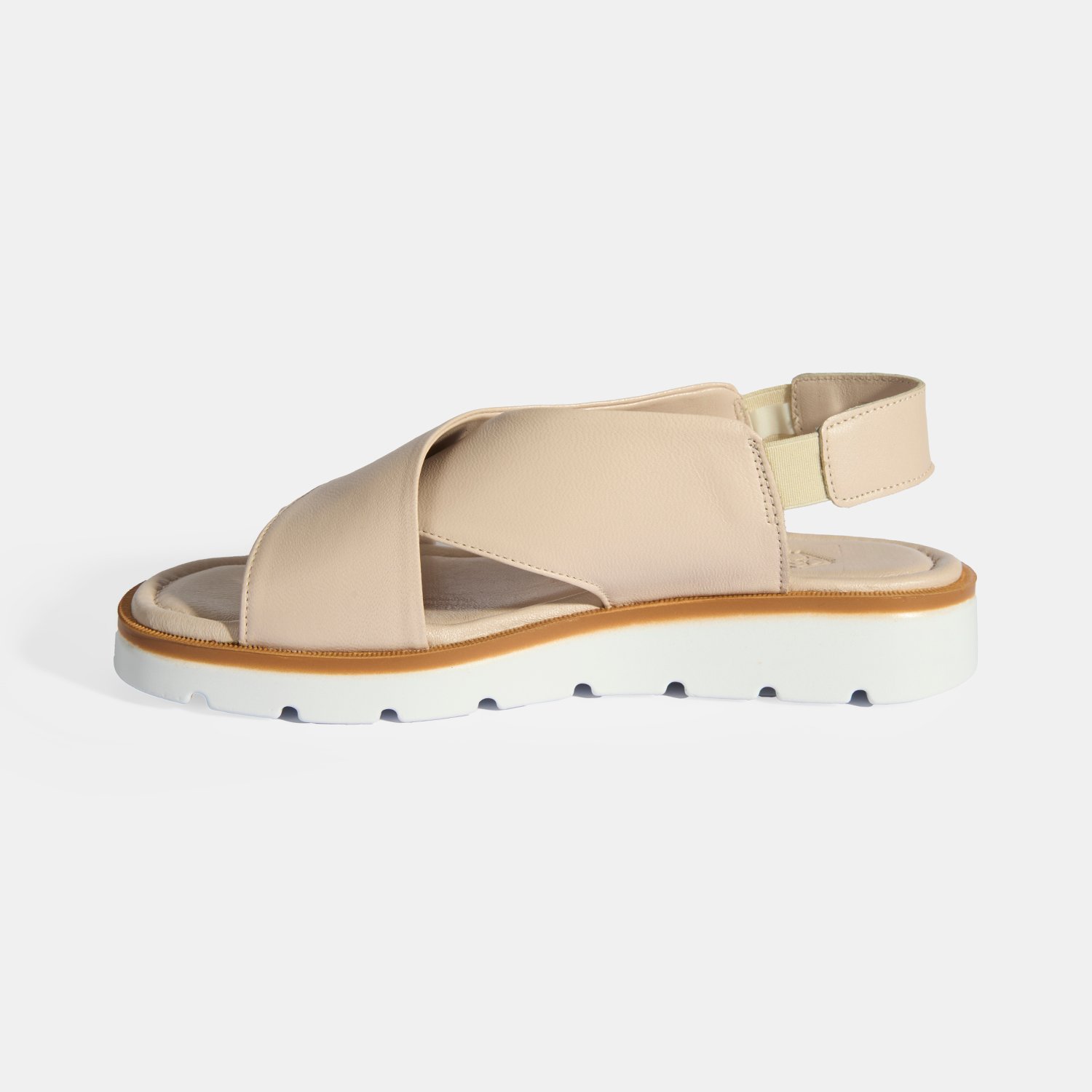 Krem Kadın Lastik Bantlı Deri Sandalet