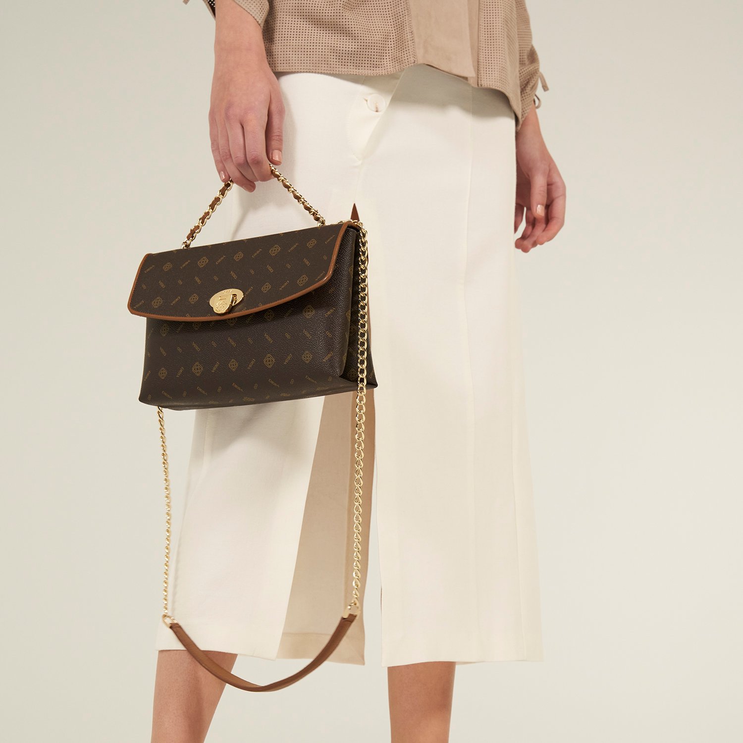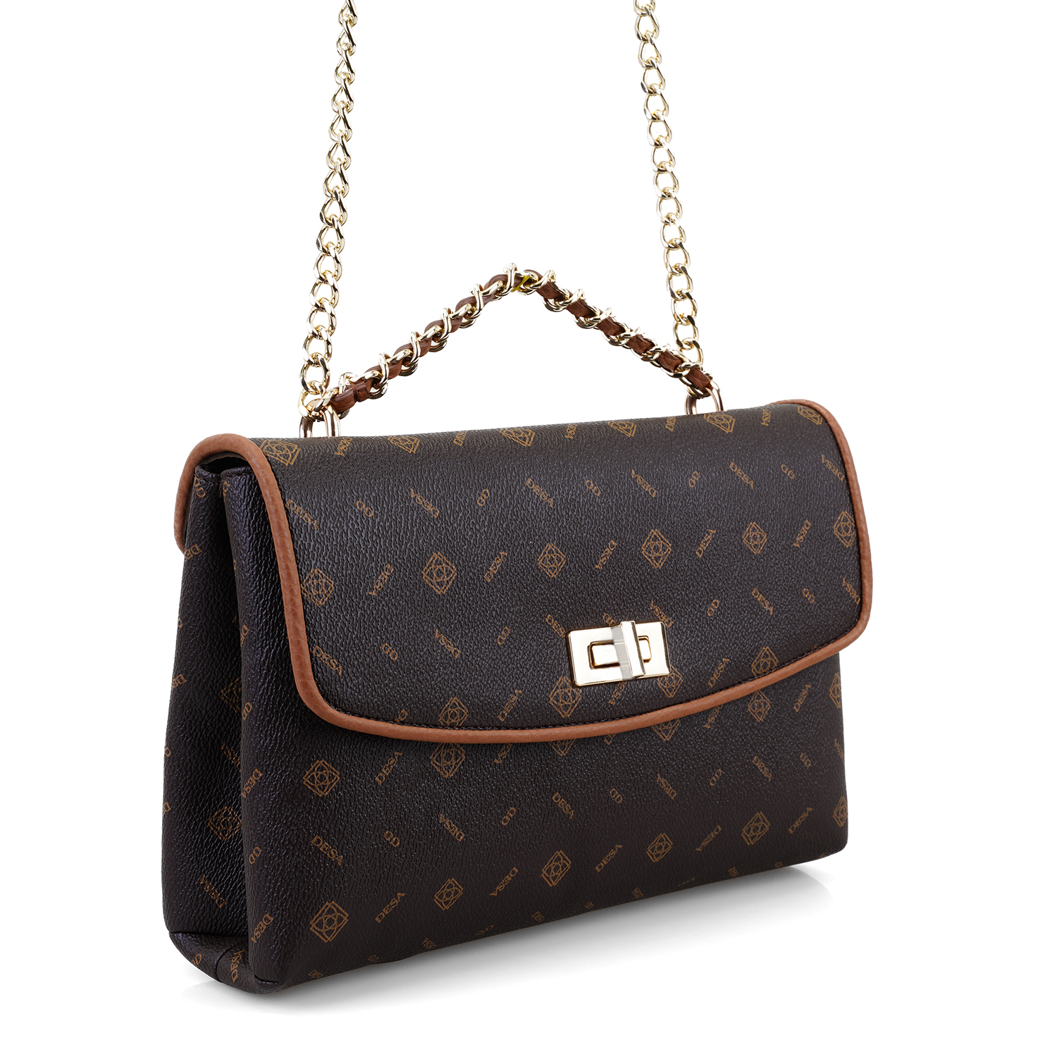 Kyle Kahve Kadın Monogram Deri Omuz Çantası