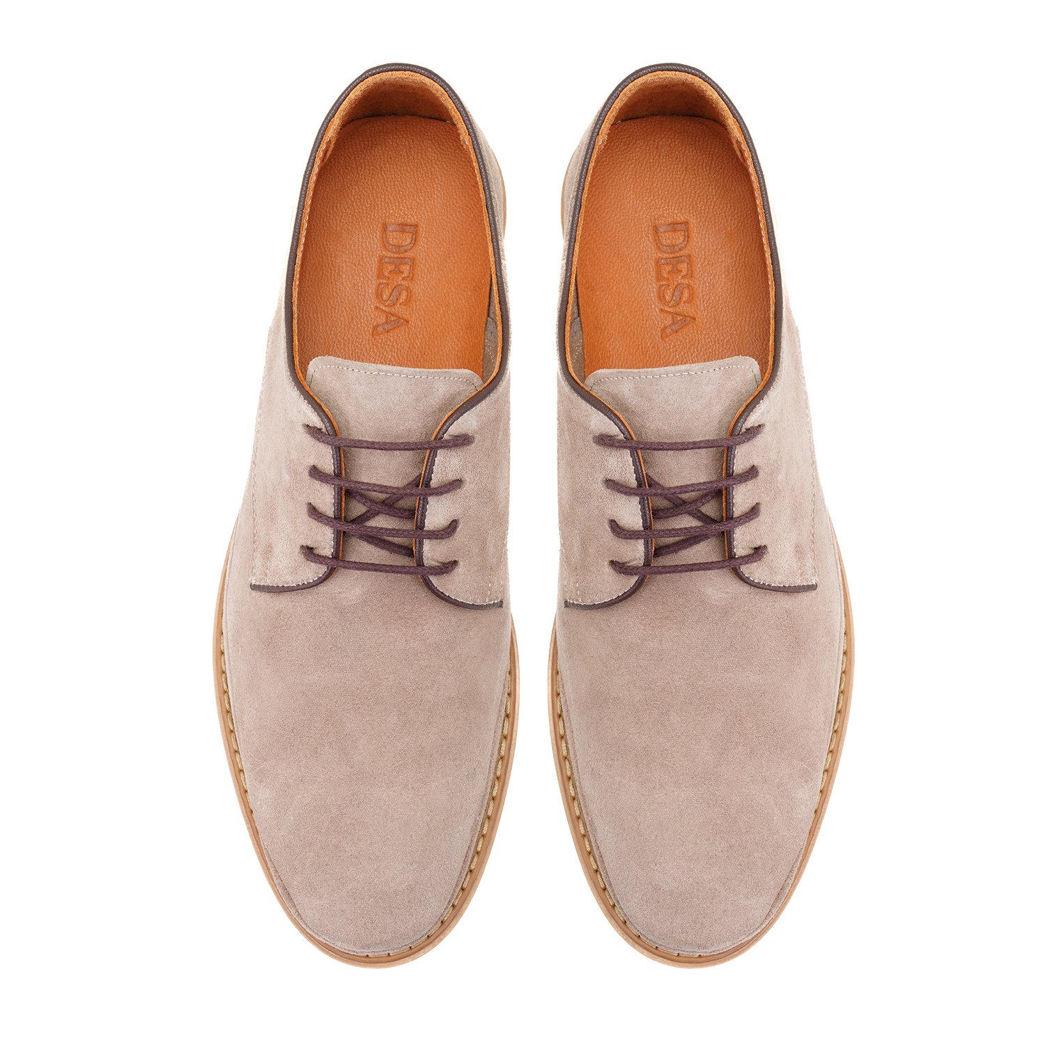 %100 süet deri, deri iç tabanlı, deri iç astarlı, pu tabanlı, bağcıklı erkek ayakkabı.