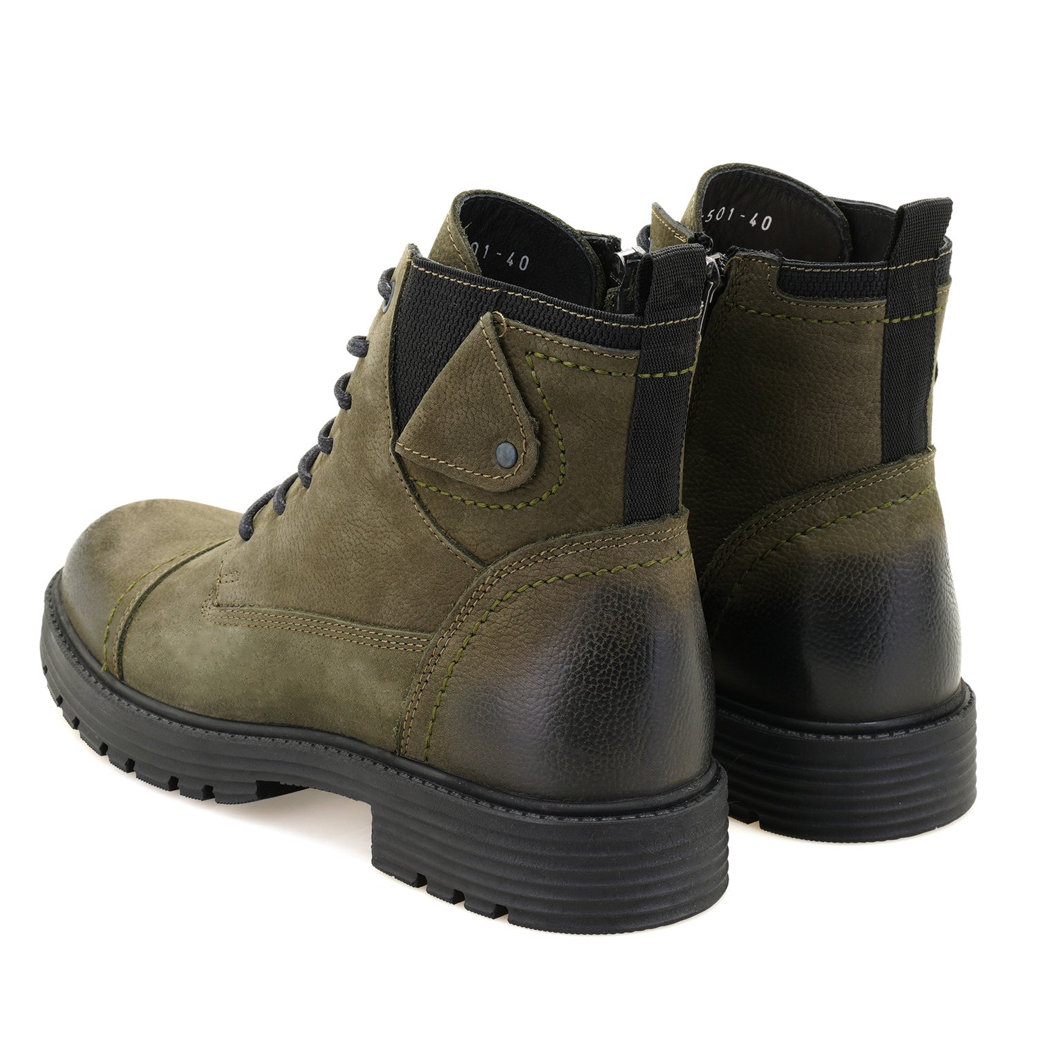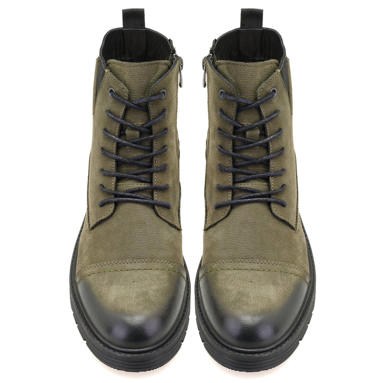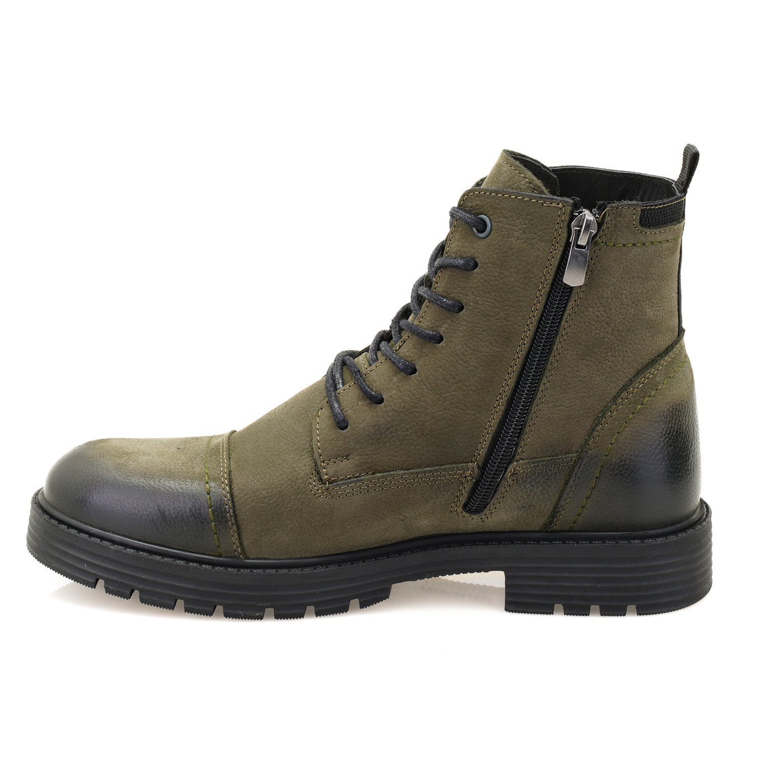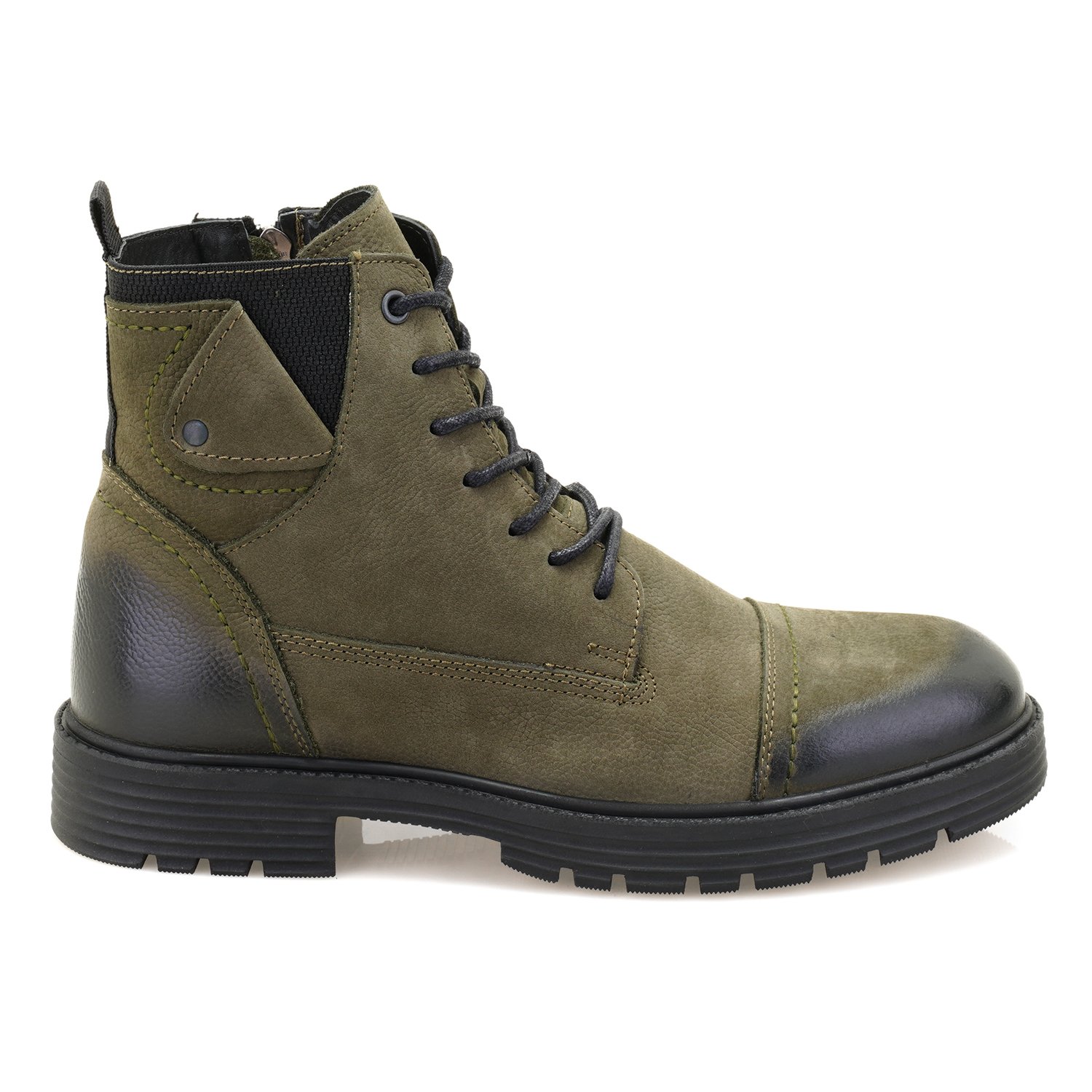 %100 nubuk deri, deri iç tabanlı, tekstil astarlı, kauçuk tabanlı, bağcıklı erkek bot.