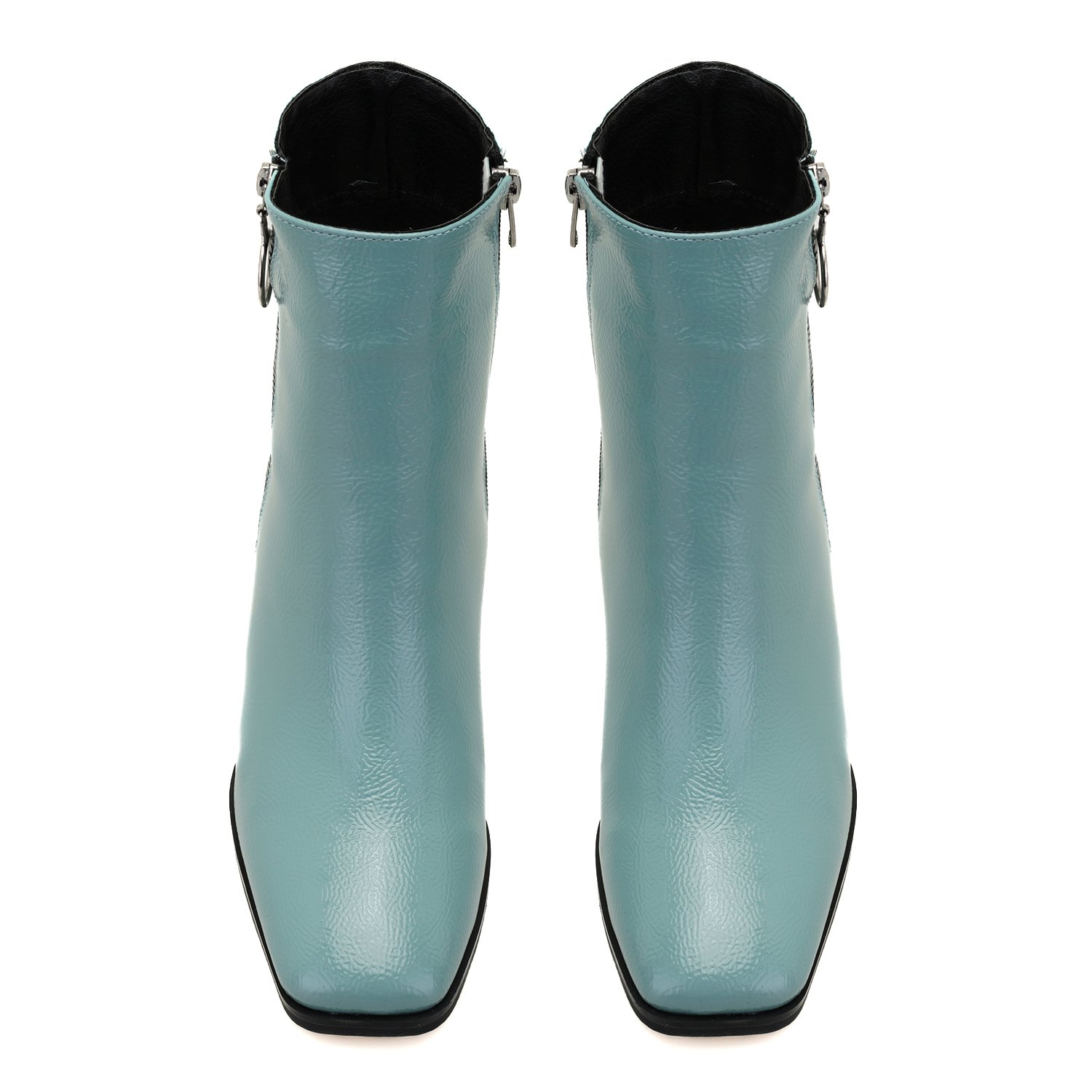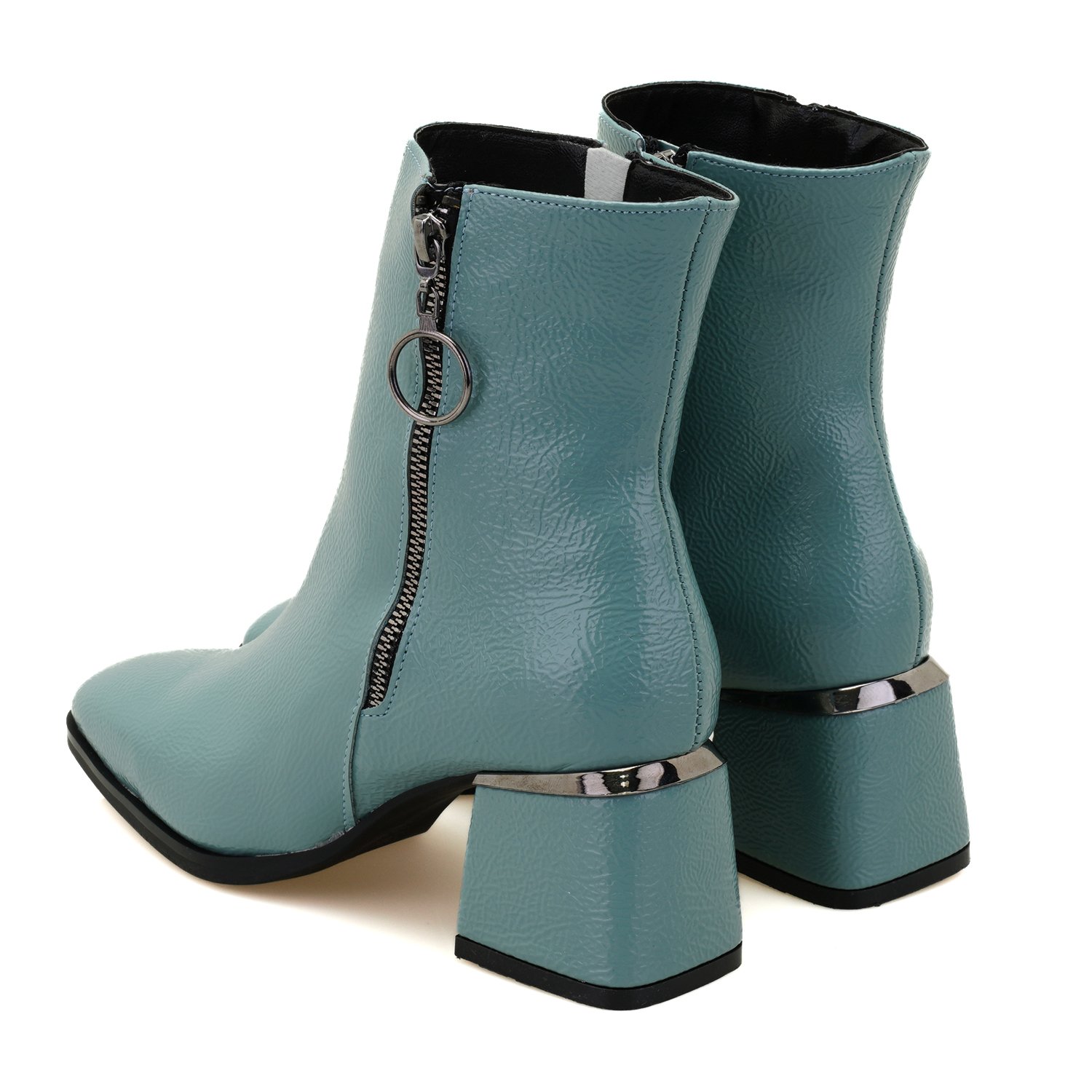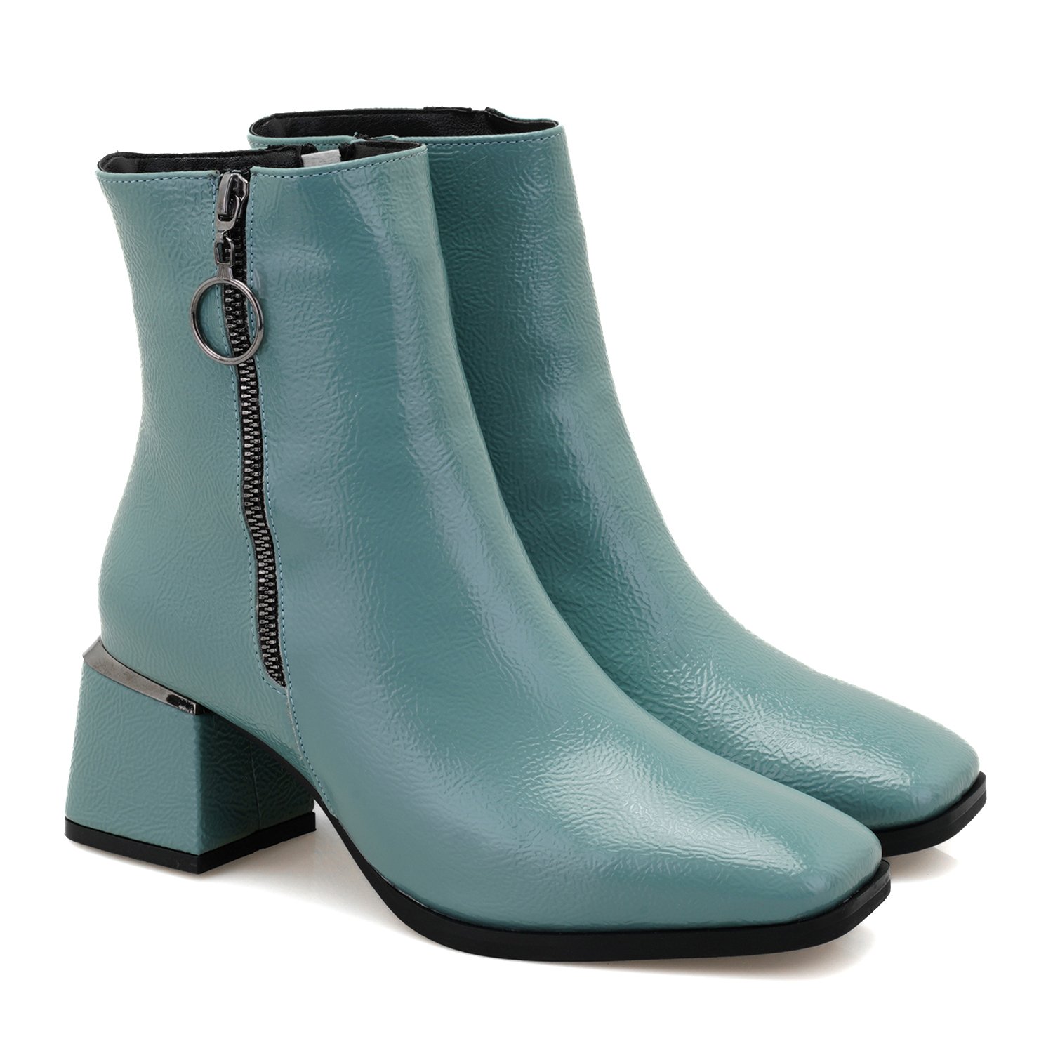 Deri iç tabanlı, tekstil iç astarlı, neolit tabanlı fermuar detaylı kadın topuklu bot.