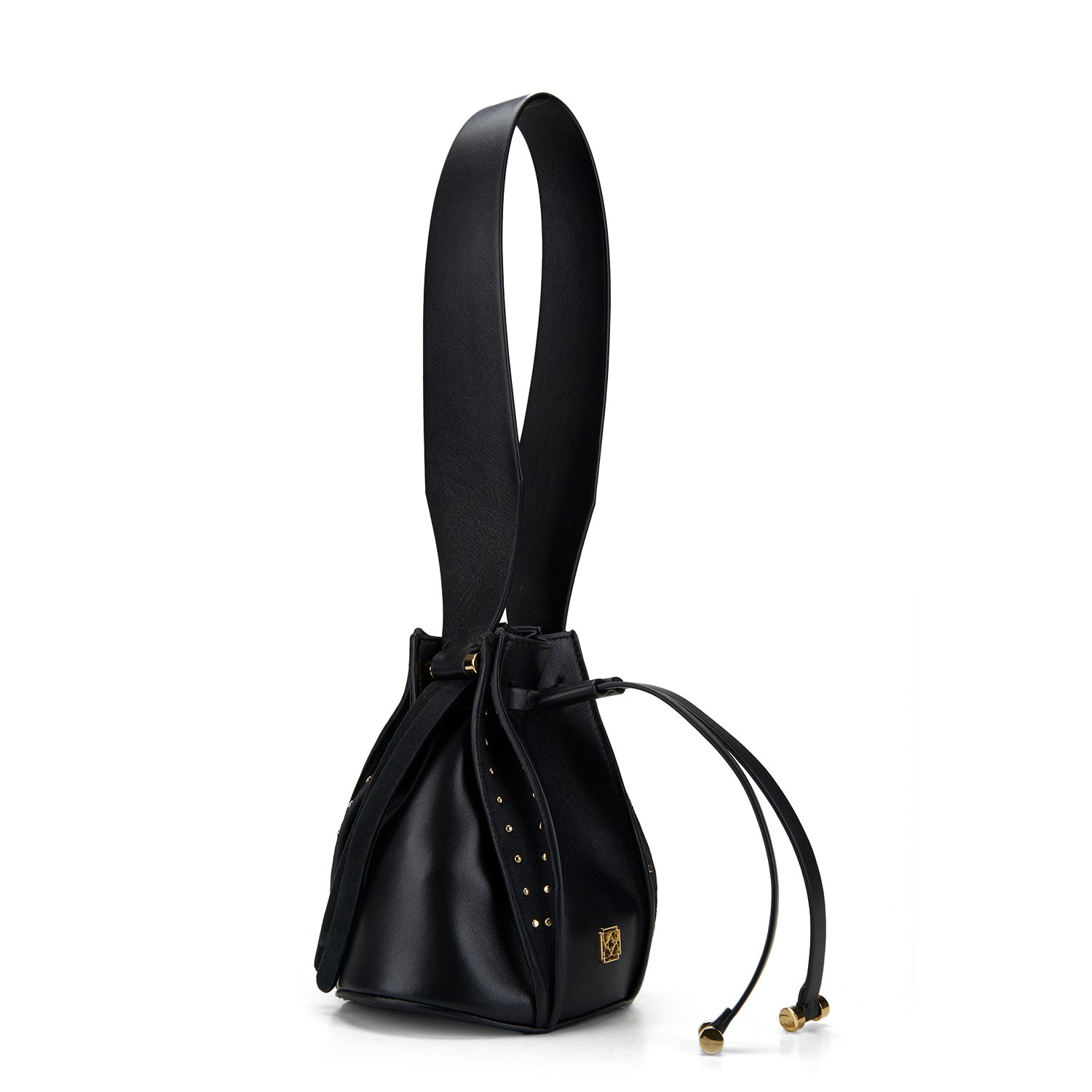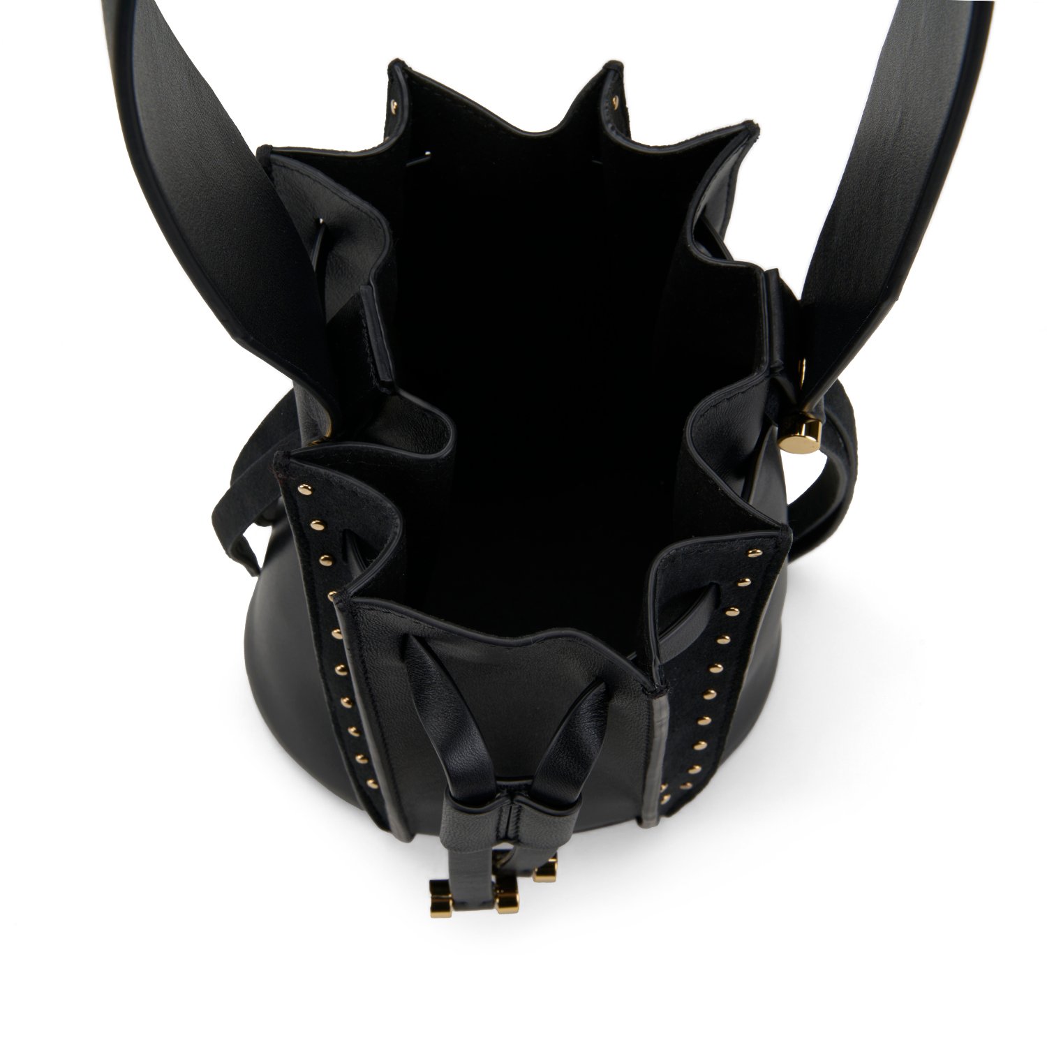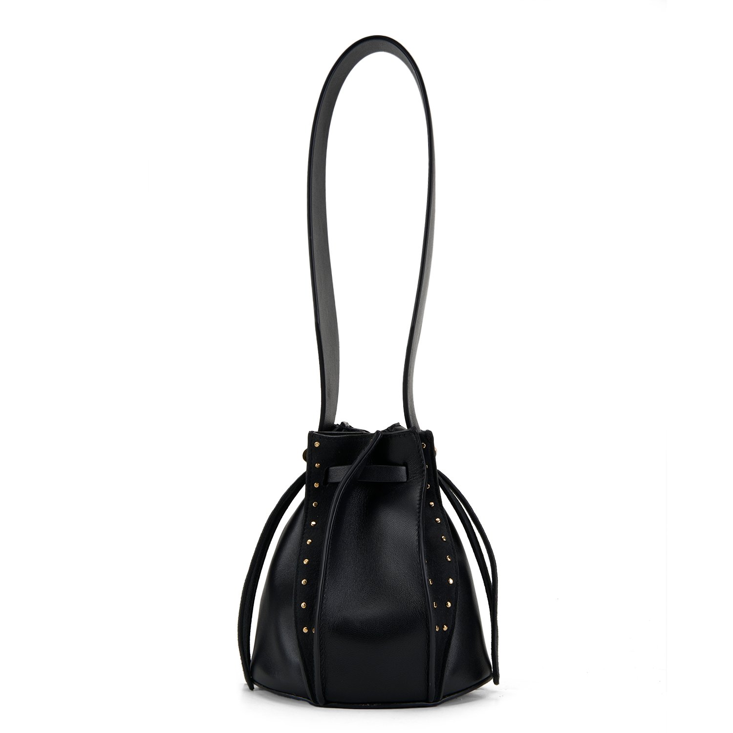 Büzgülü bir tasarıma sahip olan çantanın yan kısımlarında süet biyeler kullanılarak özel bir form kazandırılmıştır.