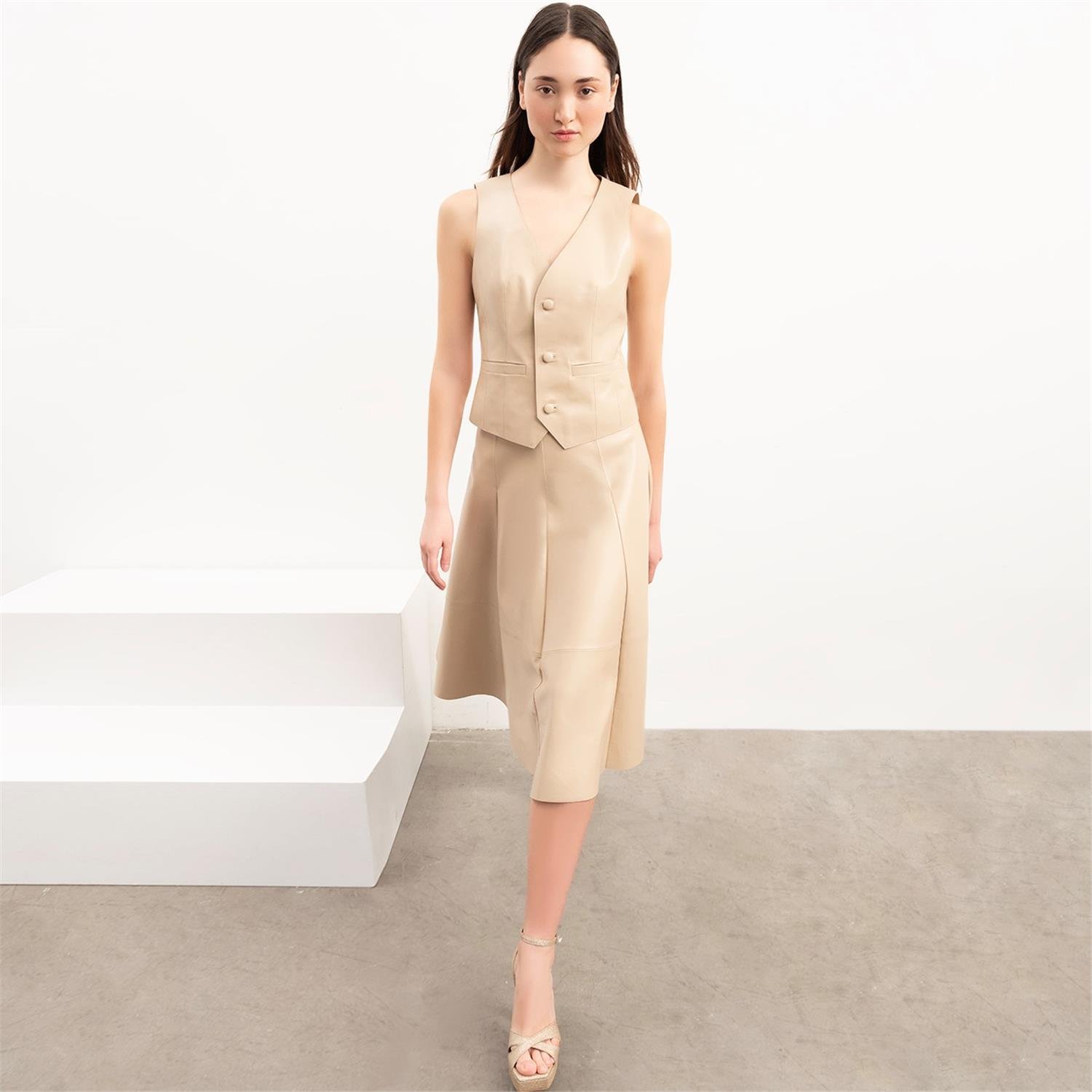 Eteğin boyu diz altı hizasında ve A formdadır.