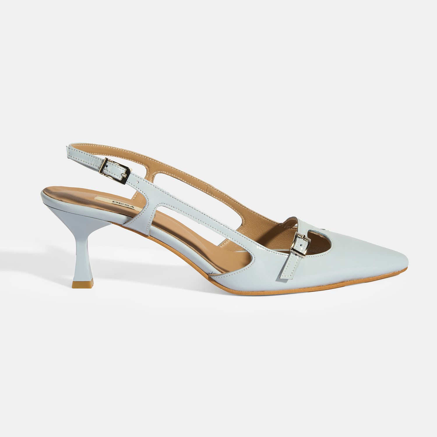 %100 rugan, deri iç tabanlı, deri astarlı, ayarlanabilir metal tokalı, neolit tabanlı, topuklu kadın ayakkabı.