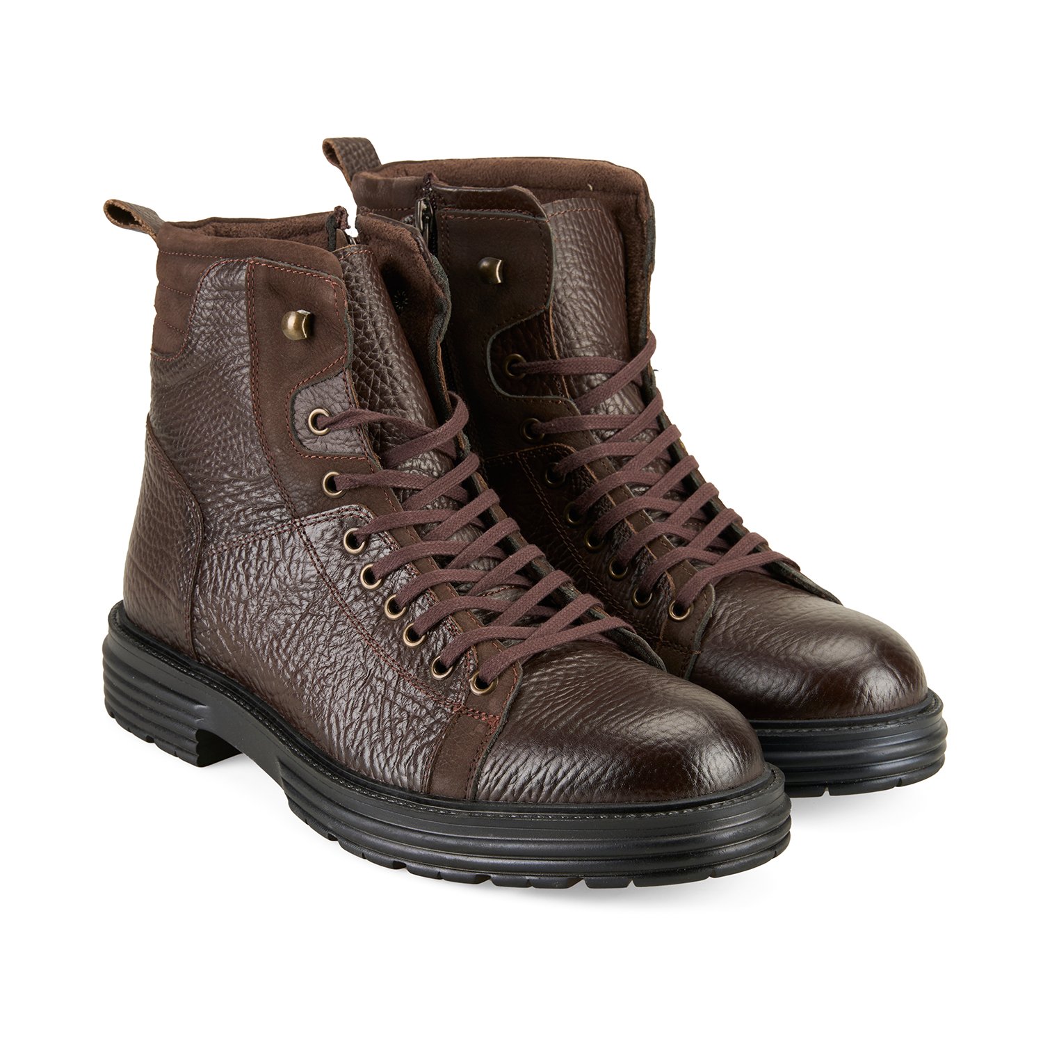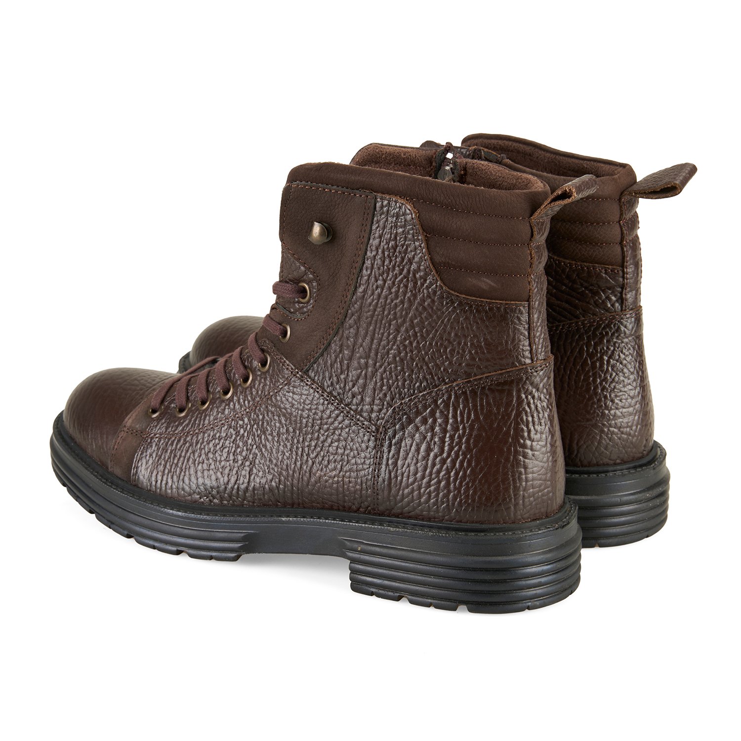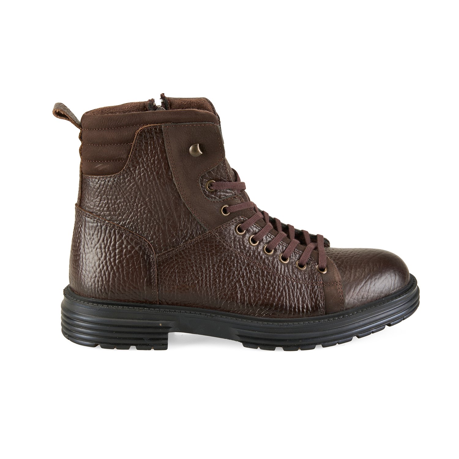 %100 deri, deri iç tabanlı, tekstil astarlı, kauçuk tabanlı, içten fermuarlı erkek bağcıklı postal.