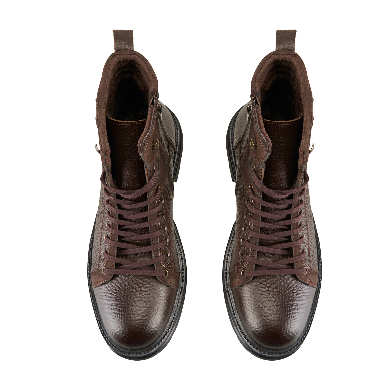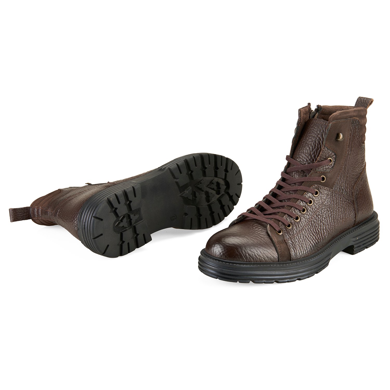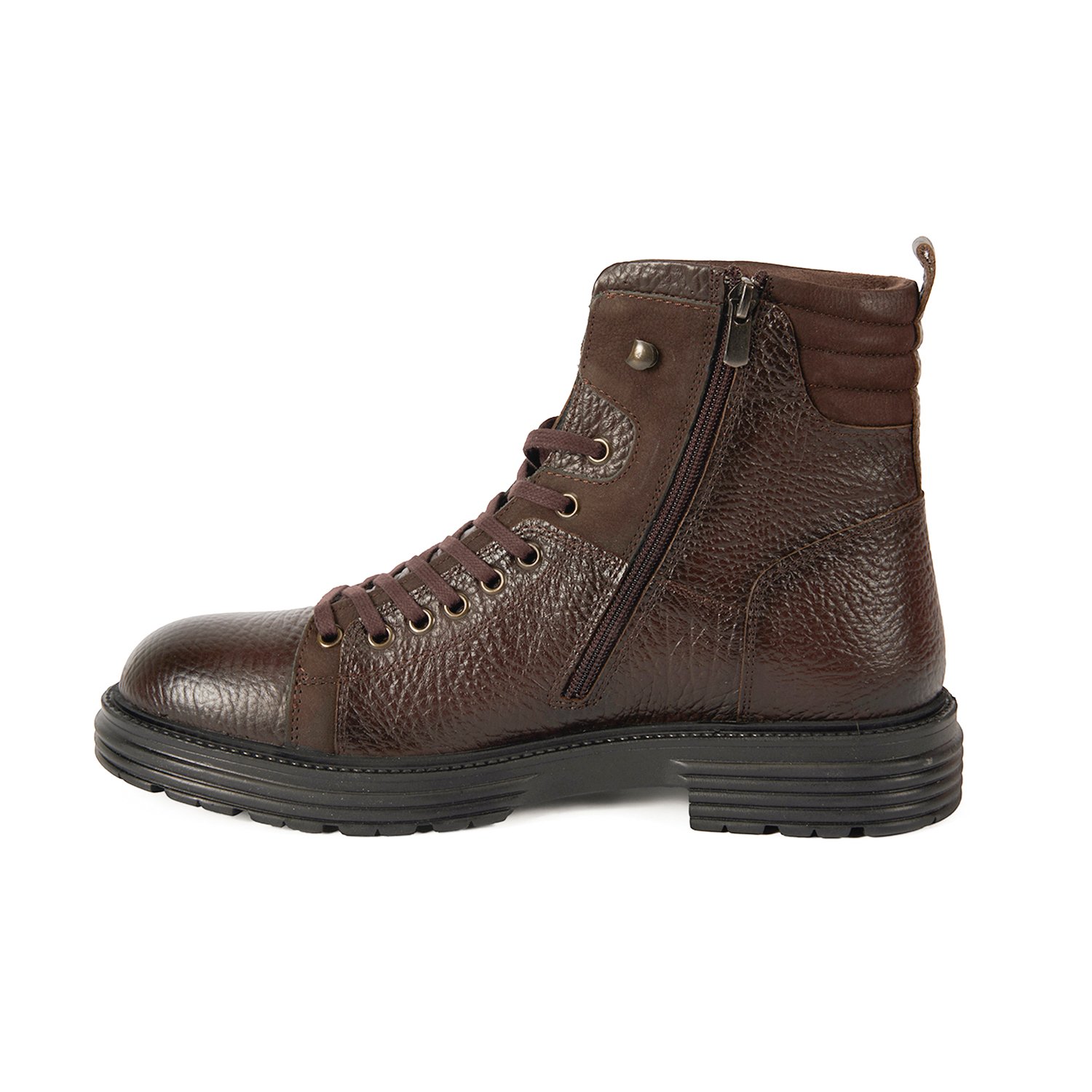 %100 deri, deri iç tabanlı, tekstil astarlı, kauçuk tabanlı, içten fermuarlı erkek bağcıklı postal.