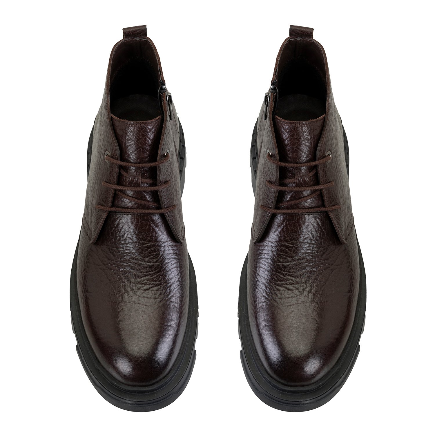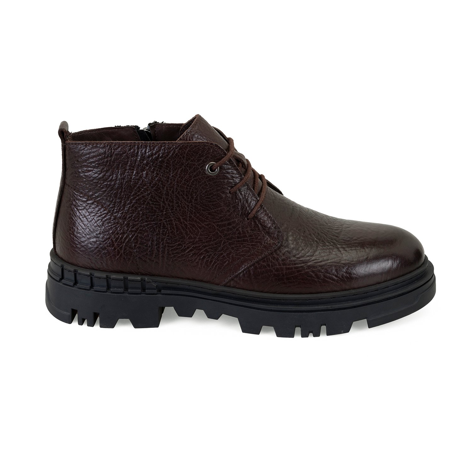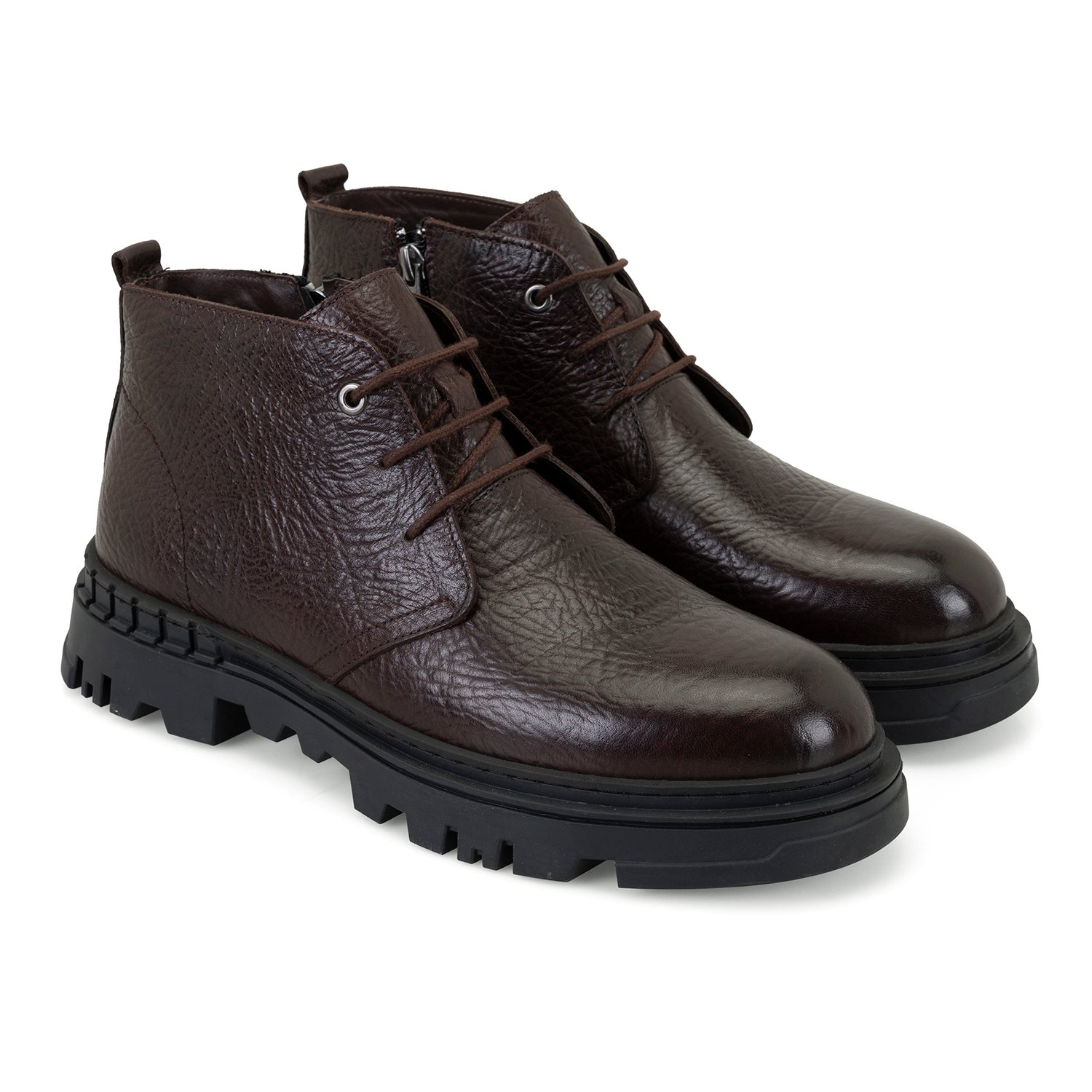 %100 deri, deri iç tabanlı, tekstil astarlı, termo tabanlı, bağcıklı erkek bot.