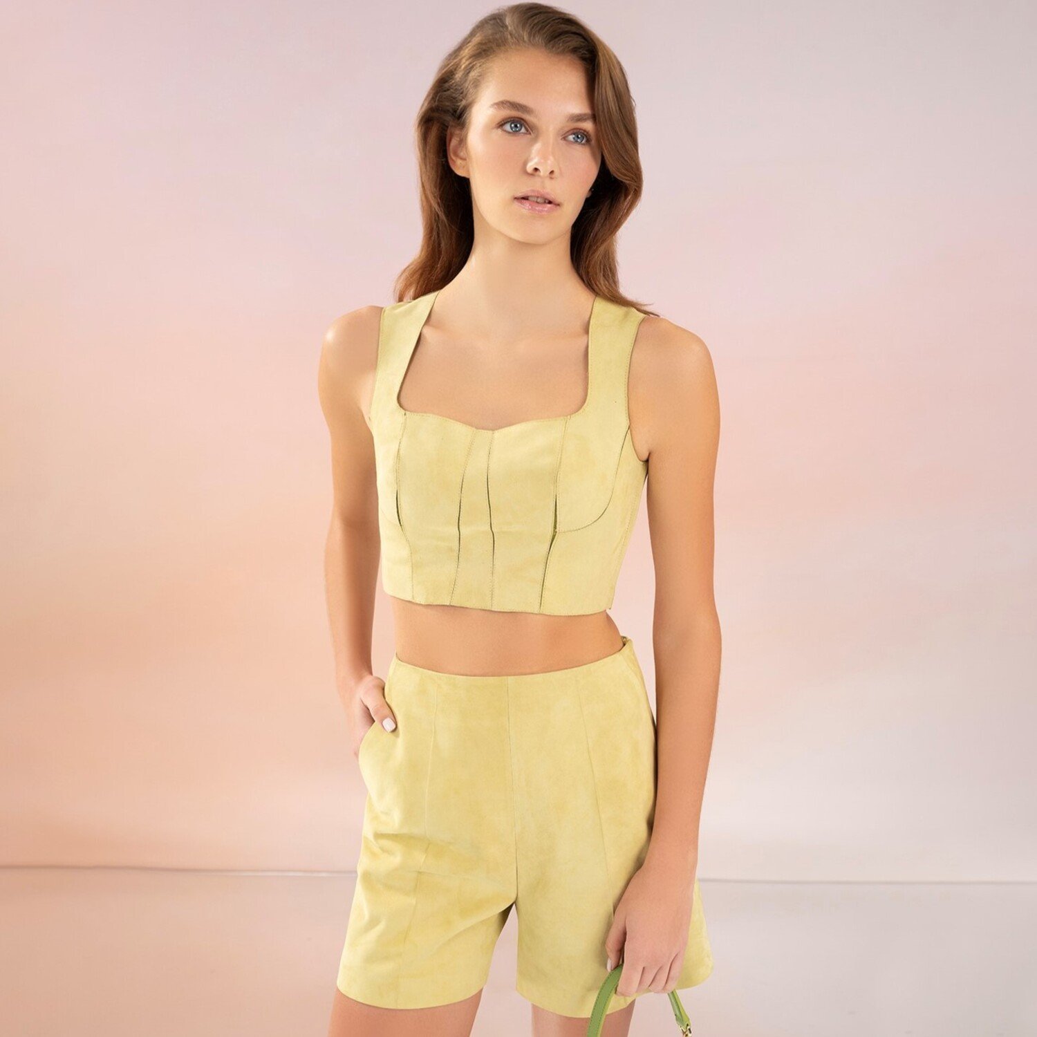 Kare yaka kalın askılı süet korse bustiyer.