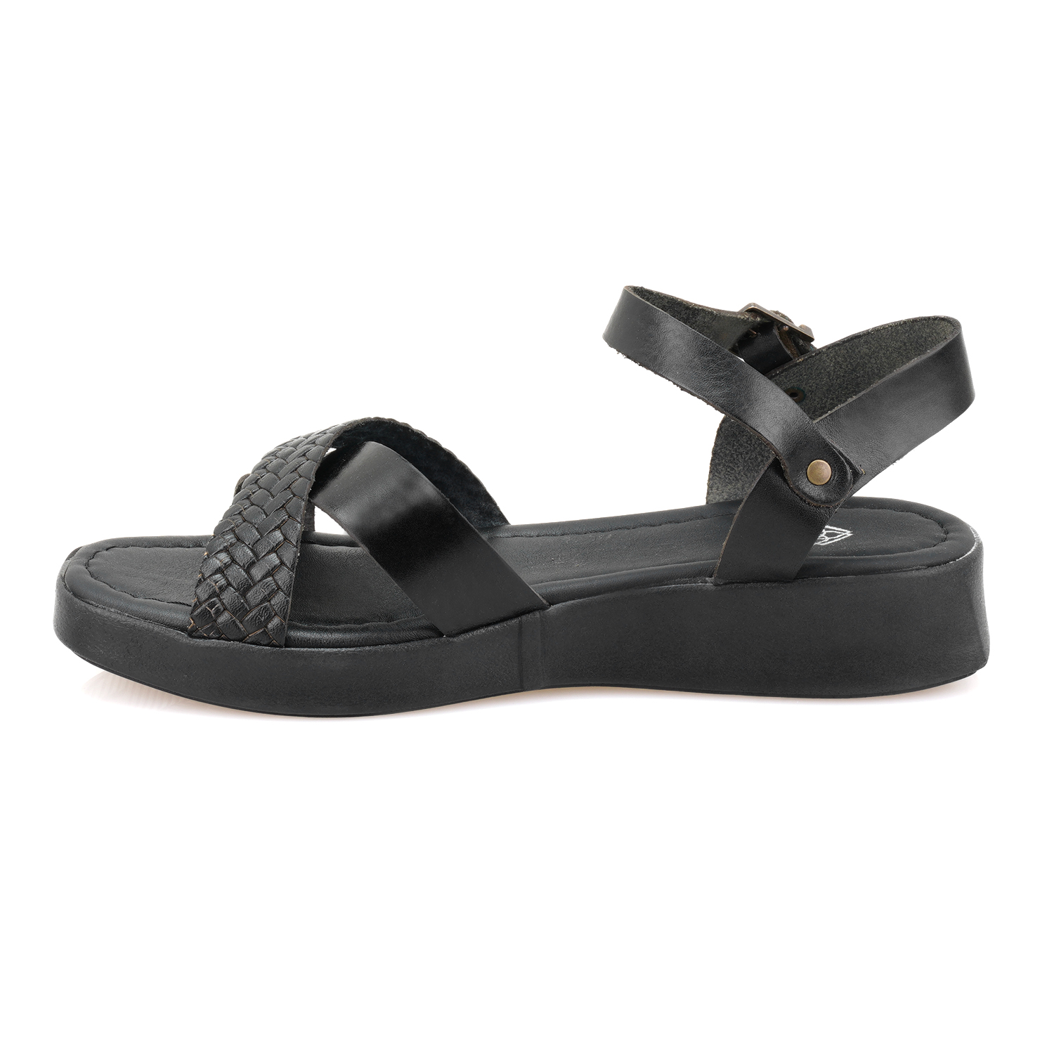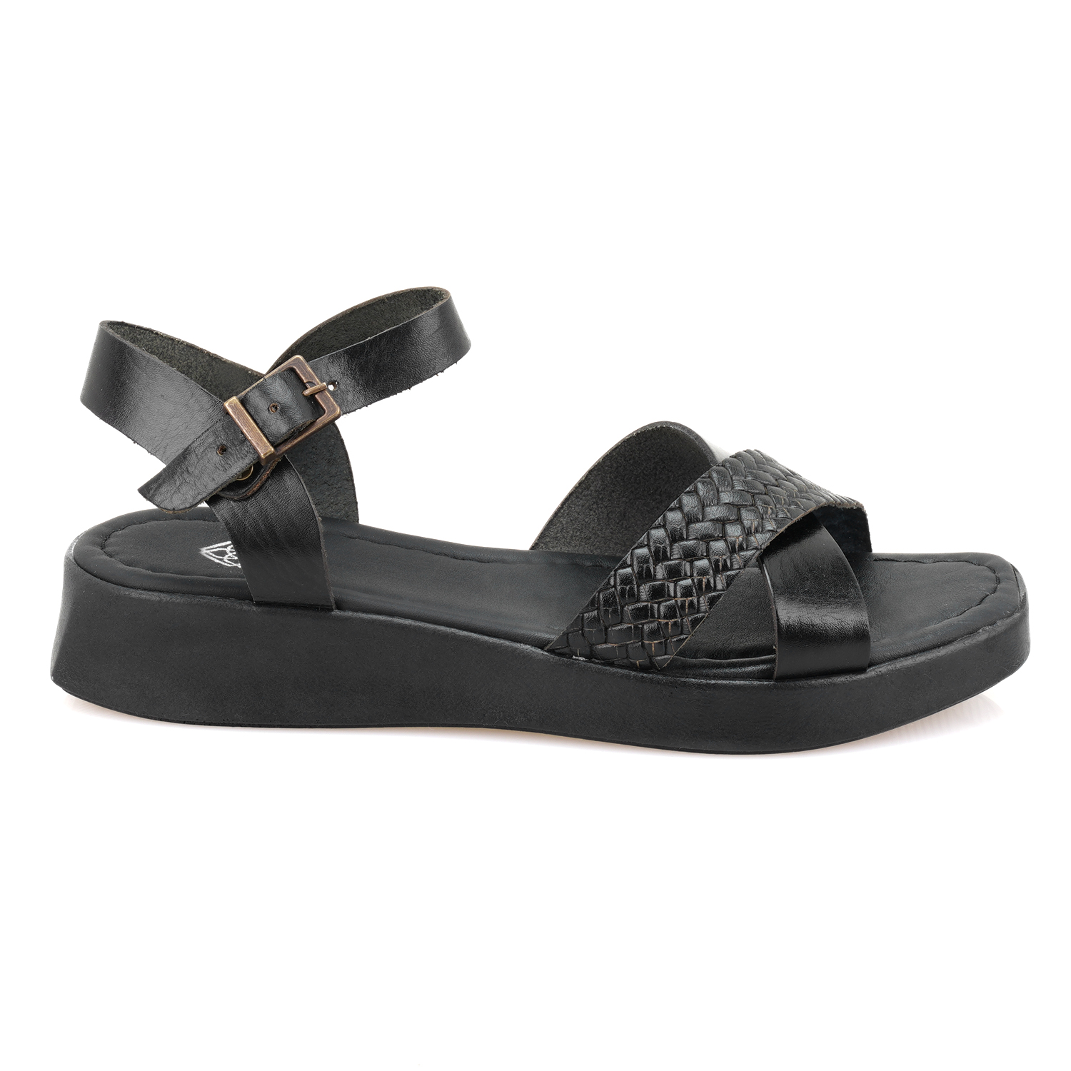 Vaketa deri&baskılı deri,ayarlanabilir metal aksesuarlı,esnek ve hafif poliüretan tabanlı kadın sandalet.