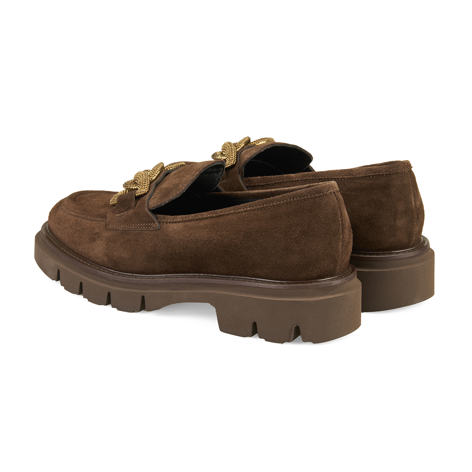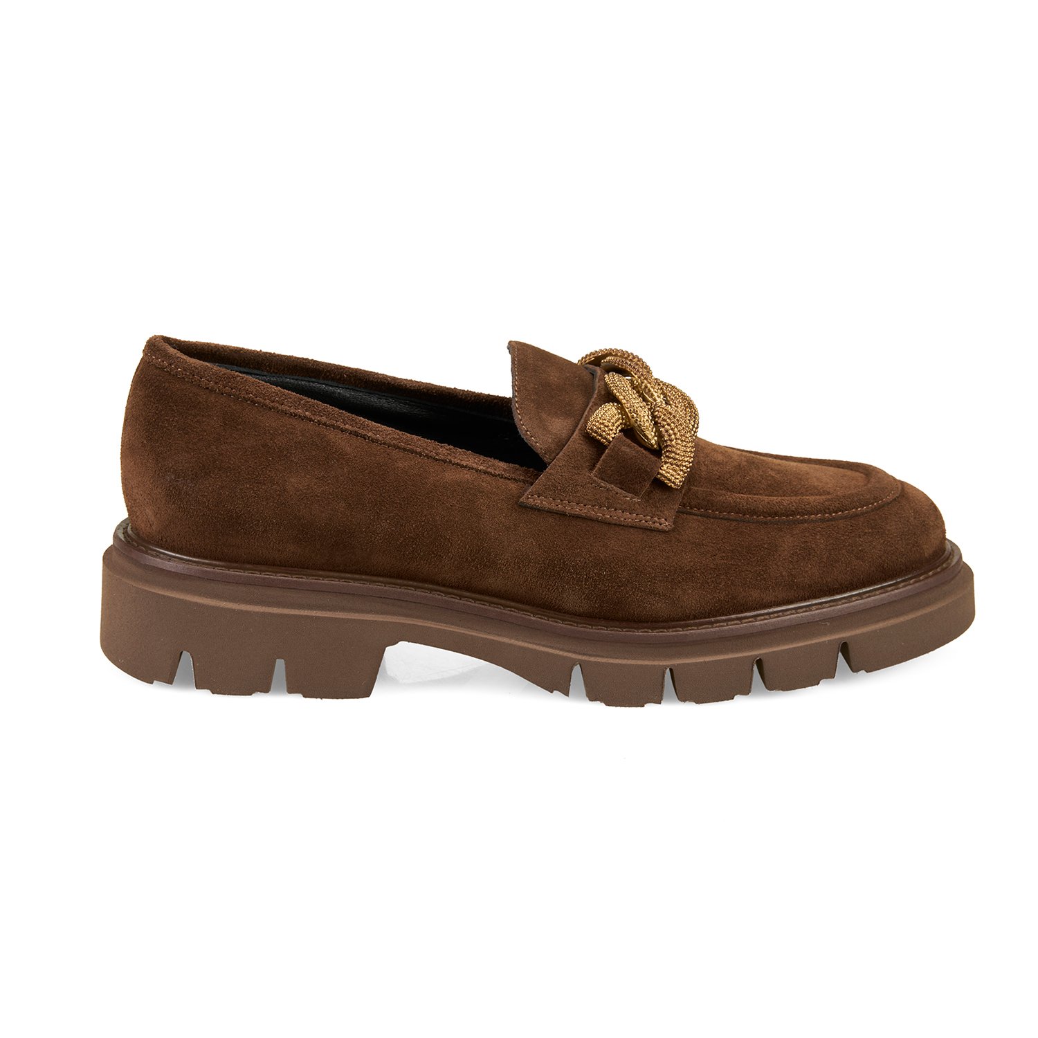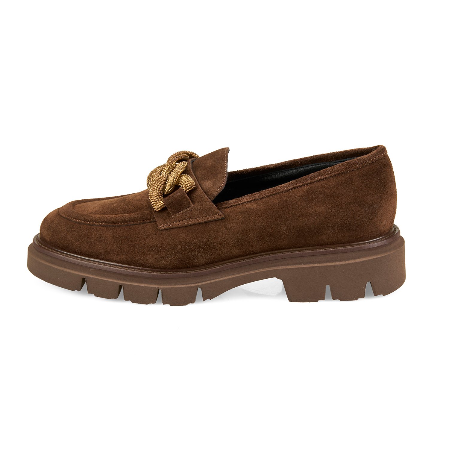 %100 süet deri, deri iç tabanlı, deri astarlı, metal aksesuar detaylı, eva tabanlı kadın loafer.