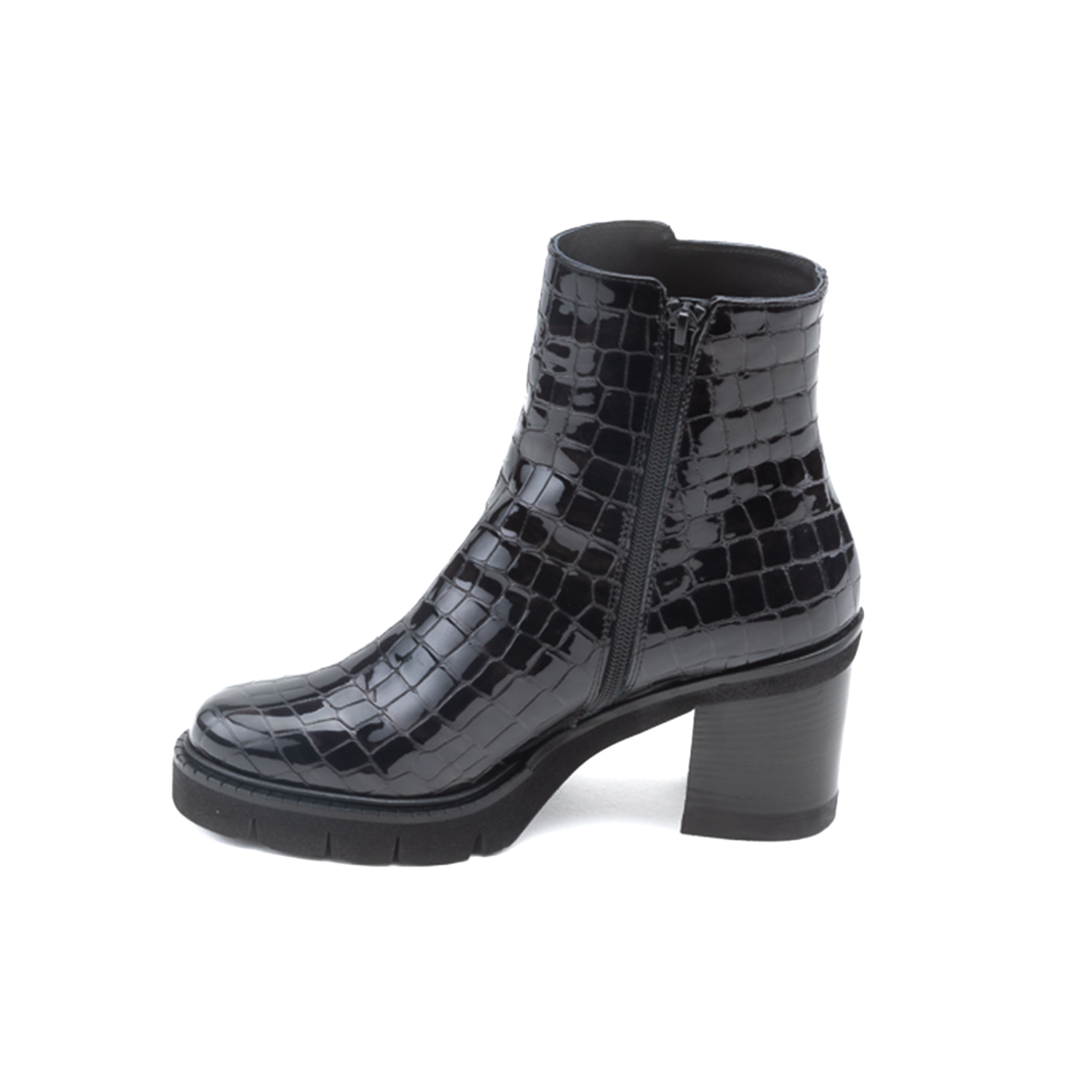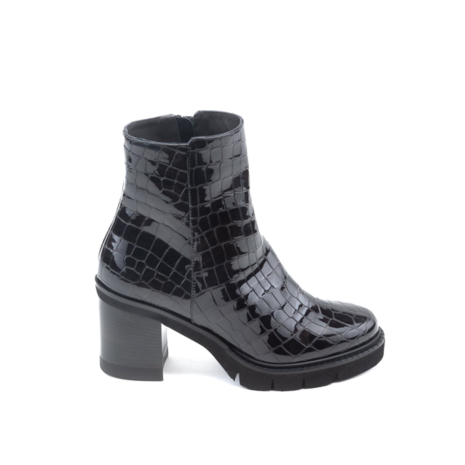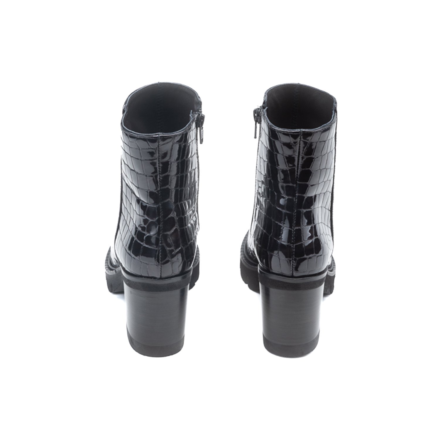 Fermuarlı, kroko baskılı, topuklu kadın bot.