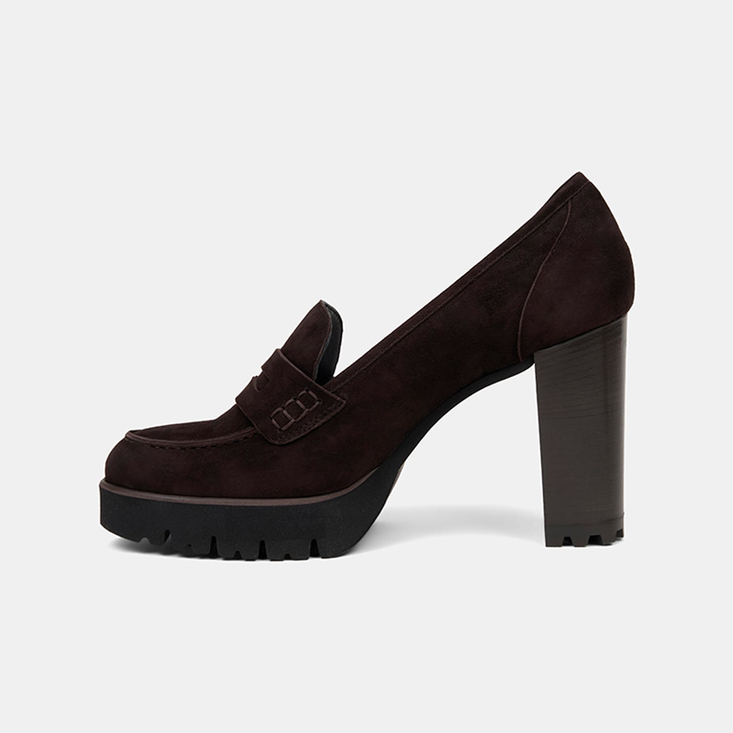 Modern ve iddialı bir siluet sunan kadın platform topuklu loafer.