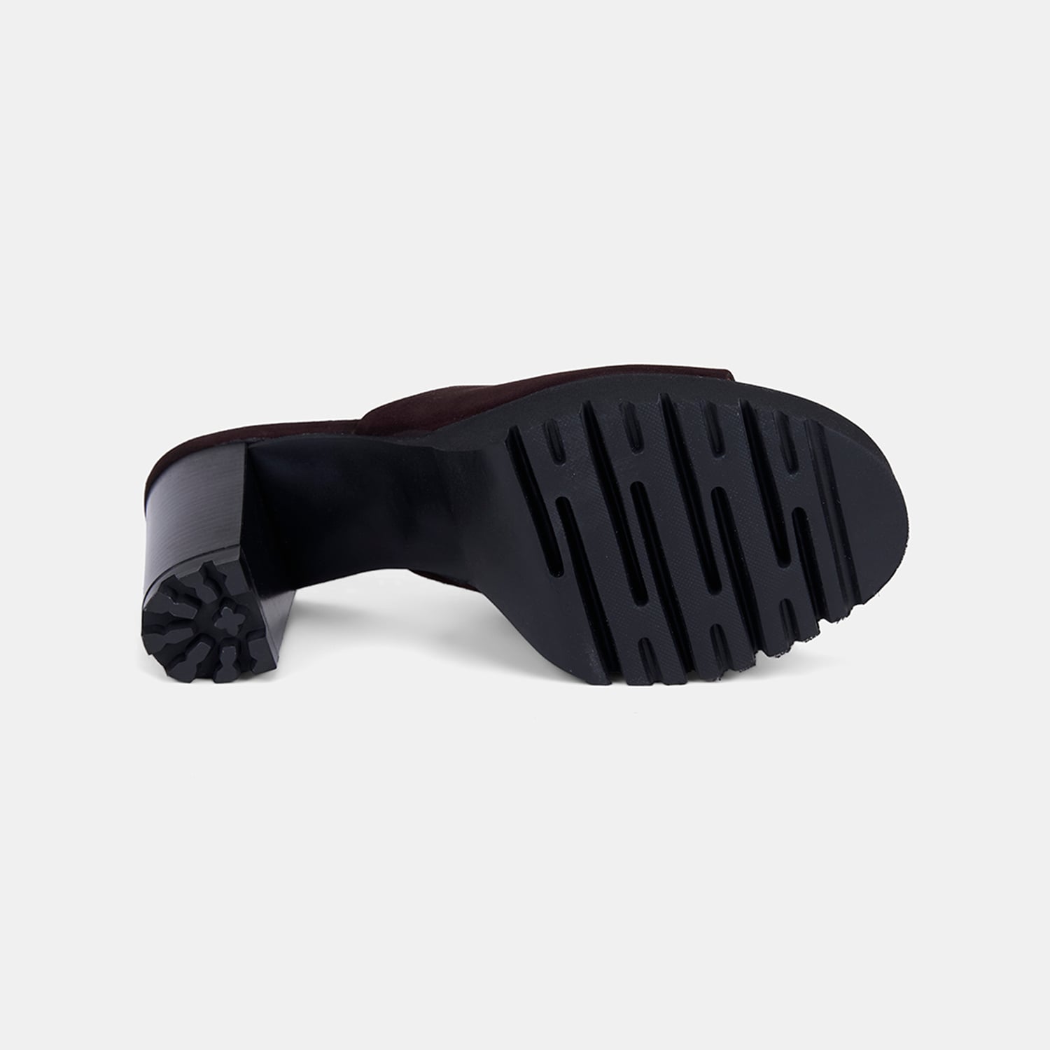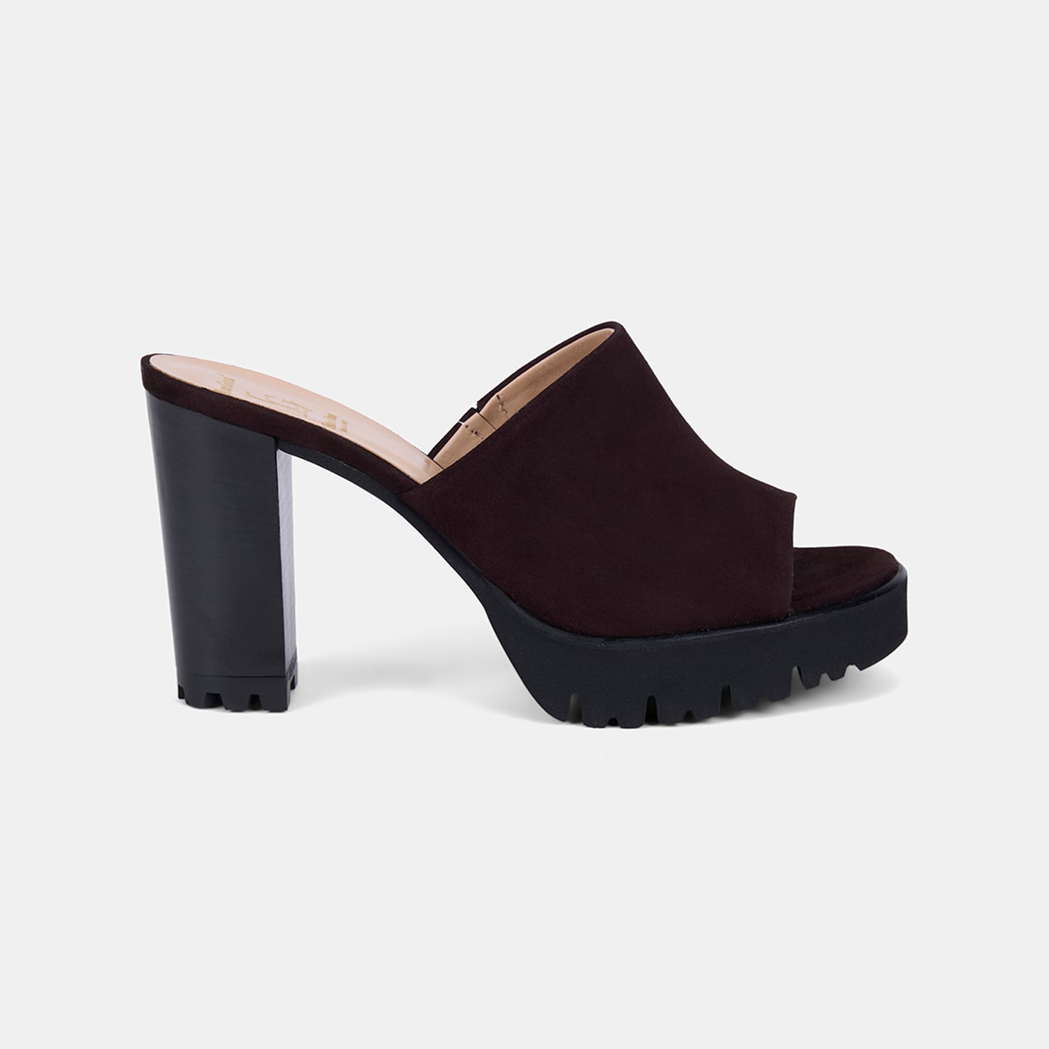 Modern ve şık bir siluet sunan kadın platform topuklu terlik.