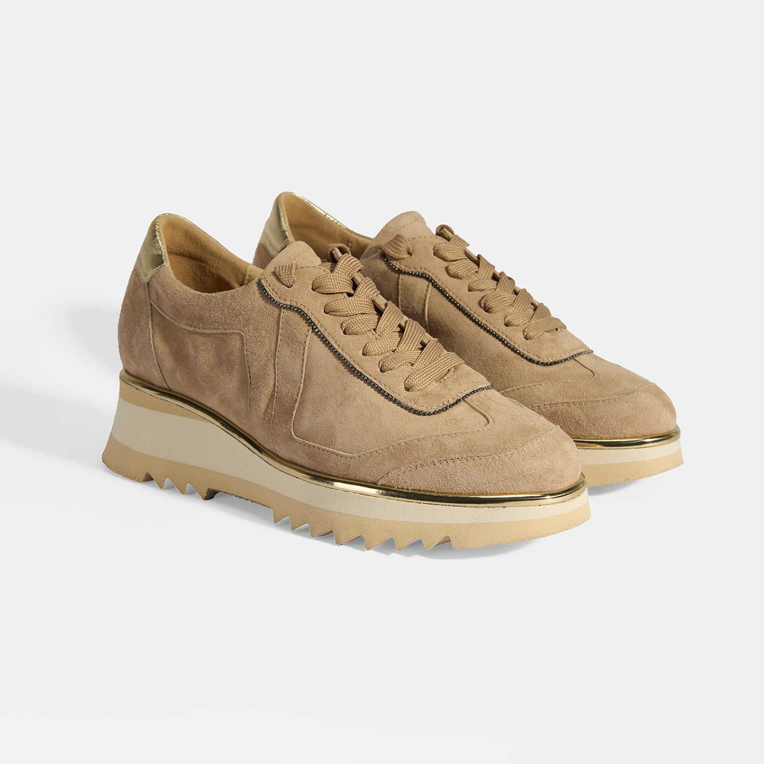 Luca Grossi Kadın Bej Bağcıklı Süet Spor Ayakkabı