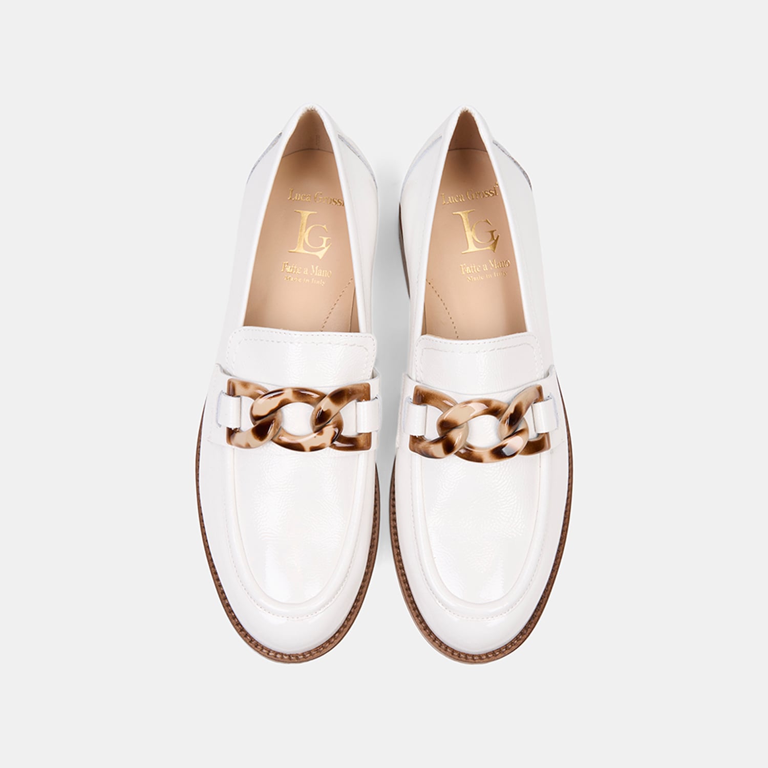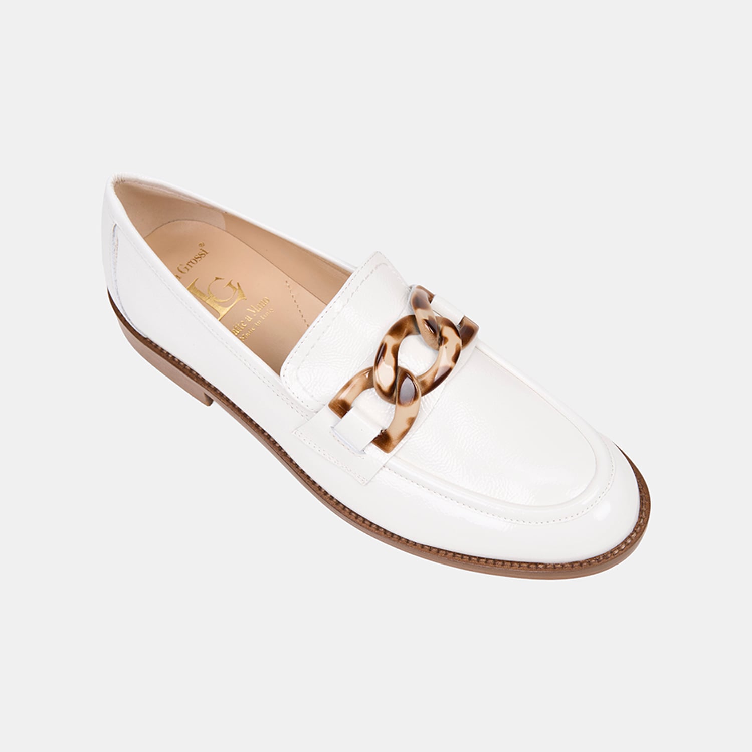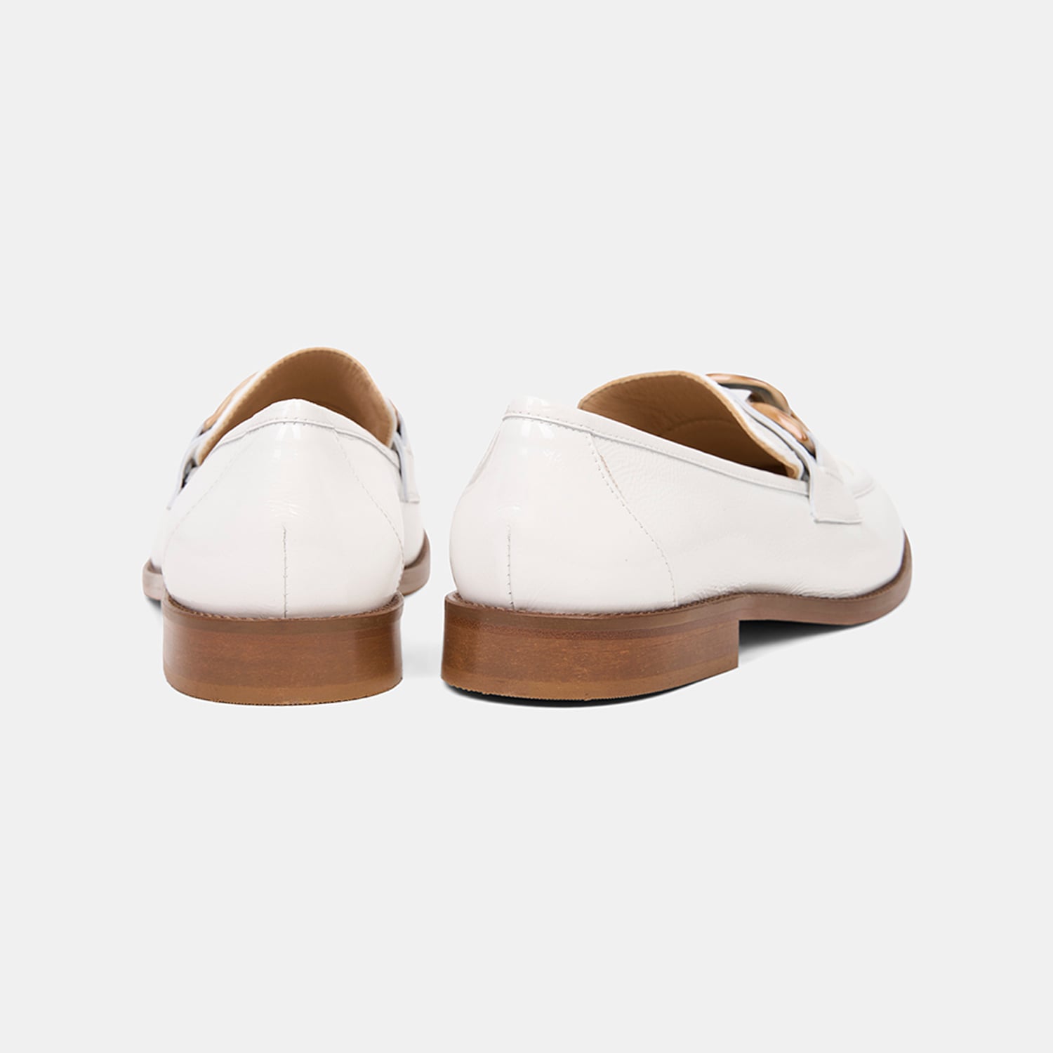 Luca Grossi Kadın Beyaz Leopar Tokalı Rugan Deri Loafer