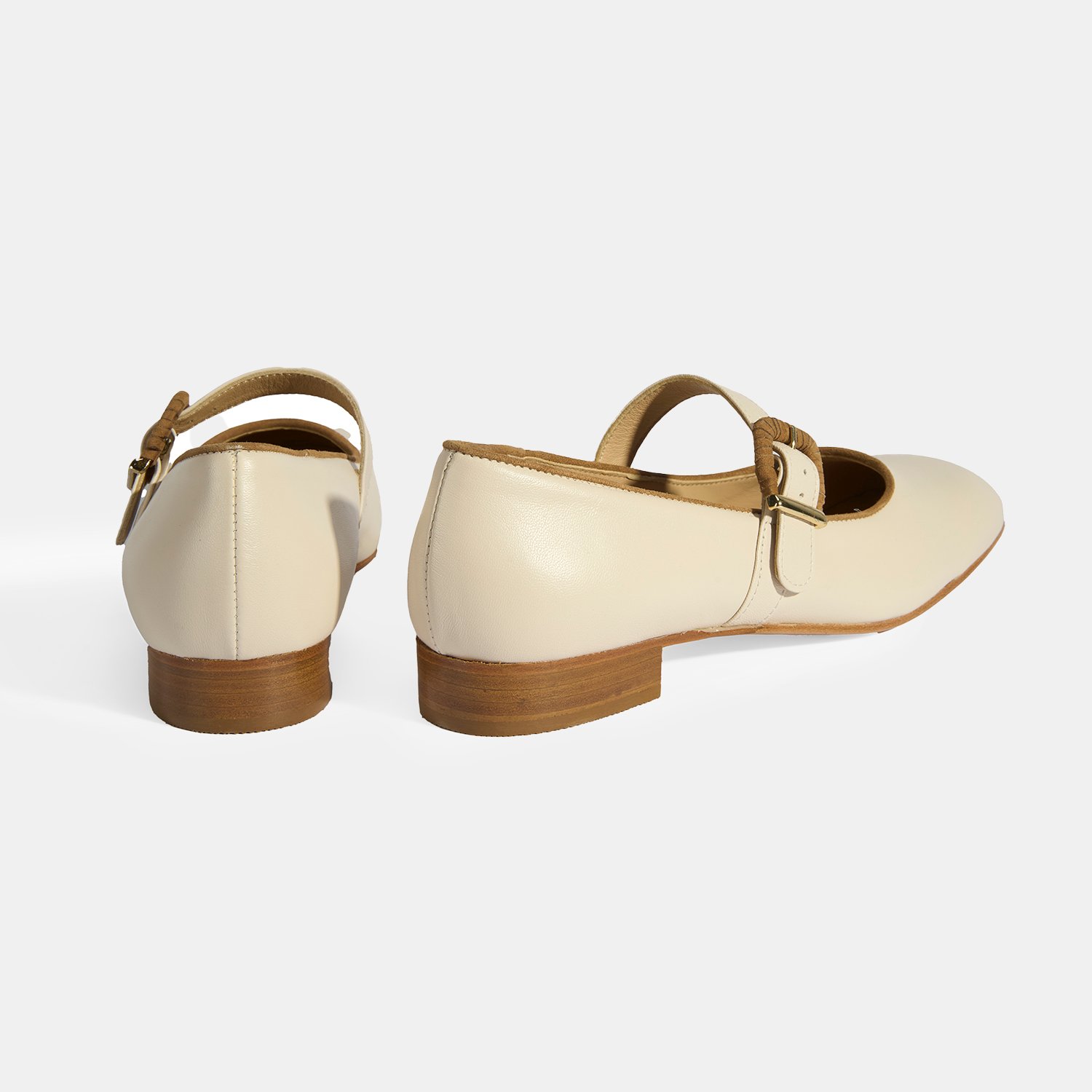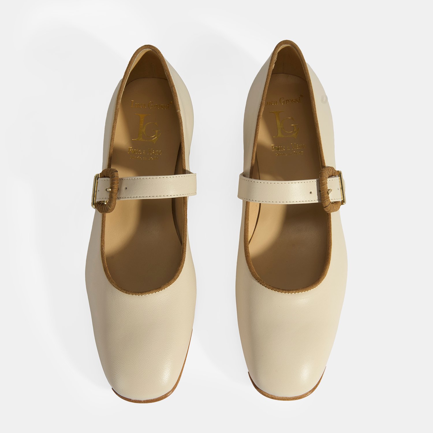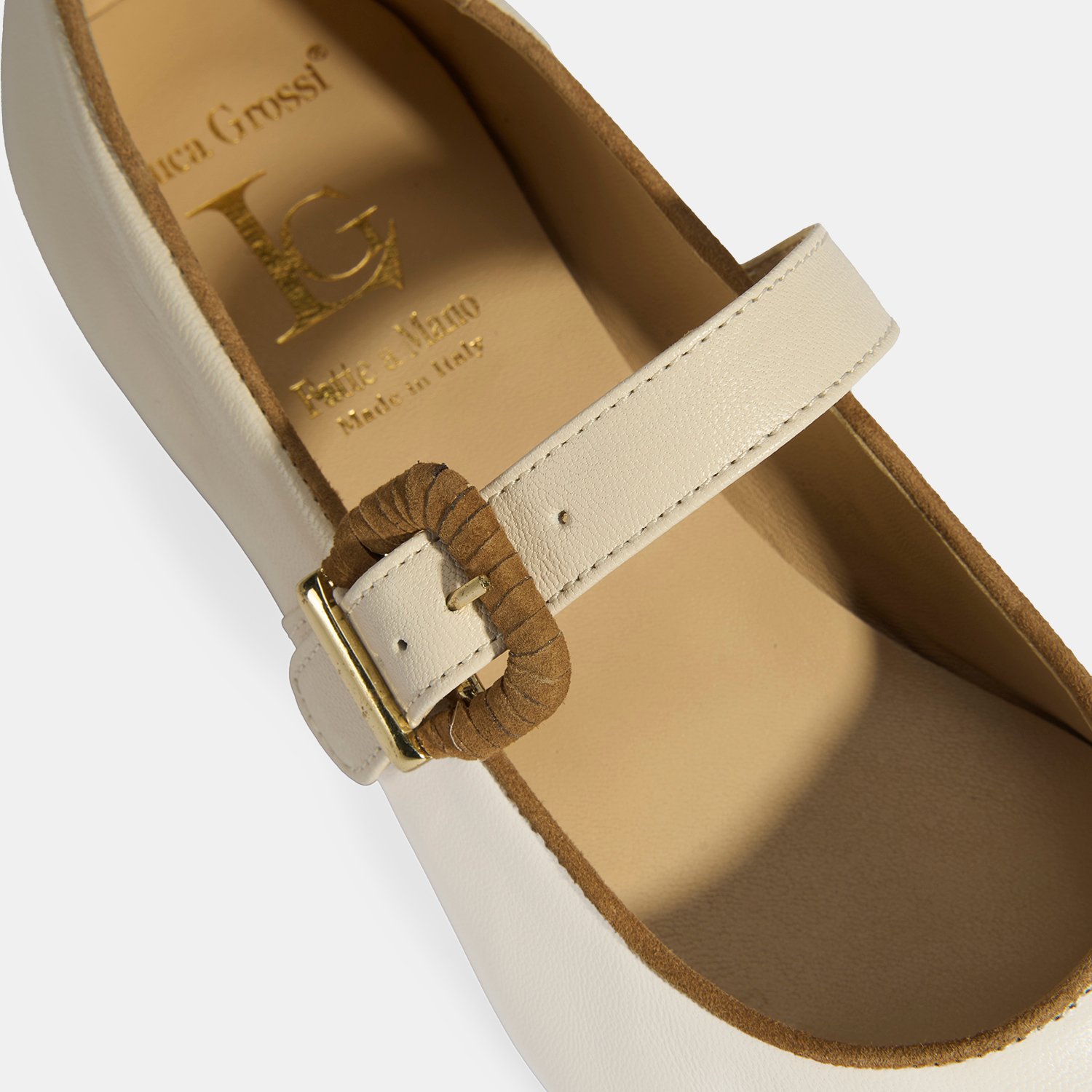 Luca Grossi Kadın Krem Toka Aksesuarlı Deri Mary Jane Babet