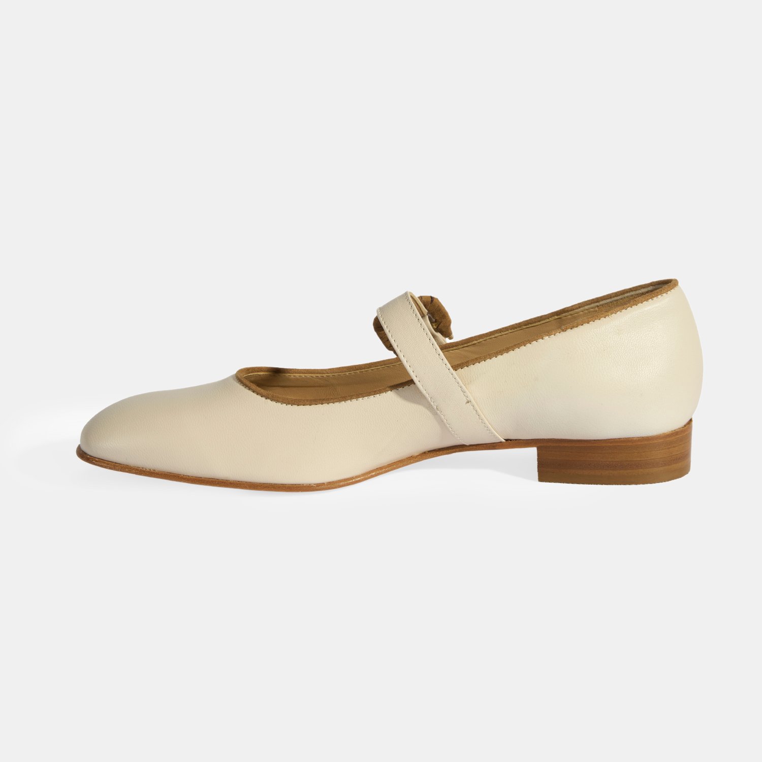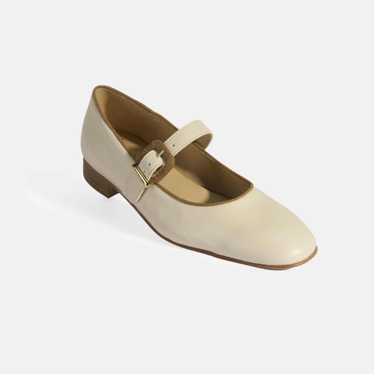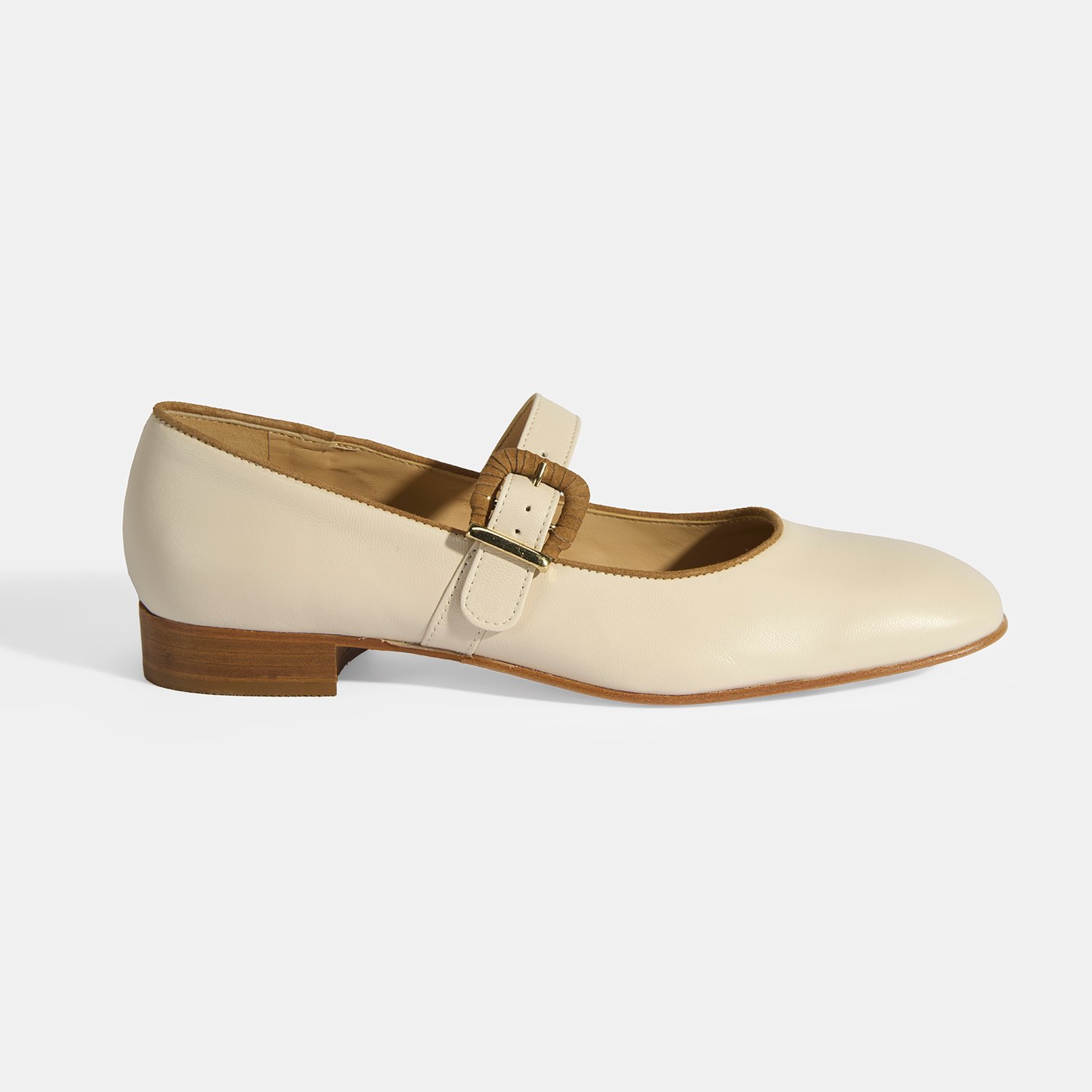 Luca Grossi Kadın Krem Toka Aksesuarlı Deri Mary Jane Babet