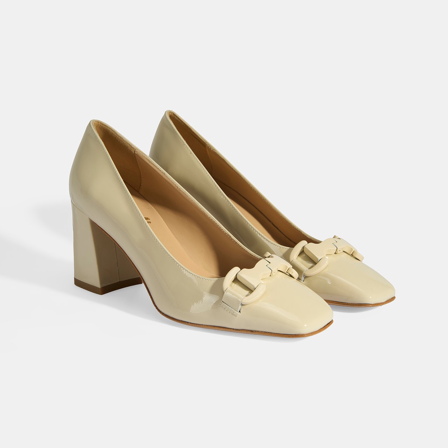 Luca Grossi Kadın Krem Toka Aksesuarlı Rugan Topuklu Ayakkabı