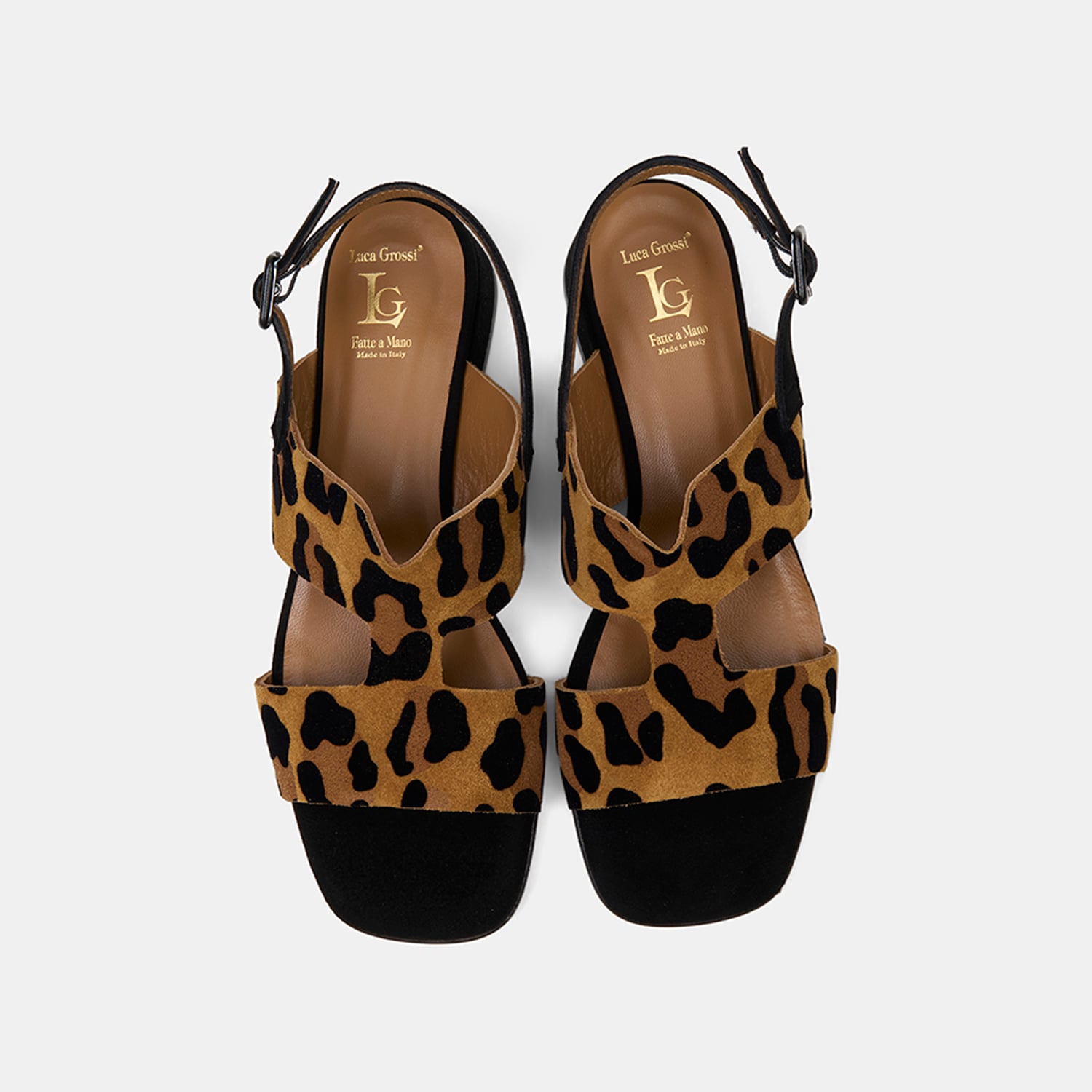 Luca Grossi Kadın Leopar Desenli Süet Deri Sandalet