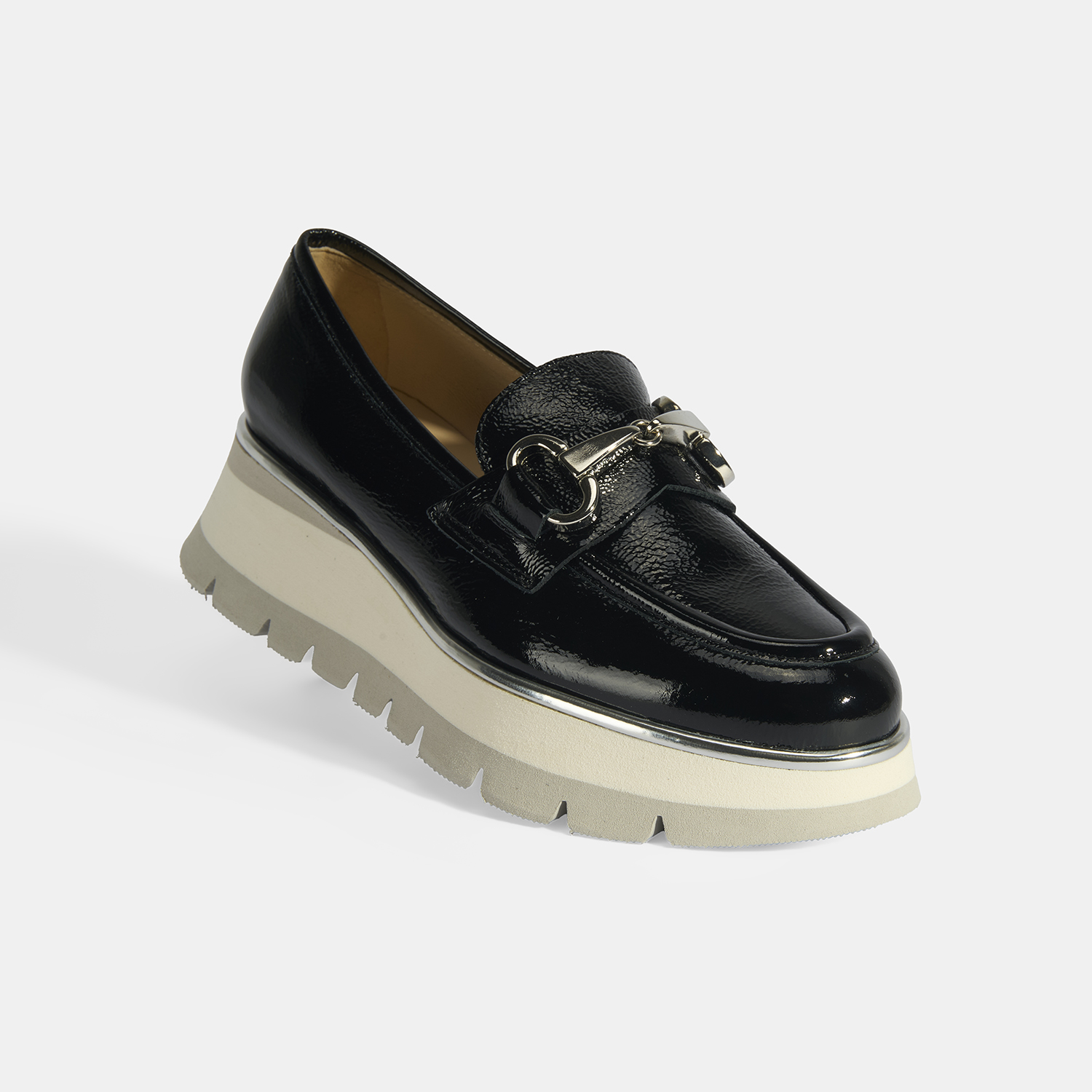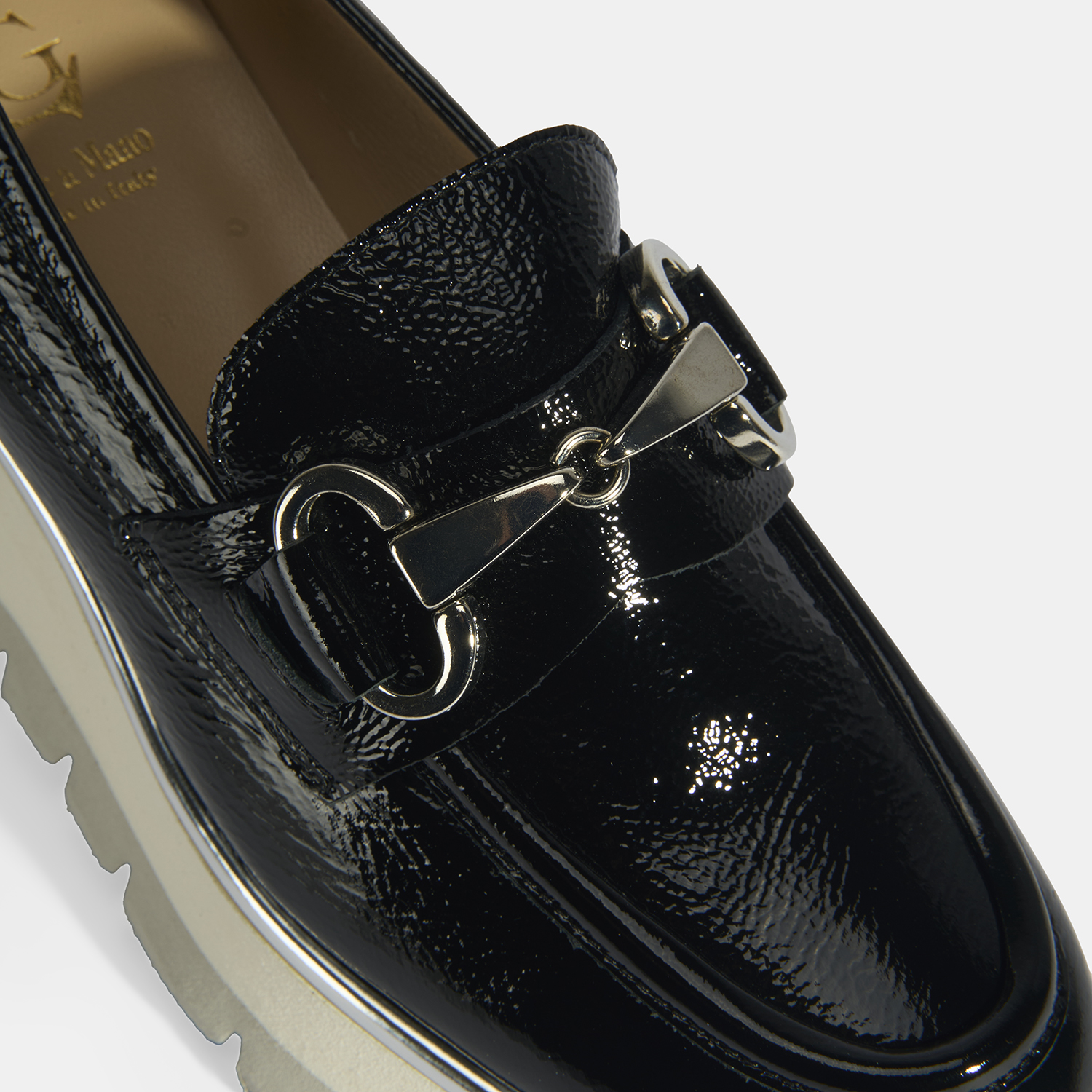 Luca Grossi Kadın Siyah Kalın Topuklu Slip-On Rugan Loafer