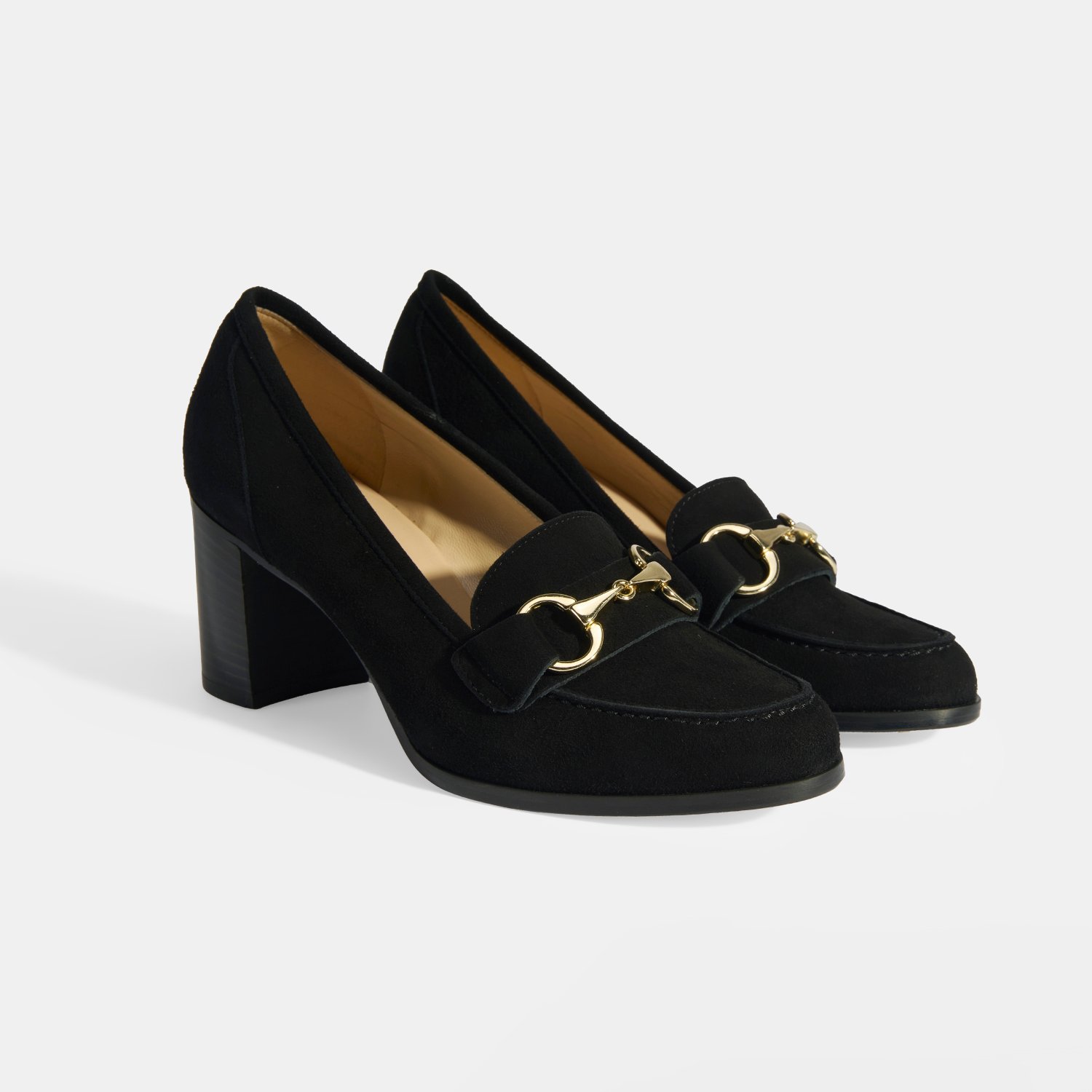 Luca Grossi Kadın Siyah Metal Aksesuarlı Süet Topuklu Loafer