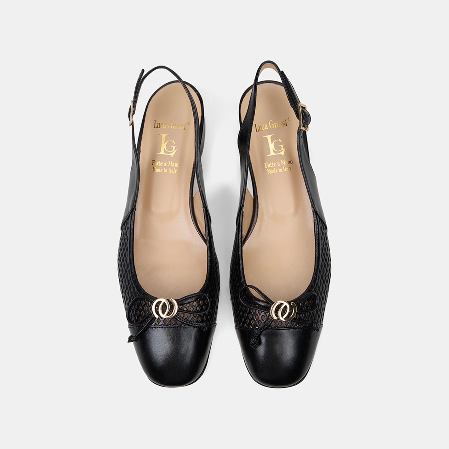 Luca Grossi Kadın Siyah Perforeli Kurdele Detaylı Deri Klasik Ayakkabı
