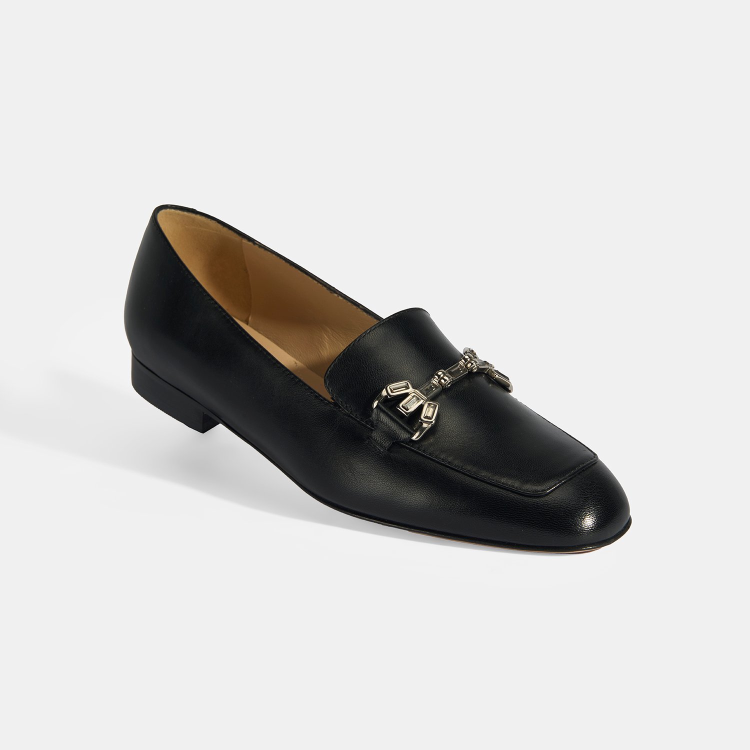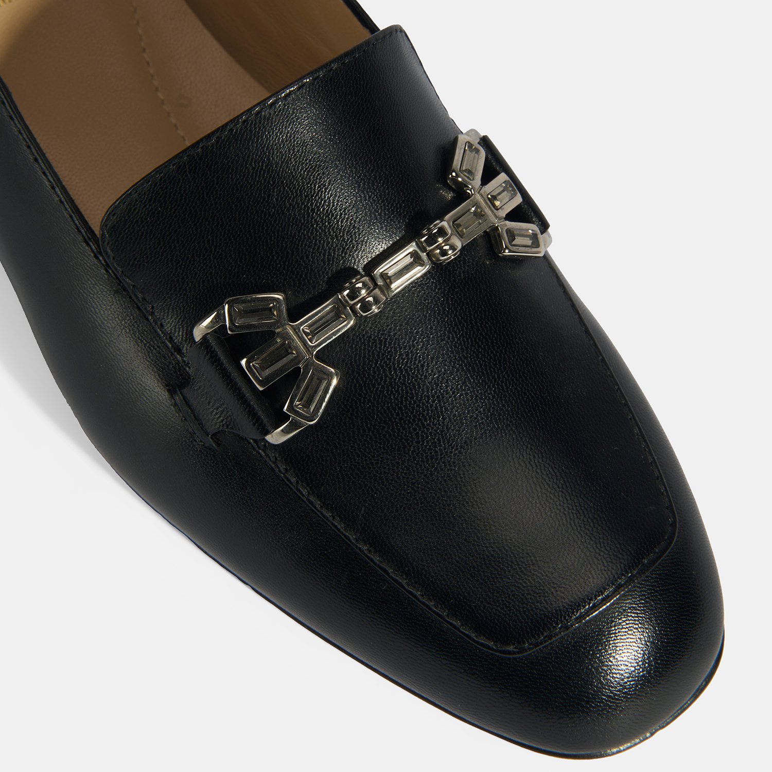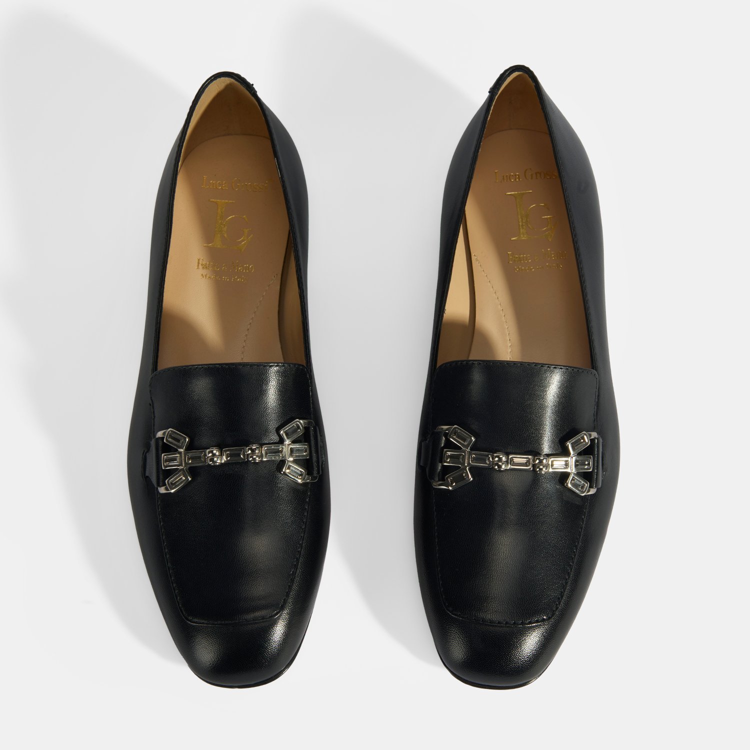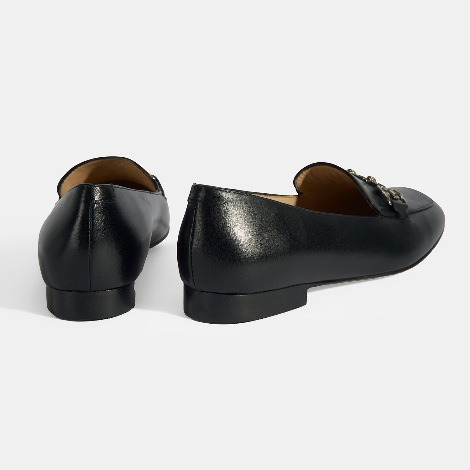 Luca Grossi Kadın Siyah Taşlı Toka Aksesuarlı Deri Loafer