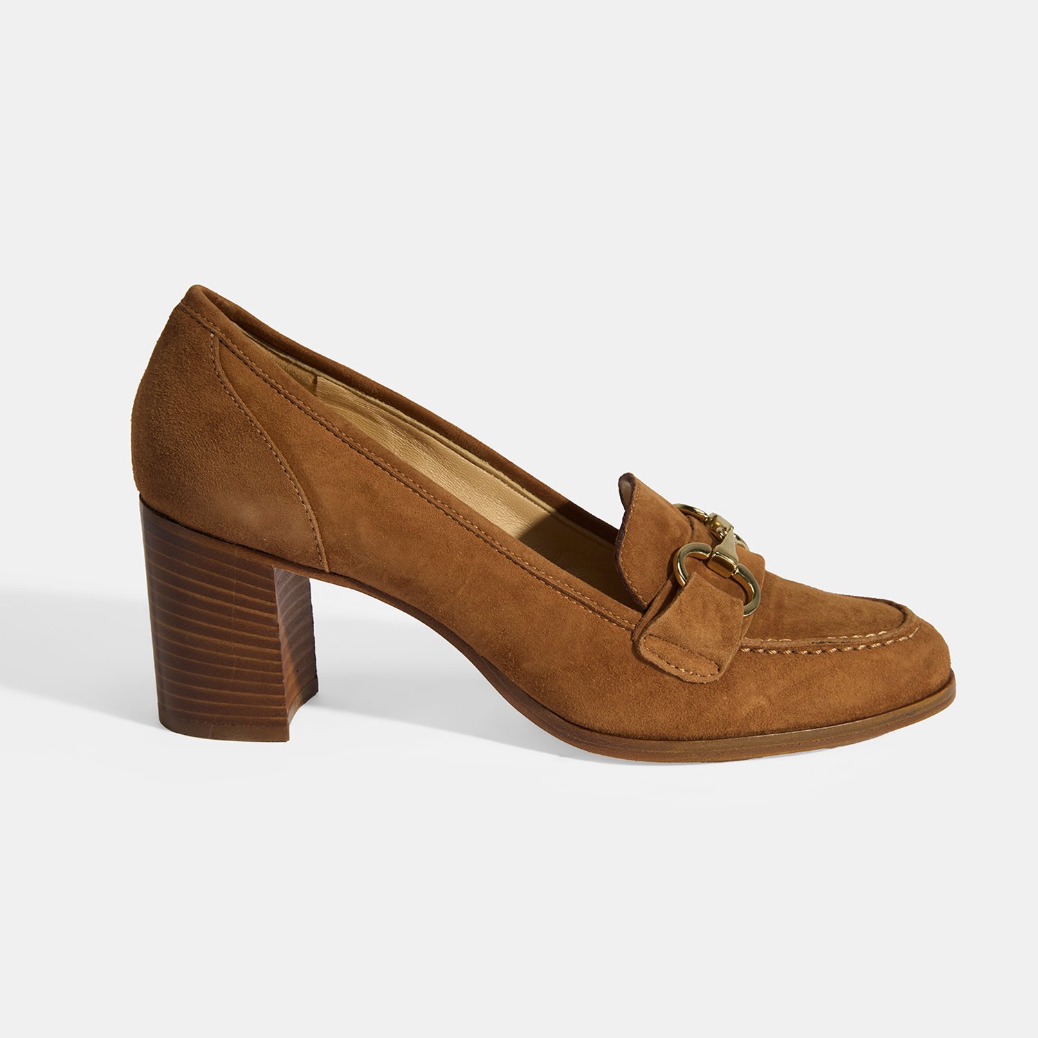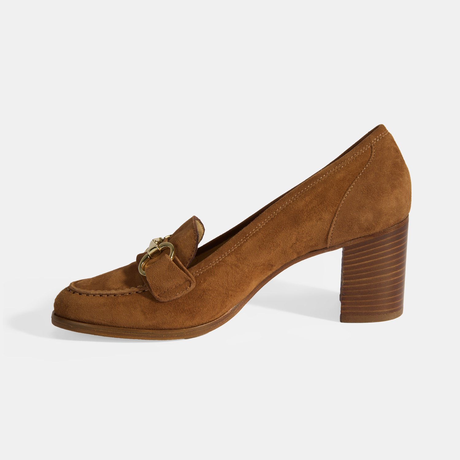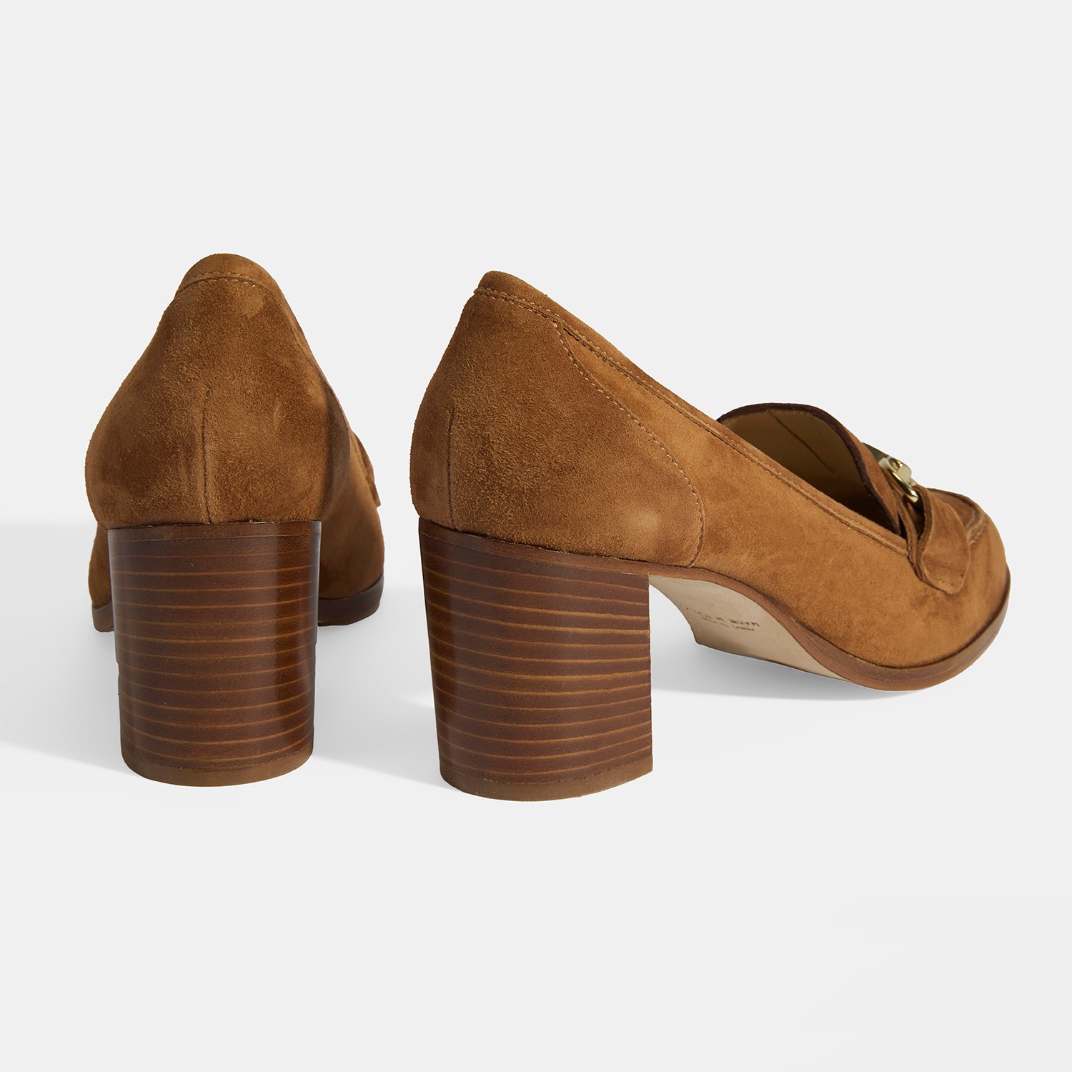 %100 süet deri, deri iç tabanlı, deri astarlı, metal toka aksesuar detaylı, kösele tabanlı, topuklu kadın loafer.