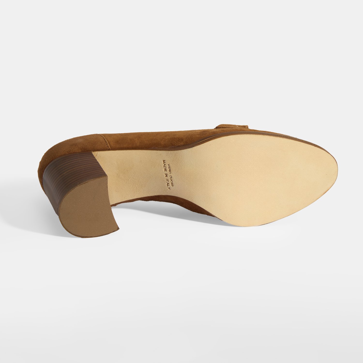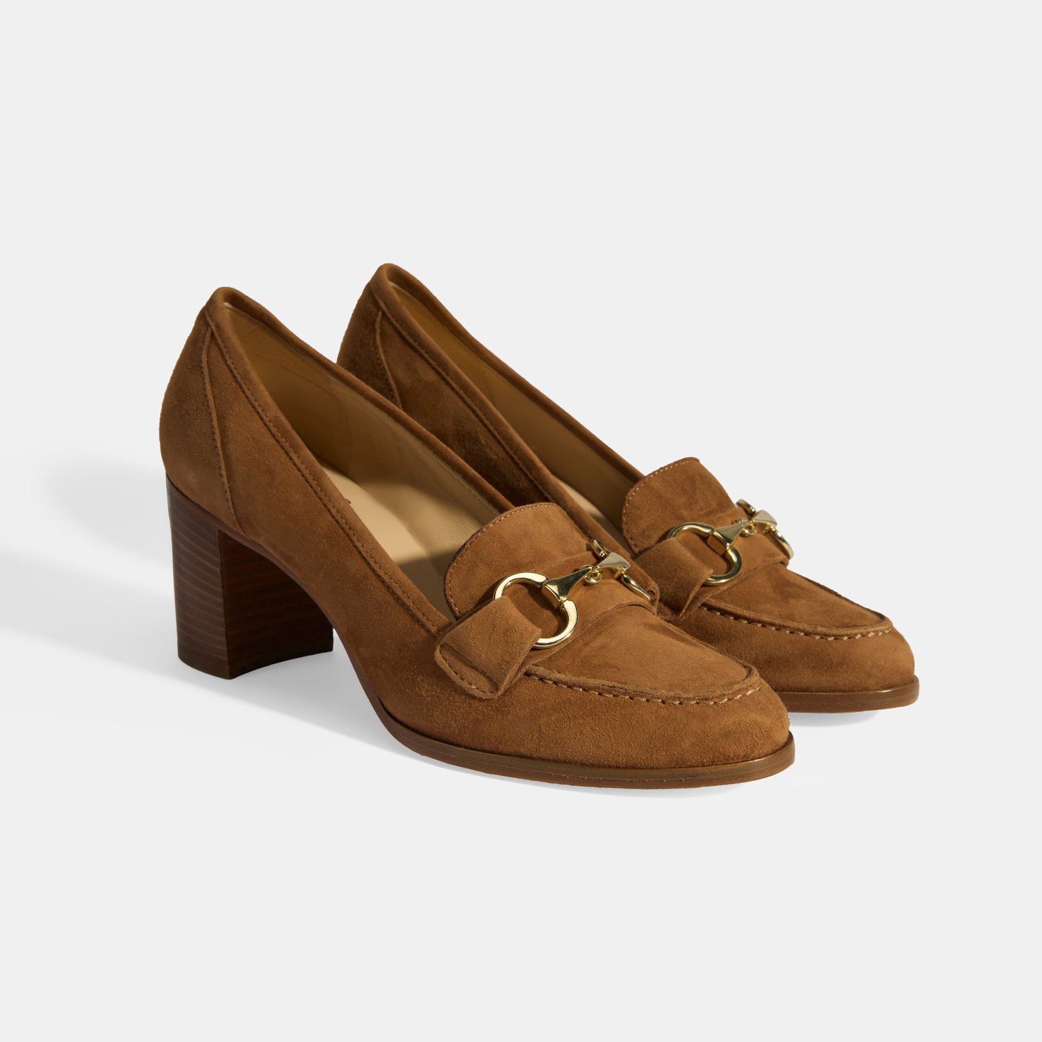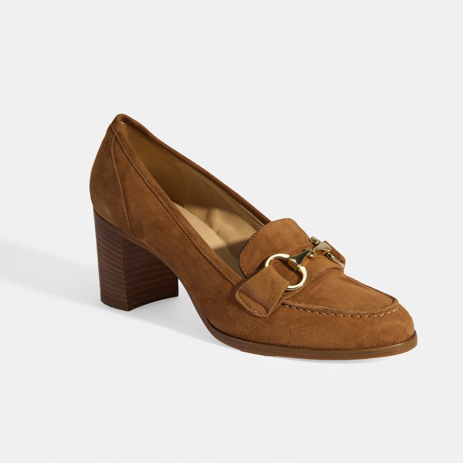 %100 süet deri, deri iç tabanlı, deri astarlı, metal toka aksesuar detaylı, kösele tabanlı, topuklu kadın loafer.