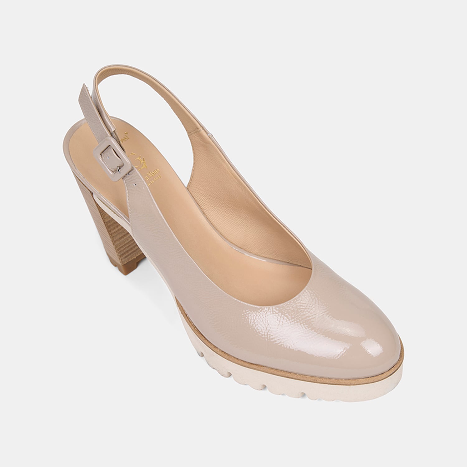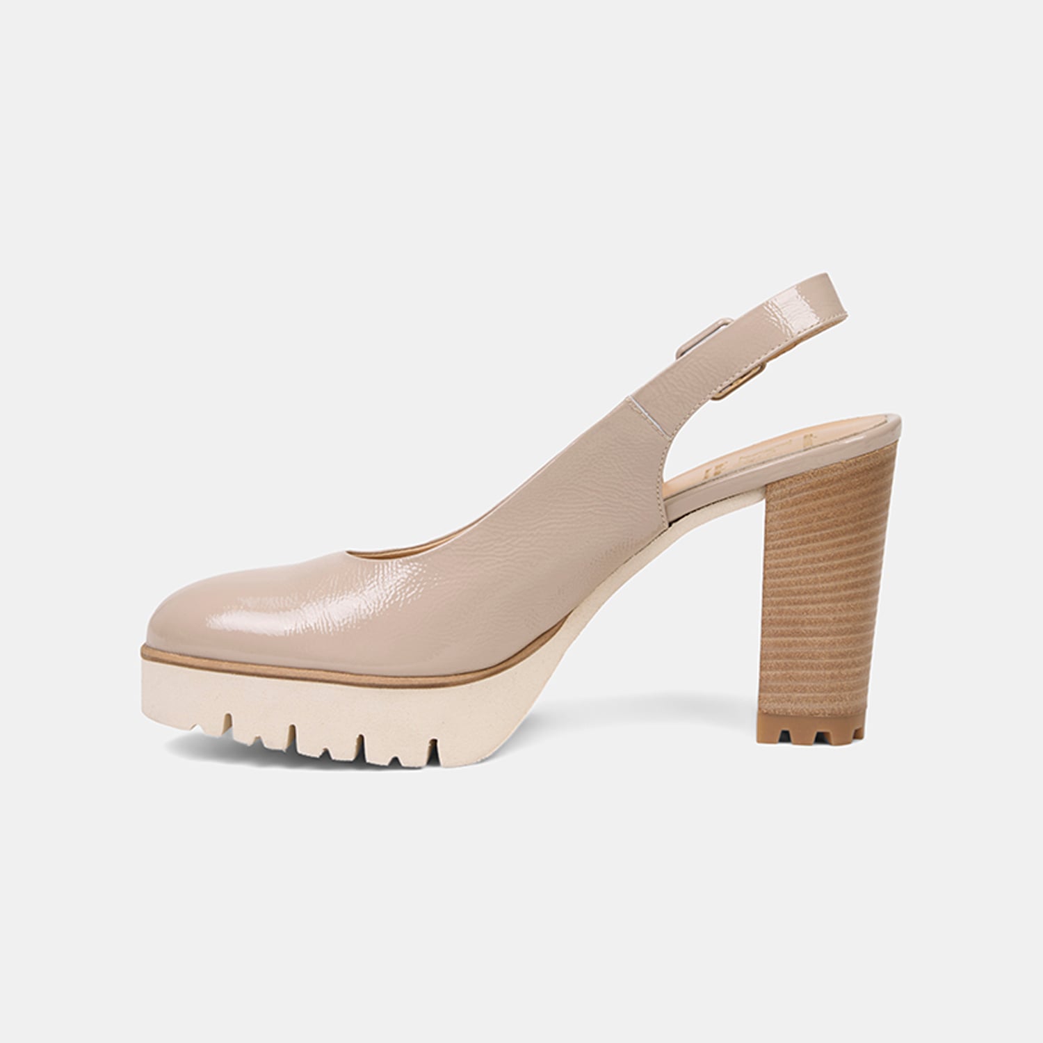 10 cm platform topuk, feminen ve dengeli bir duruş sağlar.